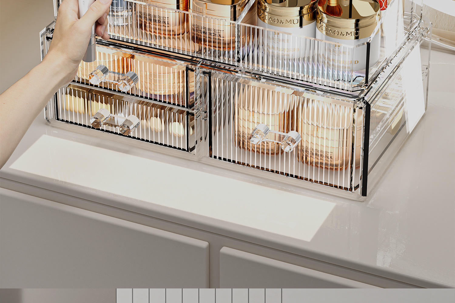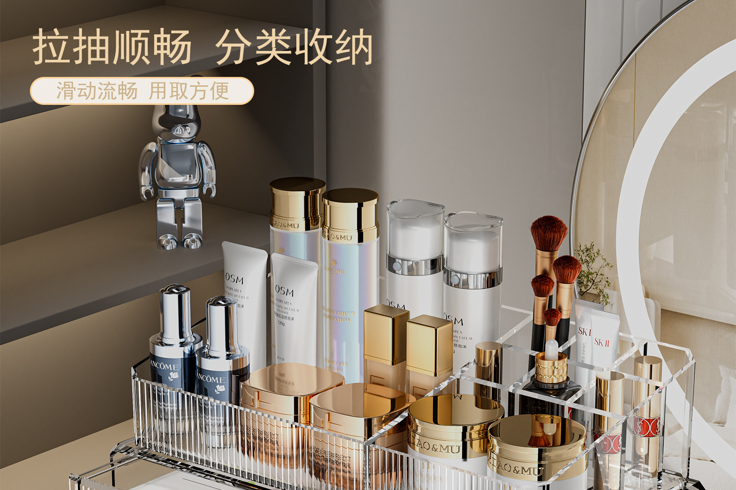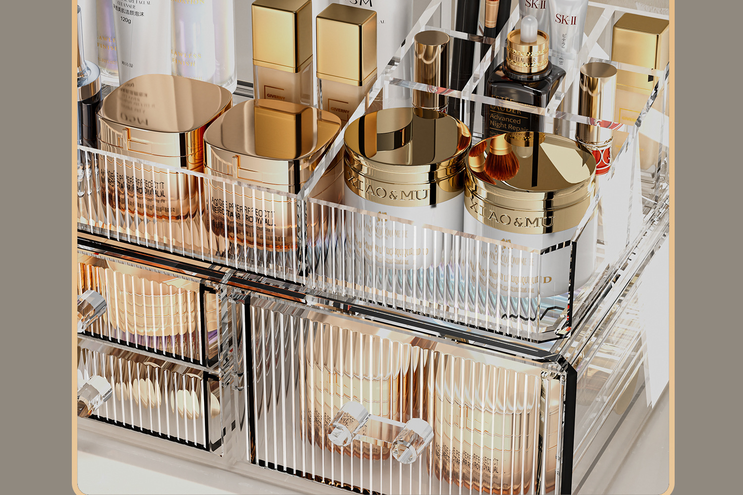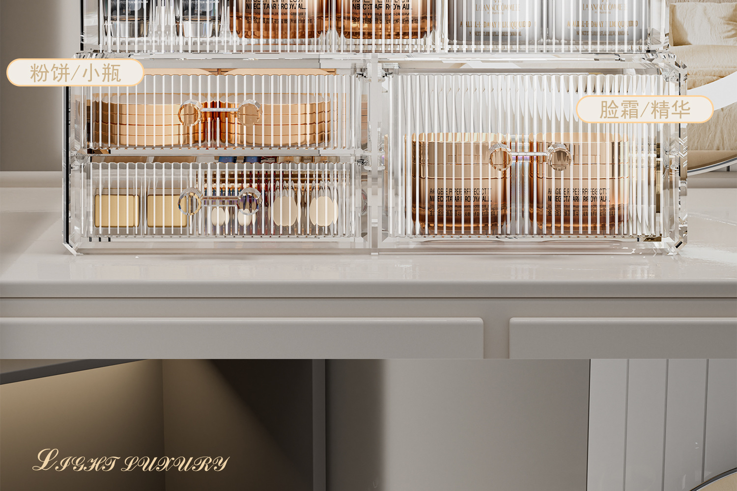 妆品收纳盒轻奢简约透明欧式抽屉式收纳储物盒卧室桌面口红整理盒