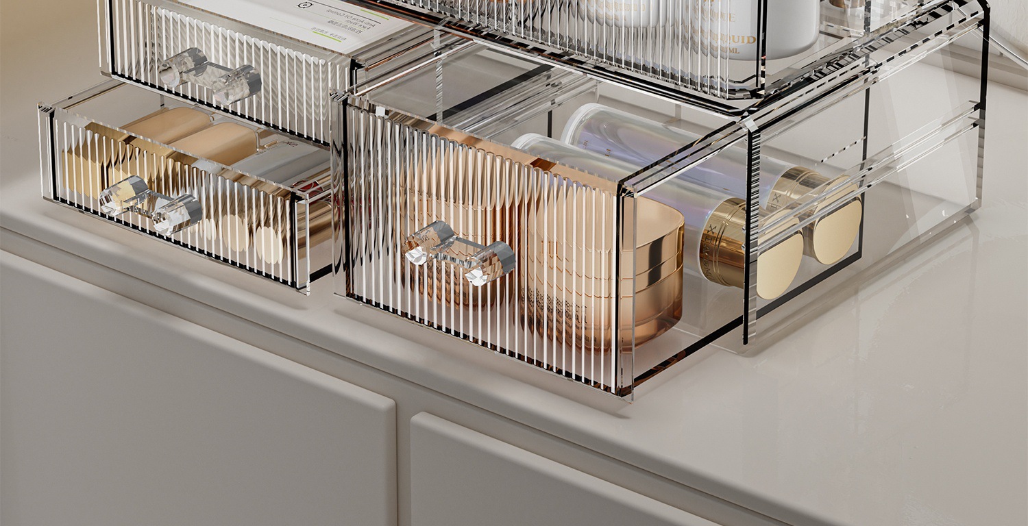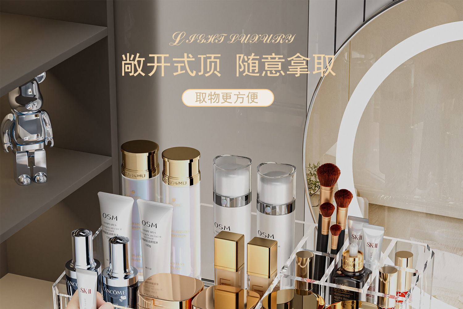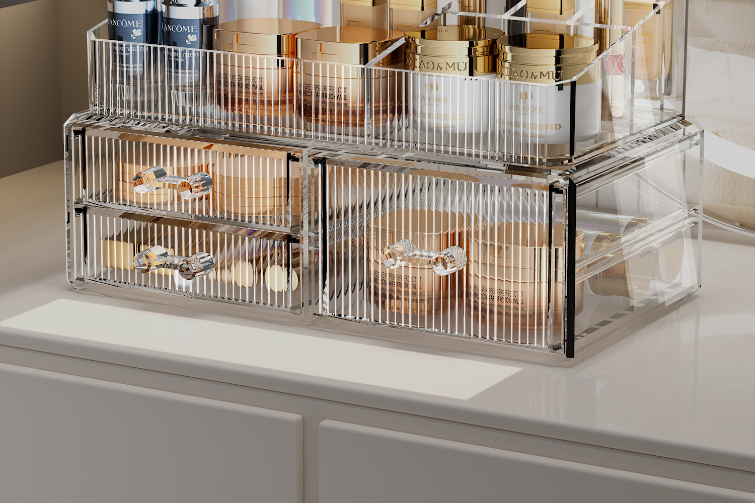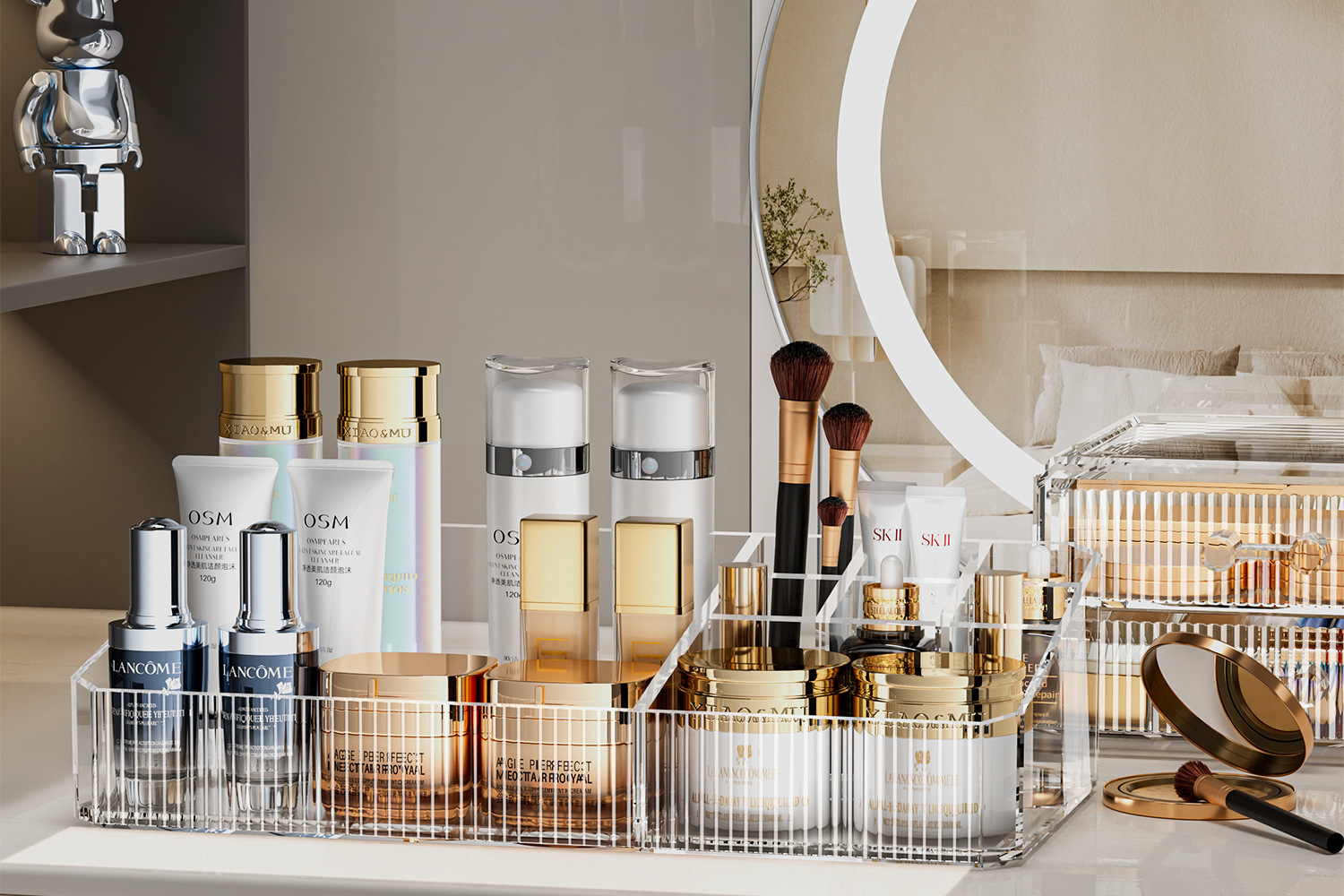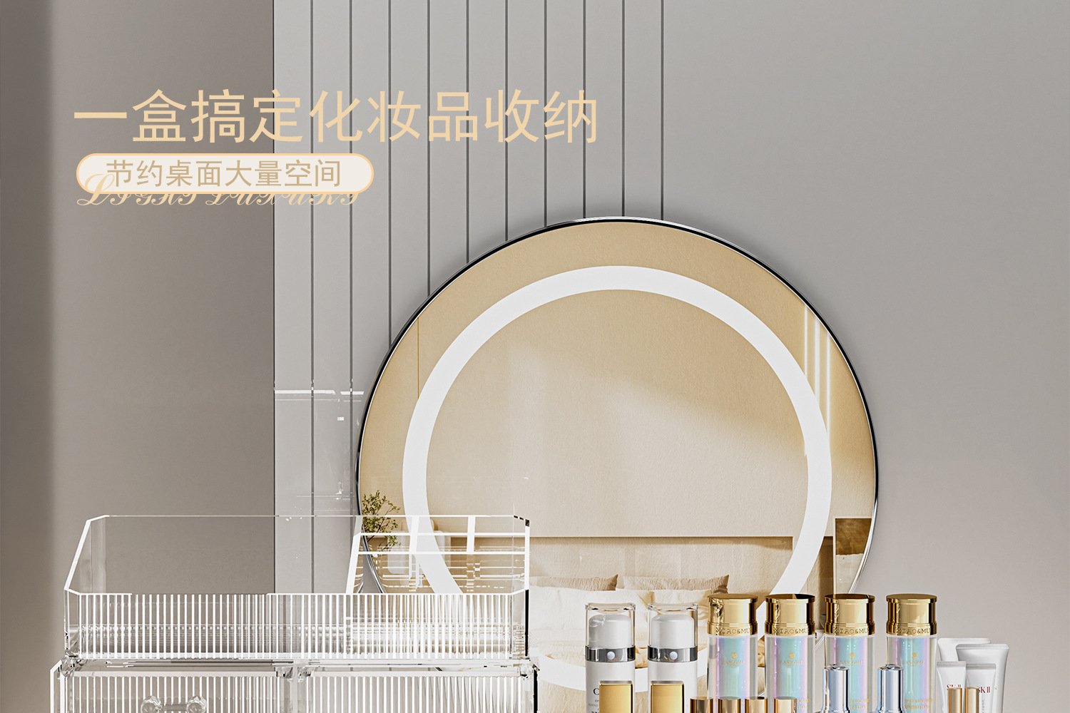 妆品收纳盒轻奢简约透明欧式抽屉式收纳储物盒卧室桌面口红整理盒