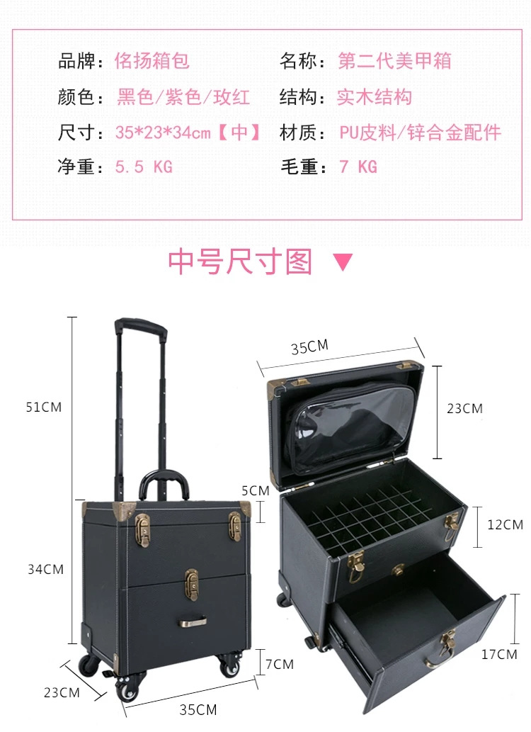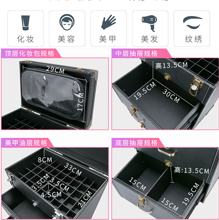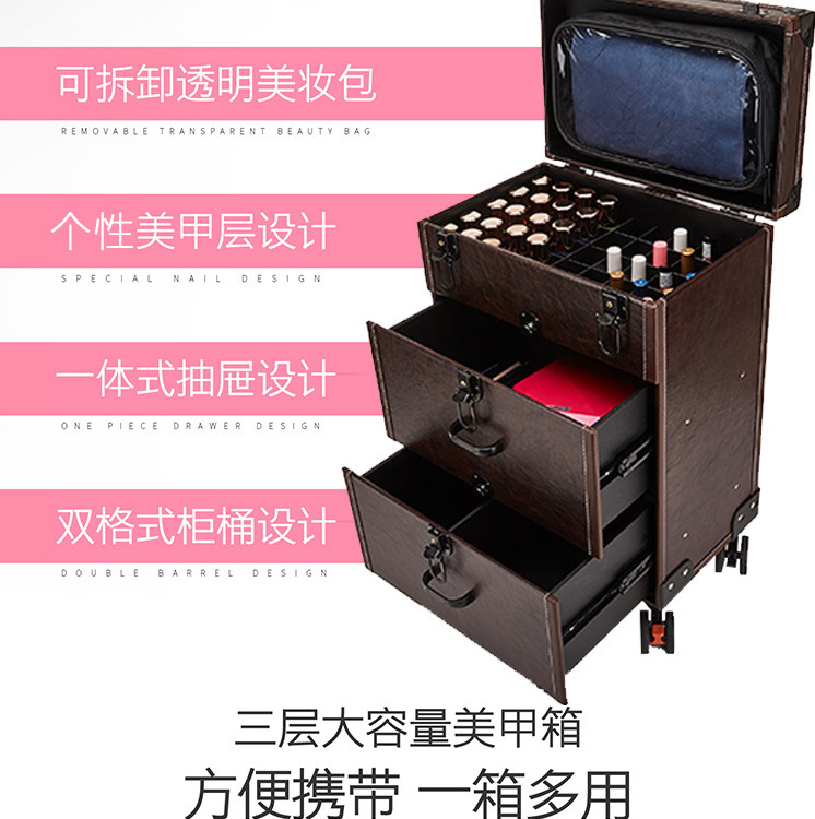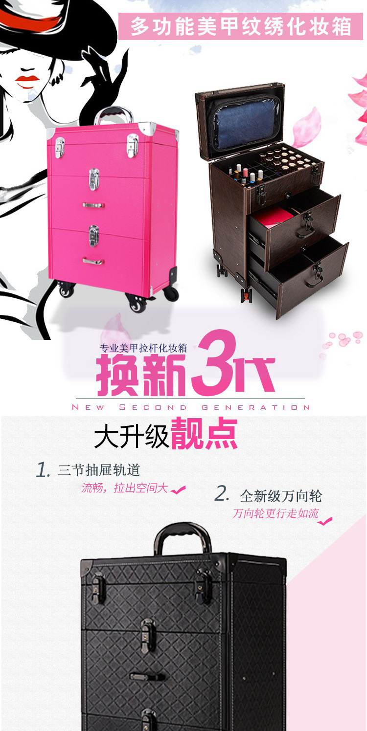 专业纹绣美甲箱万向刹车轮拉杆化妆箱多层大码家用收纳化妆工具箱