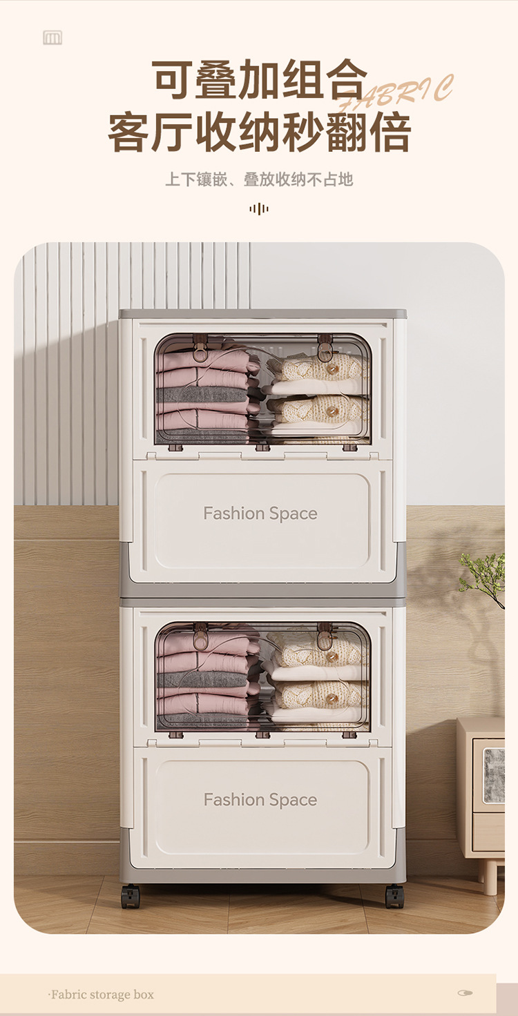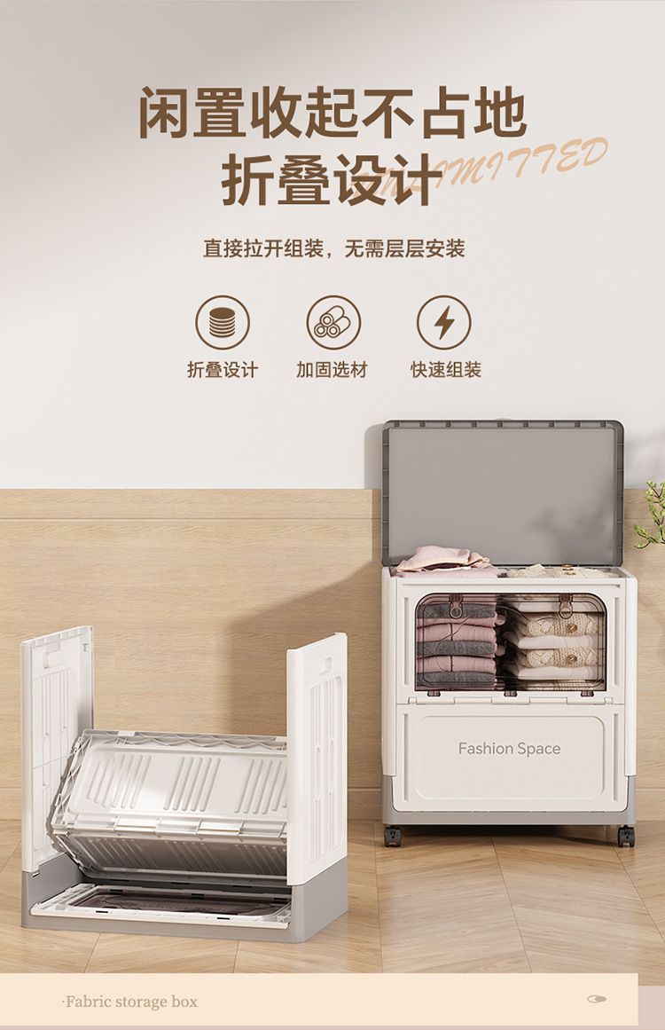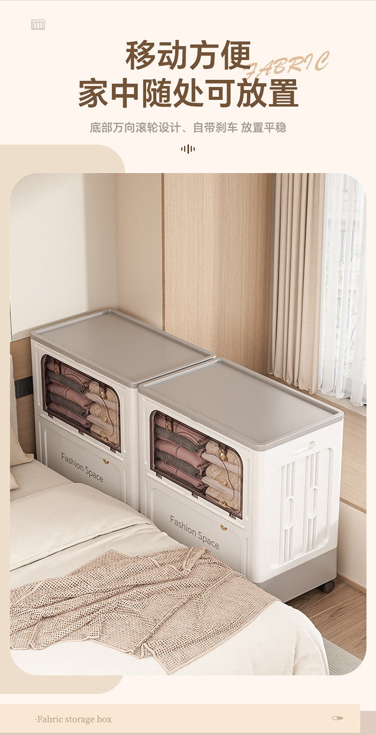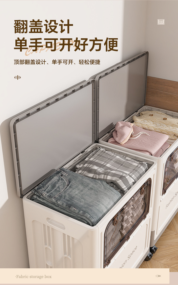 衣服收纳箱家用大容量翻盖折叠收纳柜被子储物柜带滑轮整理箱批发