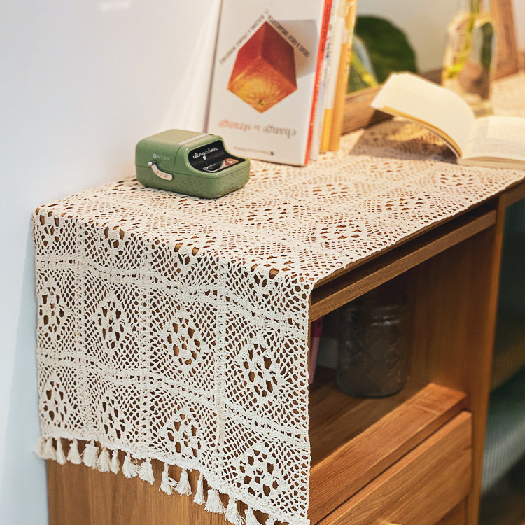 跨境复古文艺桌旗镂空蕾丝钩花玄关书桌布电视柜餐桌边鞋柜子盖巾