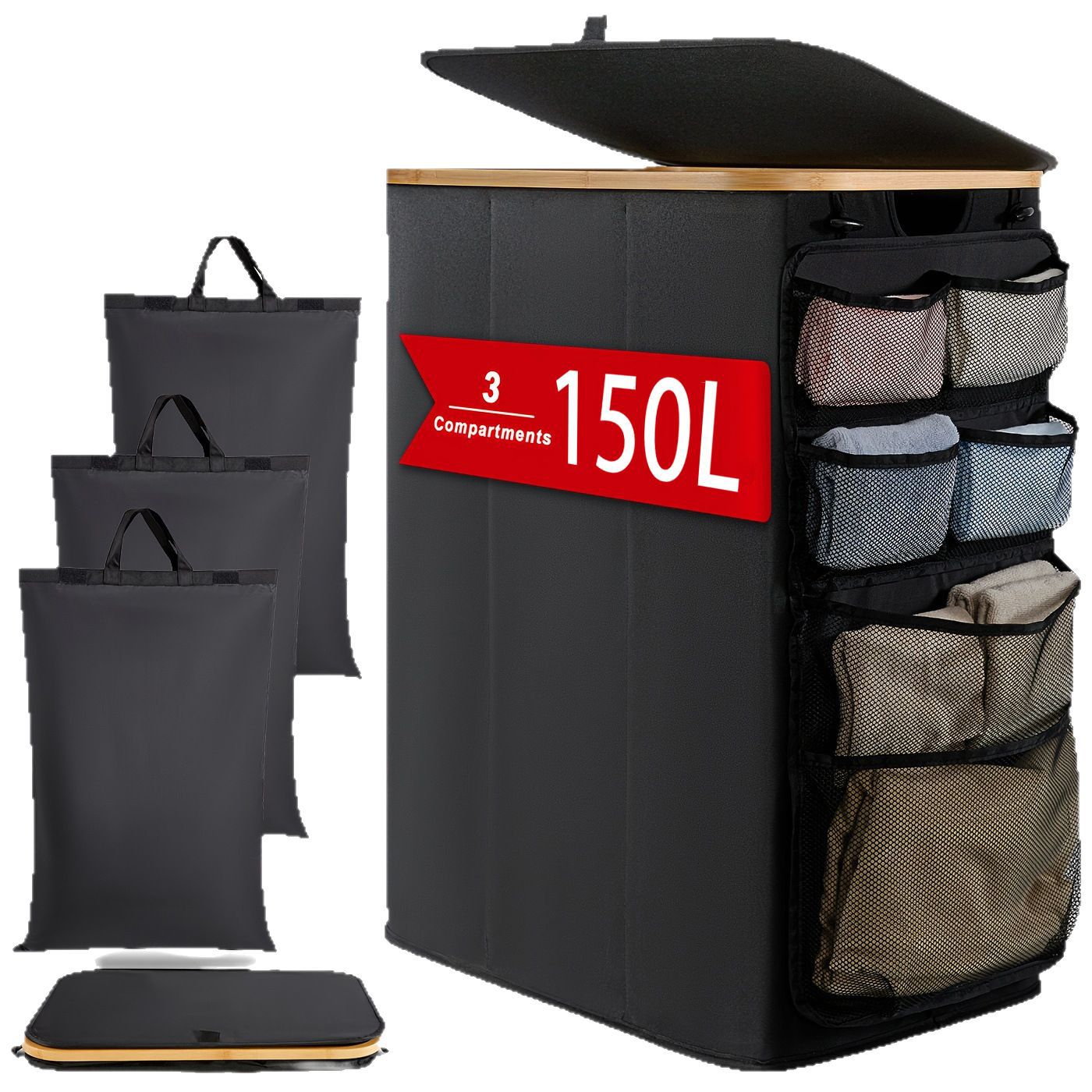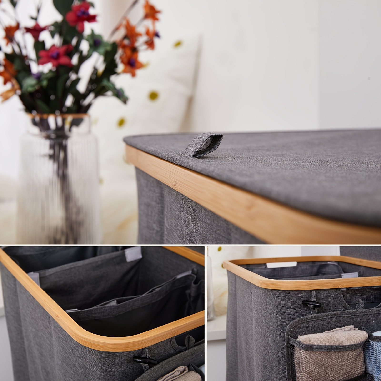 竹制脏衣篮三个内袋收纳篮脏衣篓脏衣筐脏衣服收纳筐大容量收纳箱