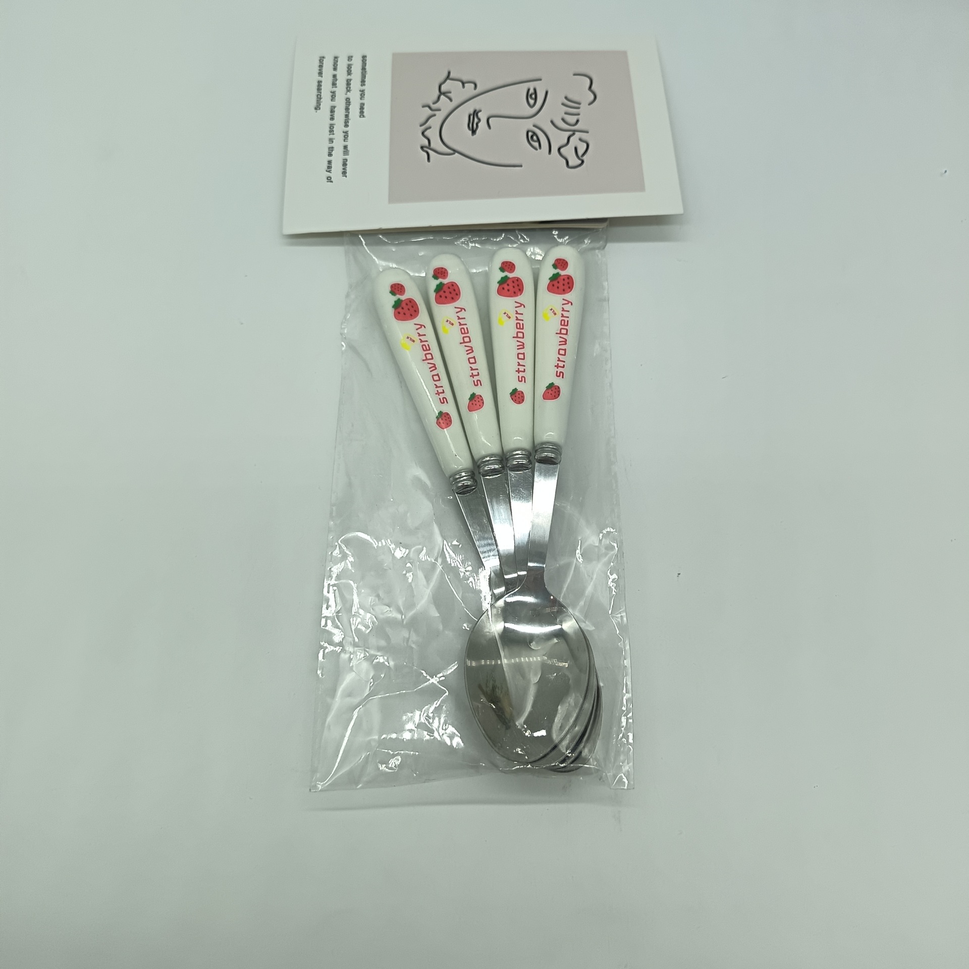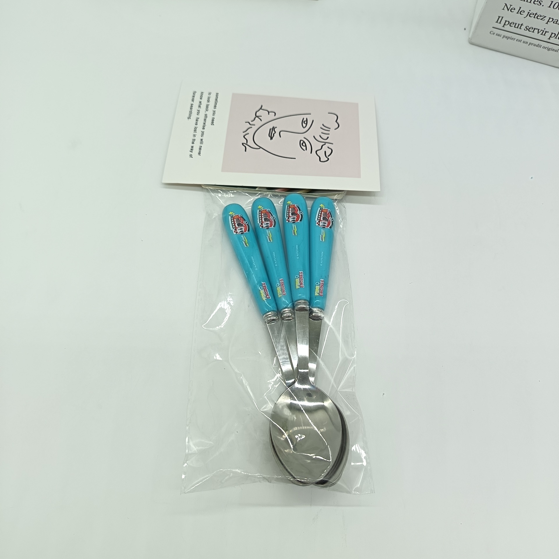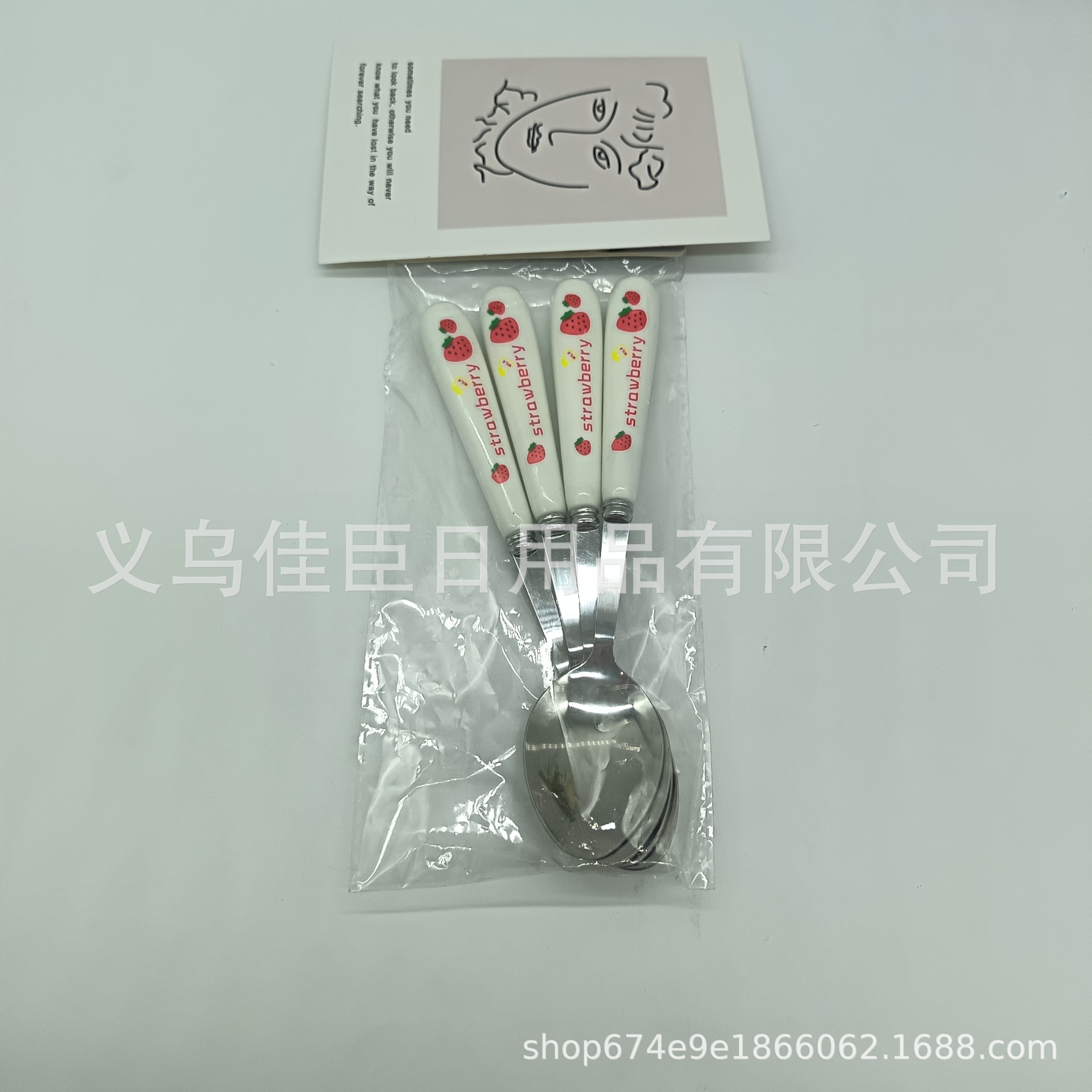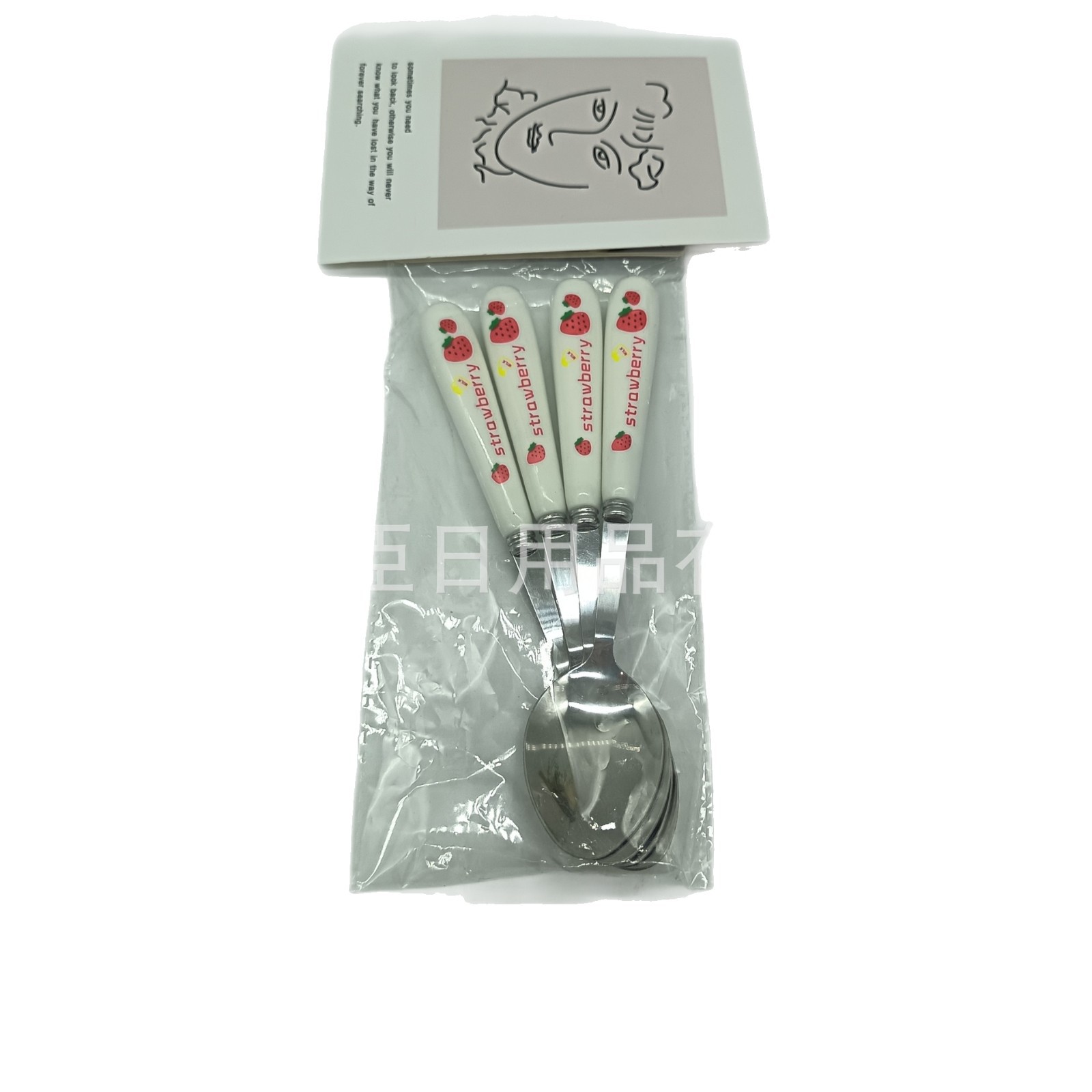 跨境批发热销餐具可爱图案叉子勺子不锈钢便携家用4pcs圆柄手柄