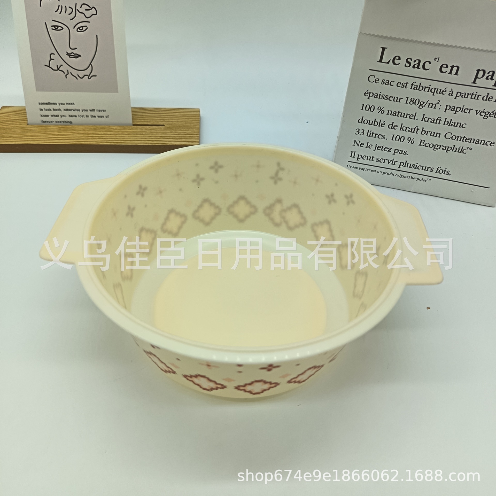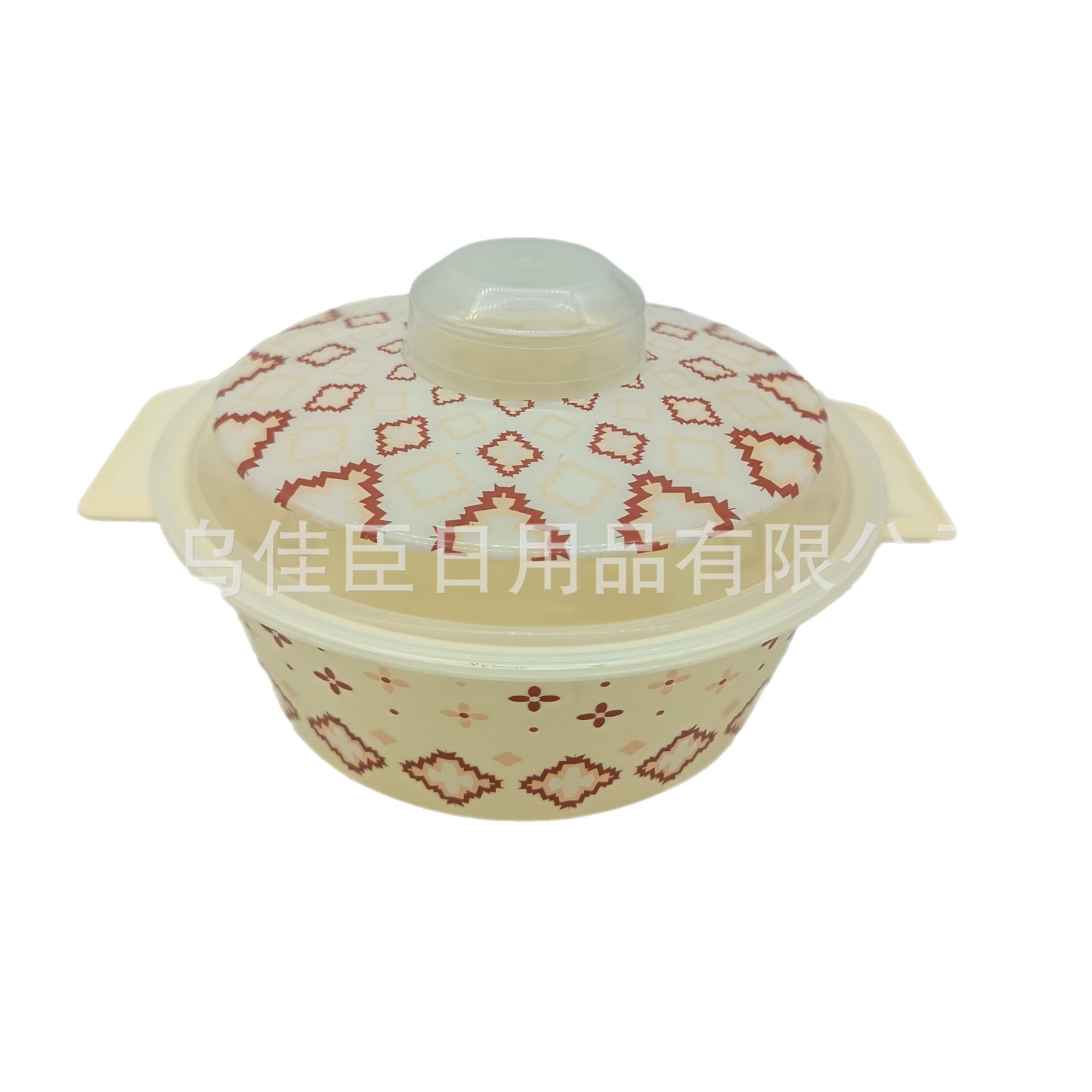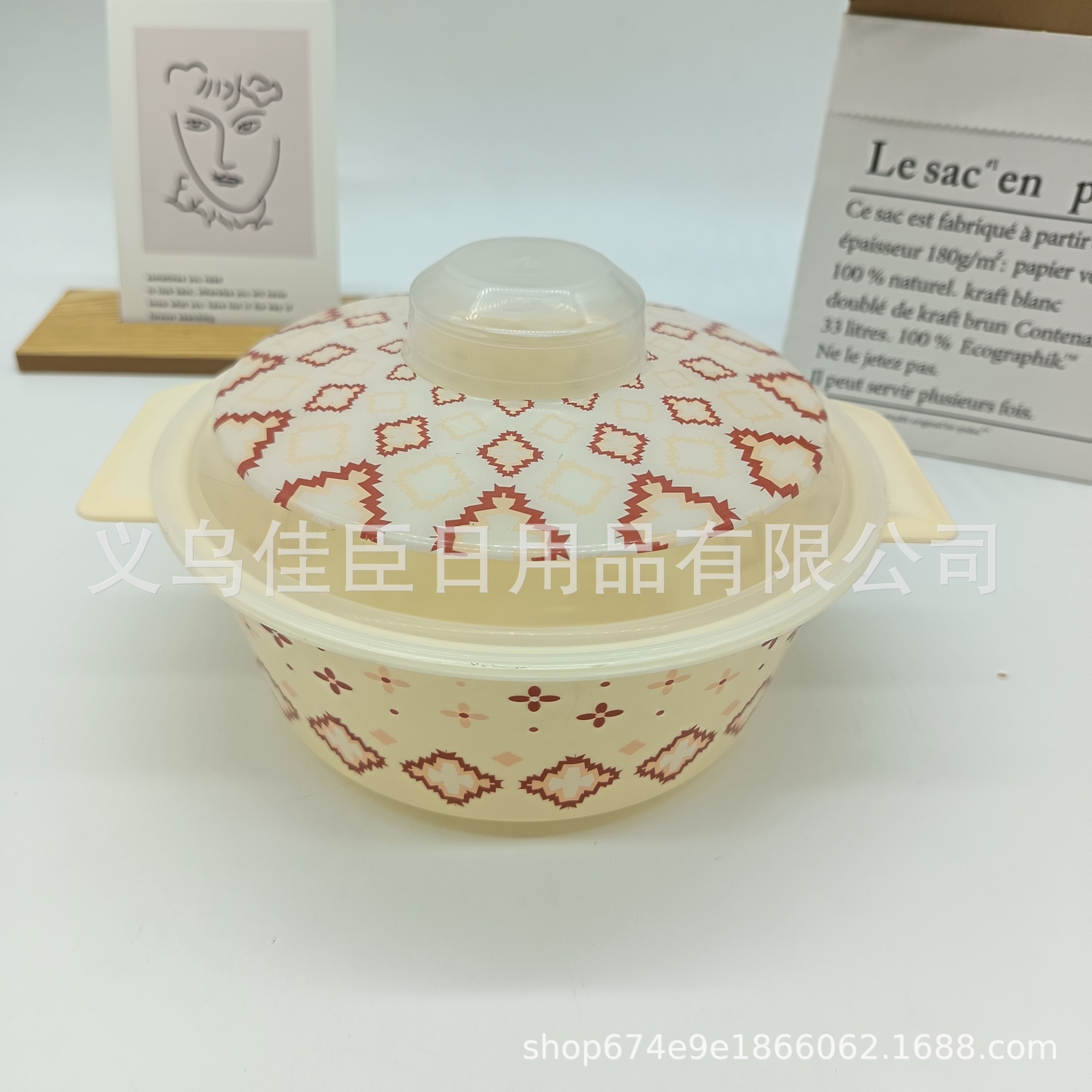 跨境热销款圆形塑料碗带耳柄带盖子冰箱厨房收纳午餐盒保鲜碗野餐