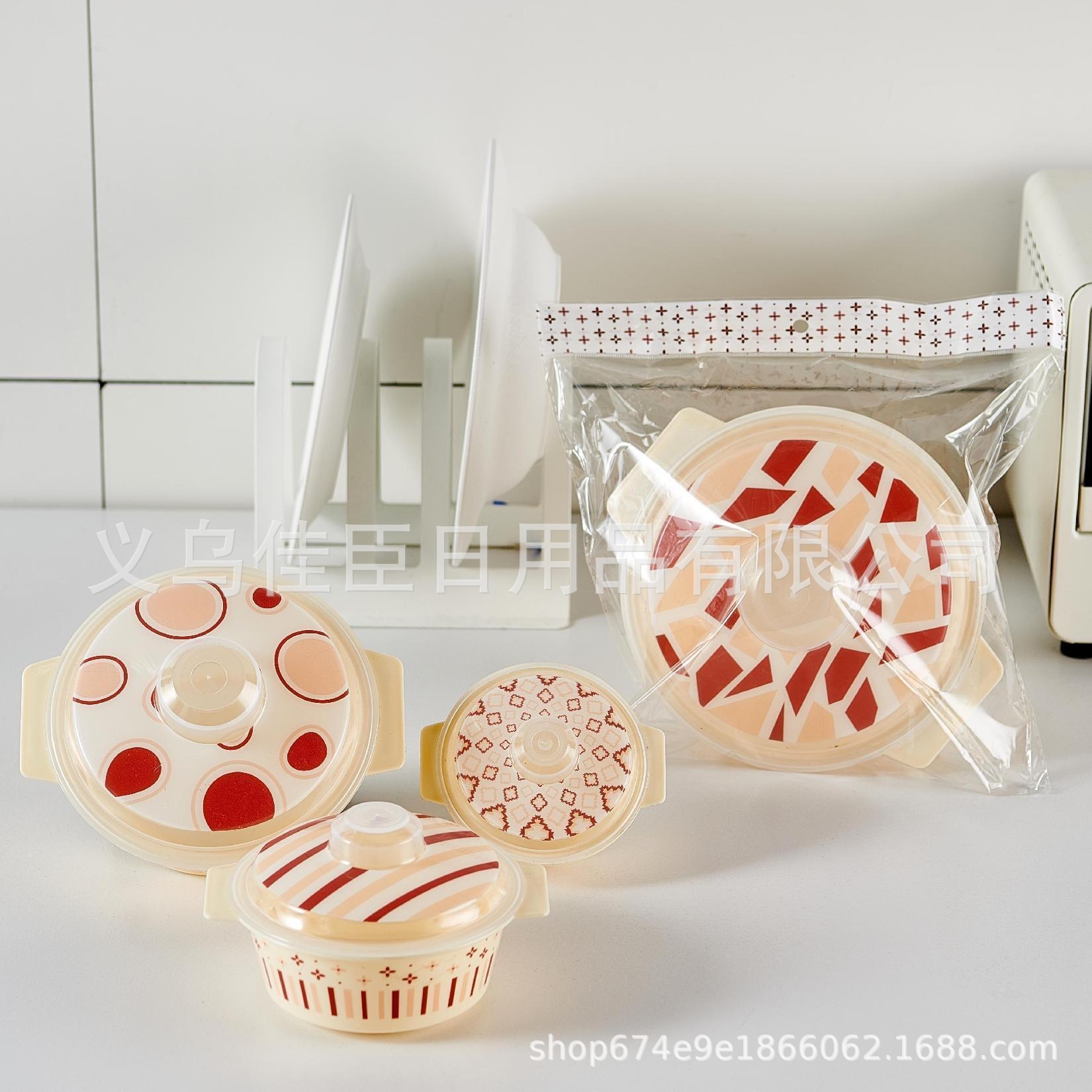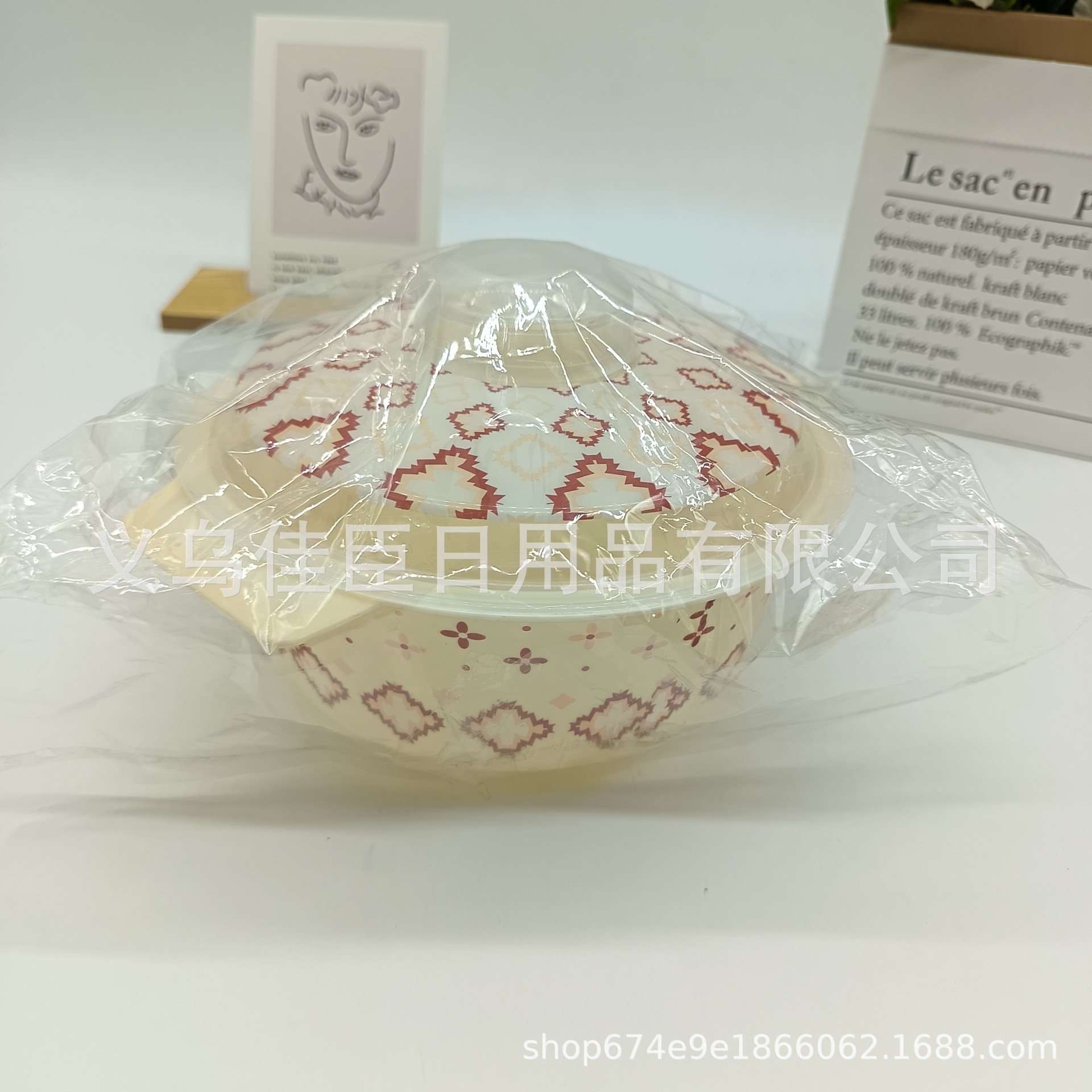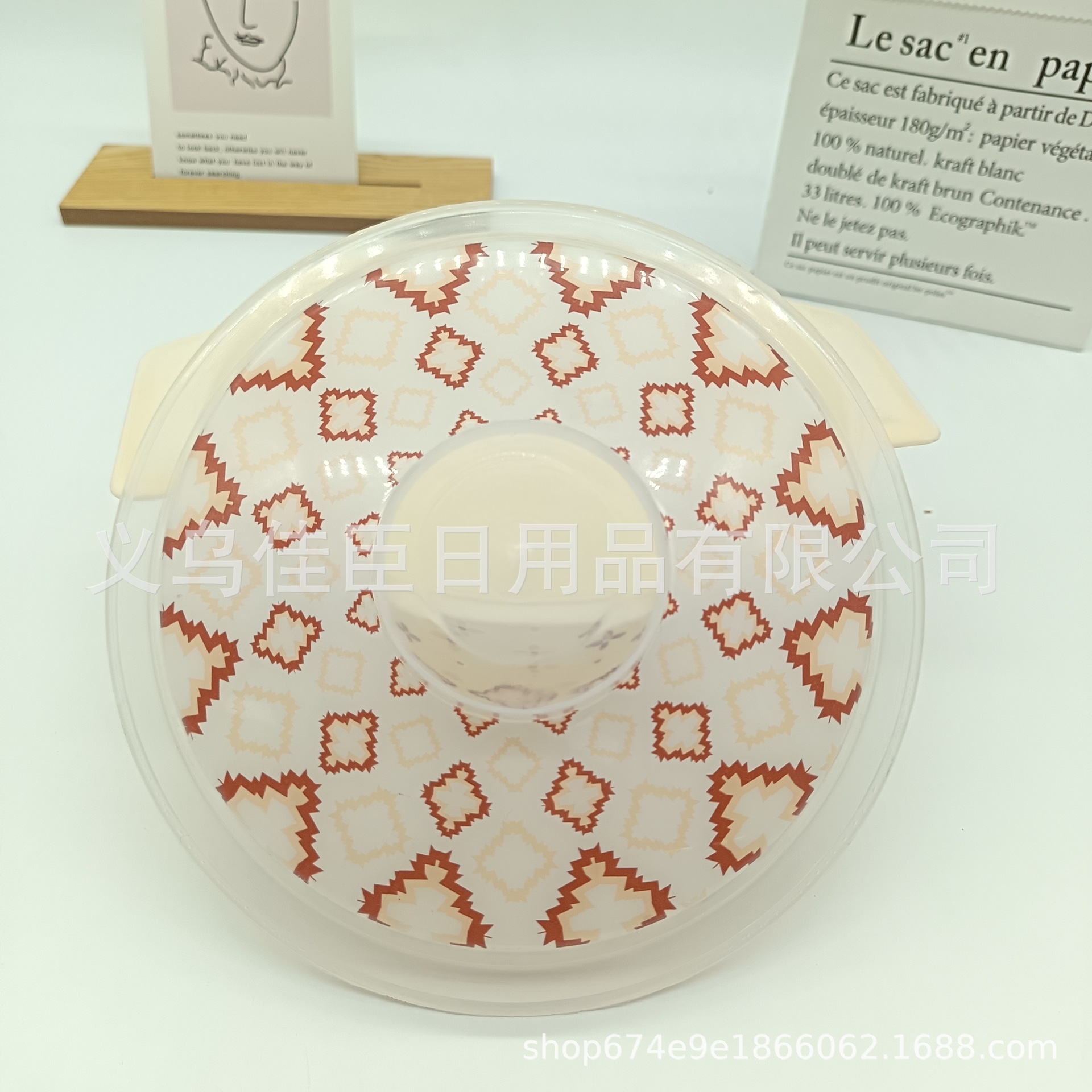 跨境热销款圆形塑料碗带耳柄带盖子冰箱厨房收纳午餐盒保鲜碗野餐