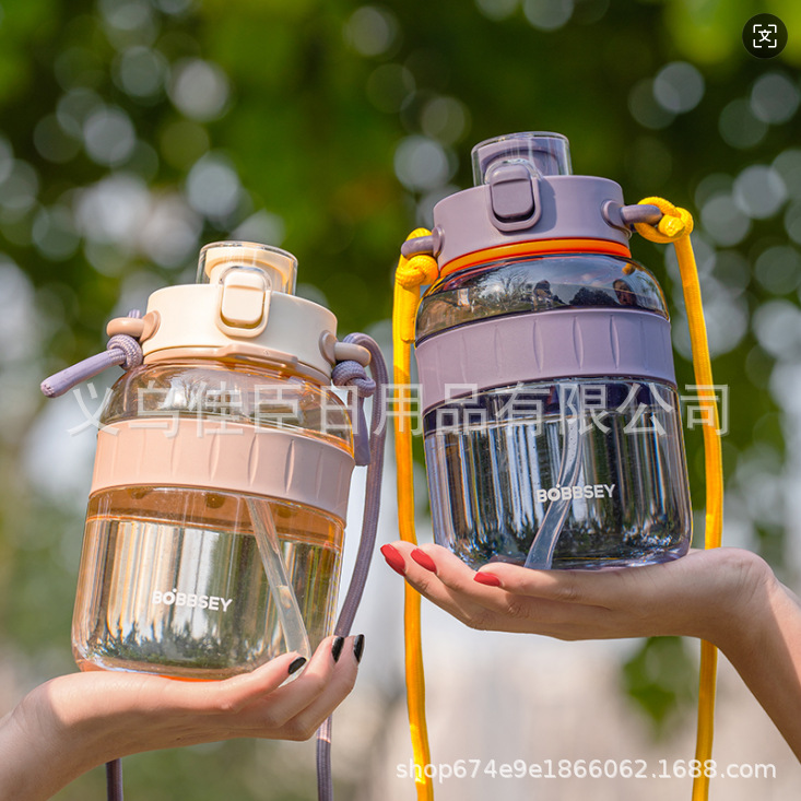 夏日水杯跳跳双饮杯1200ml高颜值大容量太空杯户外运动水壶塑料杯