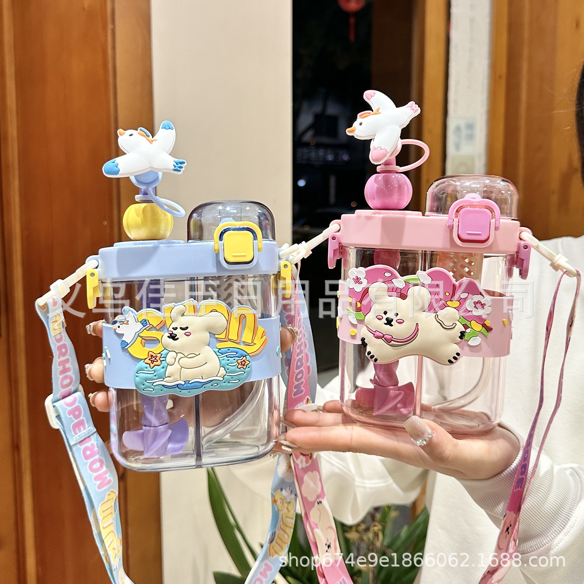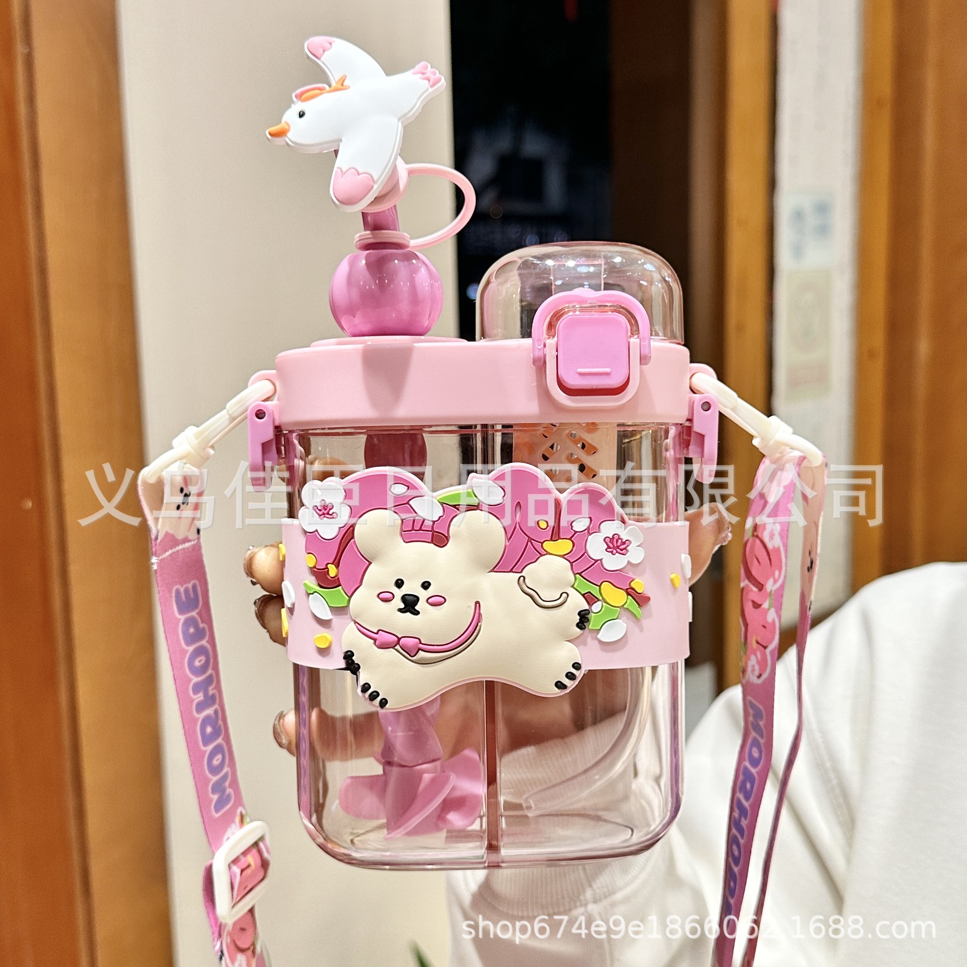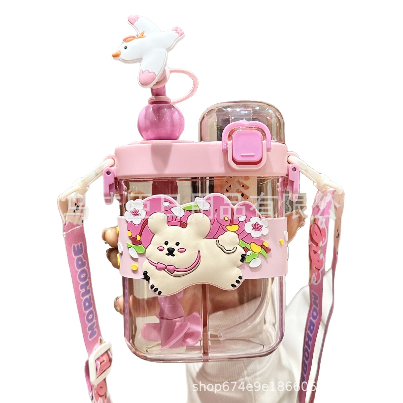 儿童饮水分格杯搅拌水杯一杯双饮吸管杯学生上学便携运动塑料水壶