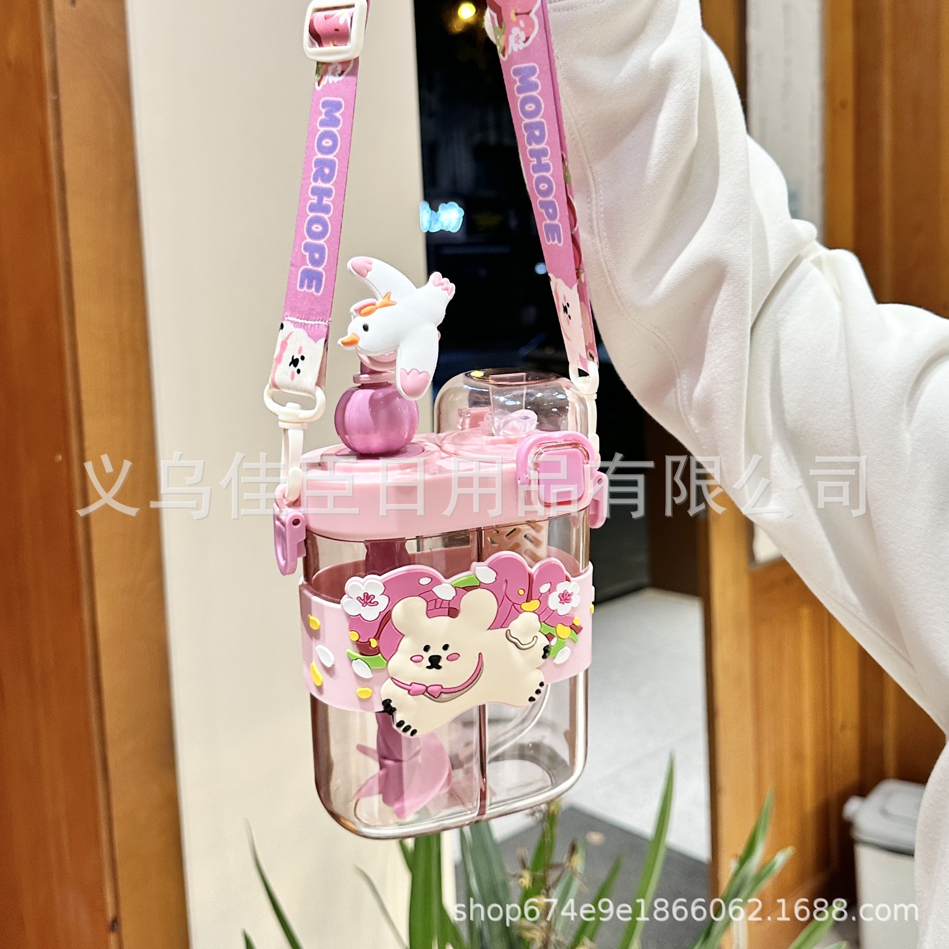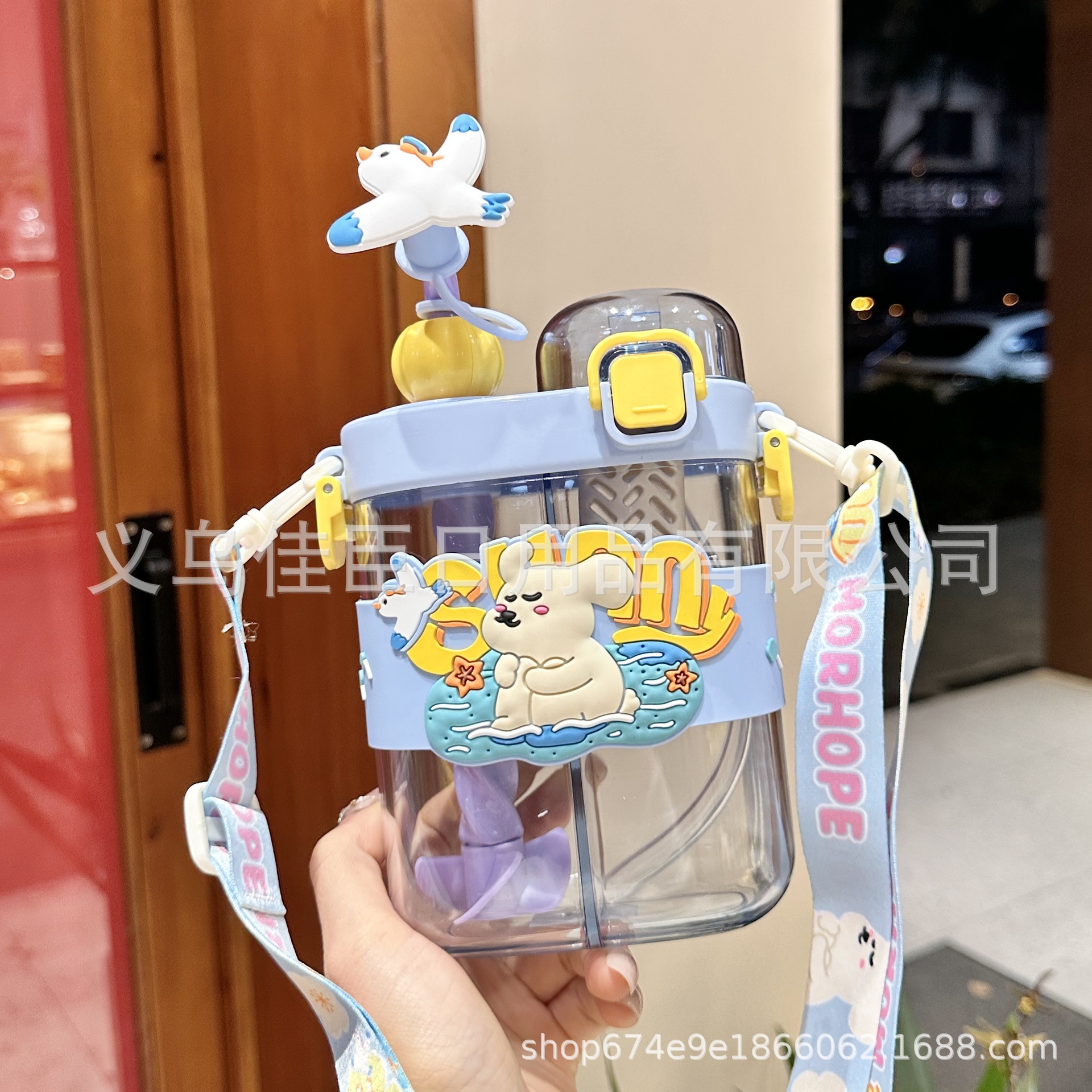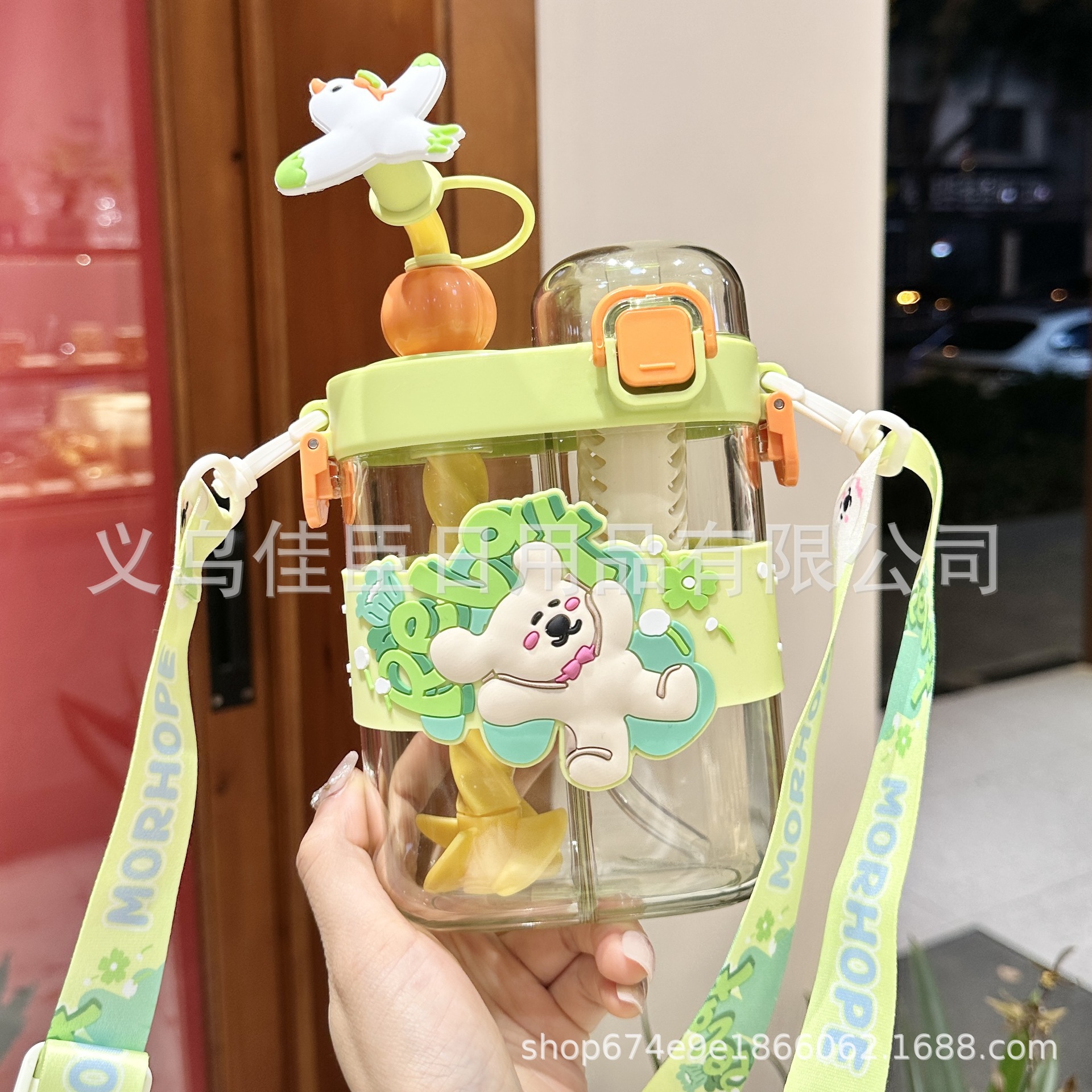 儿童饮水分格杯搅拌水杯一杯双饮吸管杯学生上学便携运动塑料水壶