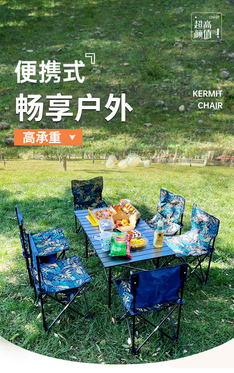 折叠椅子厂家批发野营月亮椅便携整套桌椅烧烤桌户外露营桌椅套装