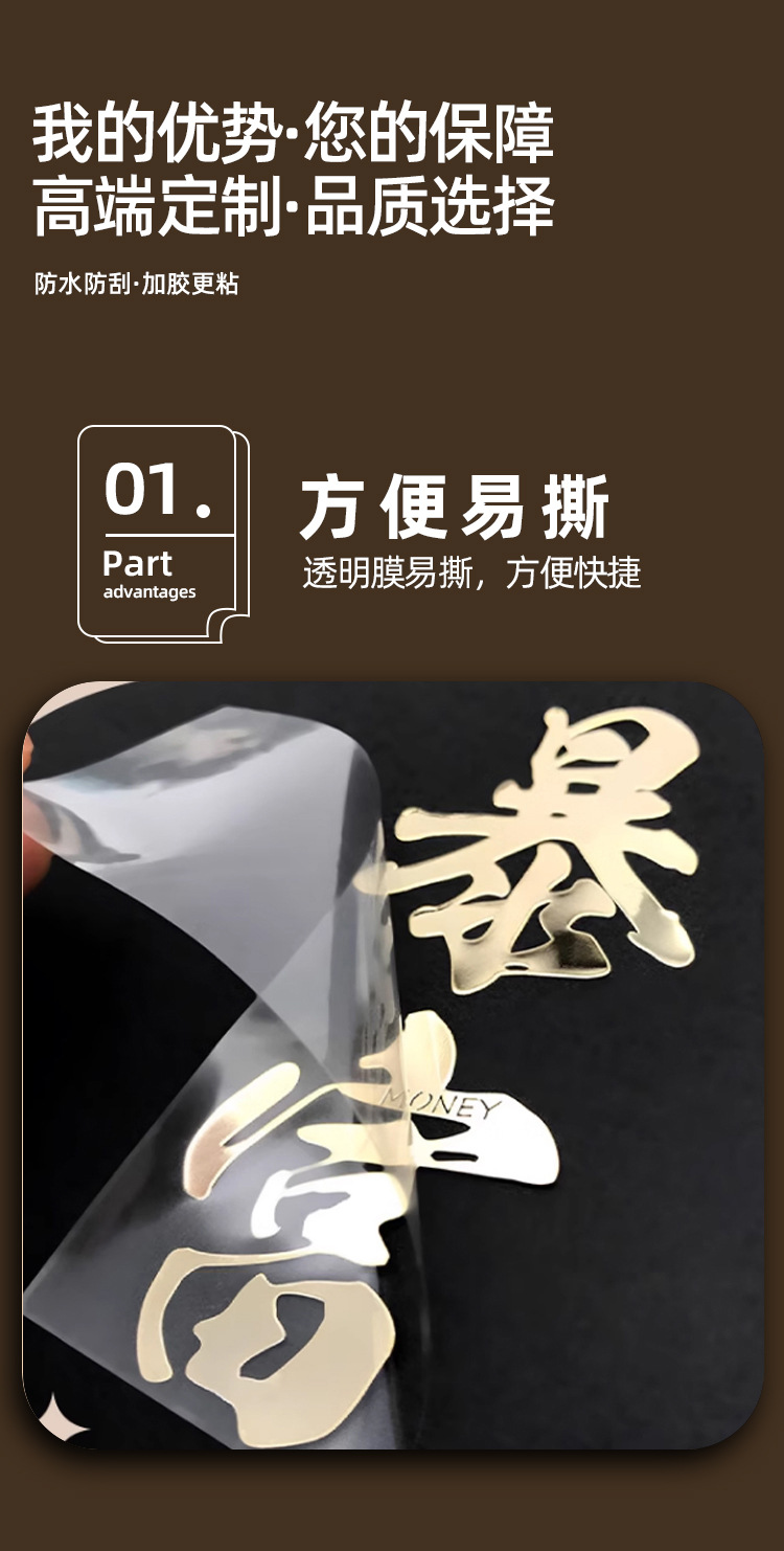 撕膜留字水晶标贴定制透明logo金属uv转印贴感压分离水晶贴纸定做
