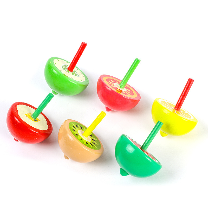 大号水果陀螺 木制彩色手指转动小陀螺传统怀旧儿童木质玩具