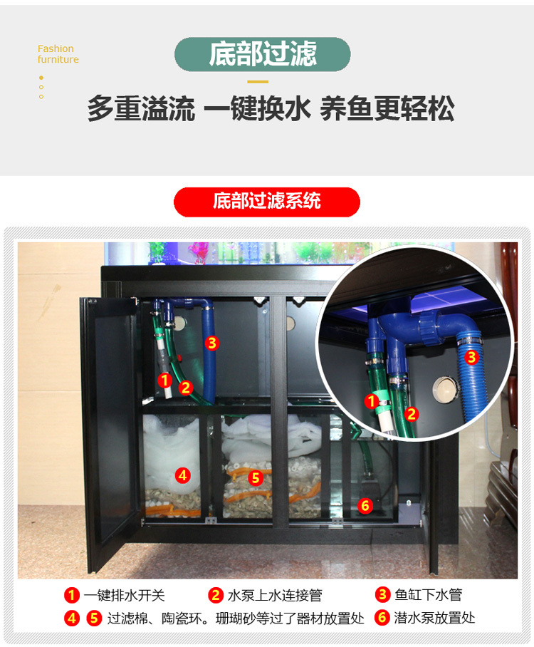 | length 80 * width 50 * cylinder 80/cabinet 70cm (bottom filter)(长80*宽50*缸80/柜70cm(底滤)) | USD $464.03 | 186 set available |