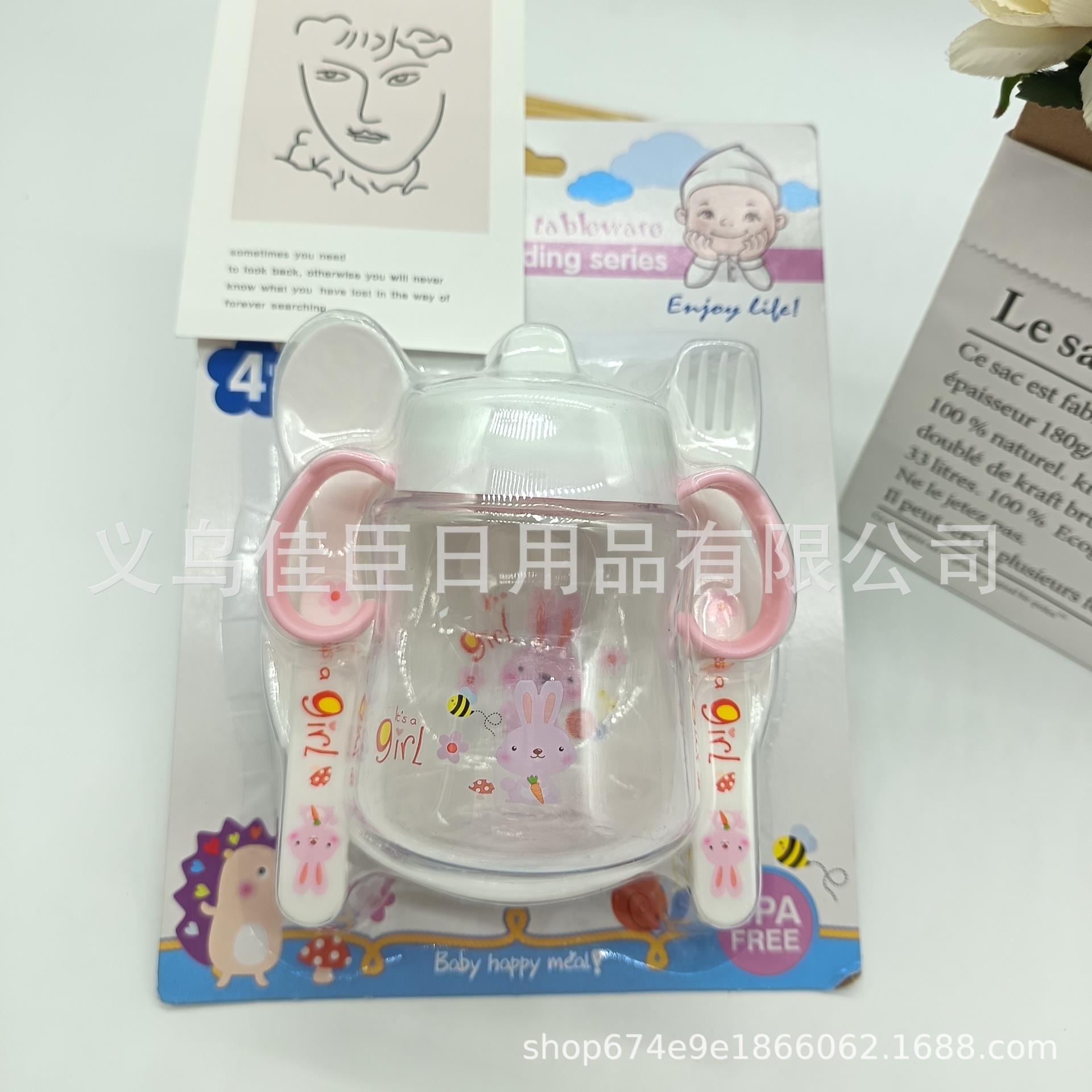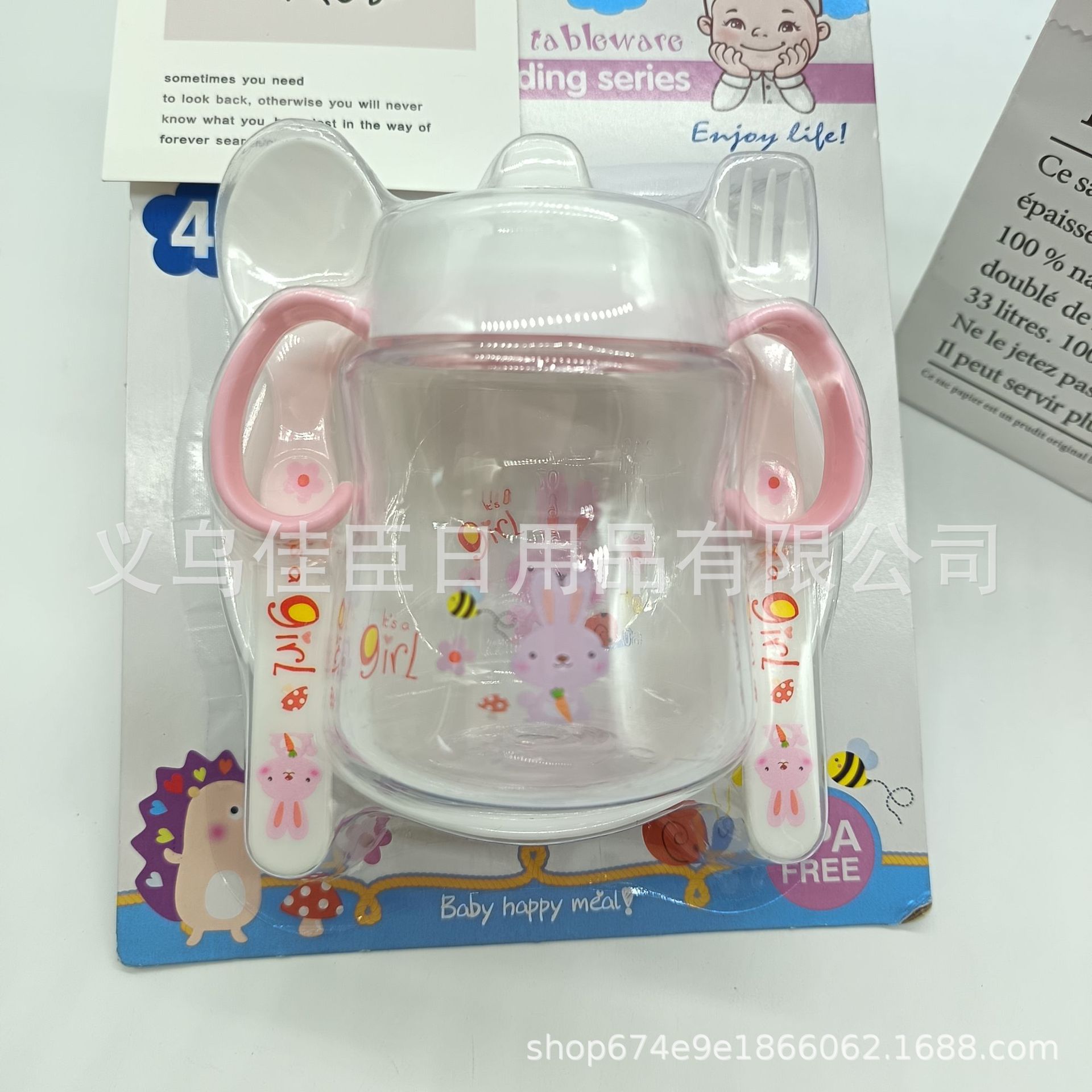 跨境热销pp材质宝宝奶瓶饭碗叉勺套组儿童餐具简约实用婴幼儿餐具