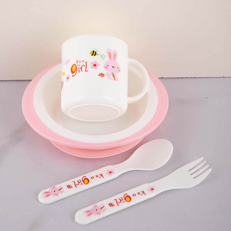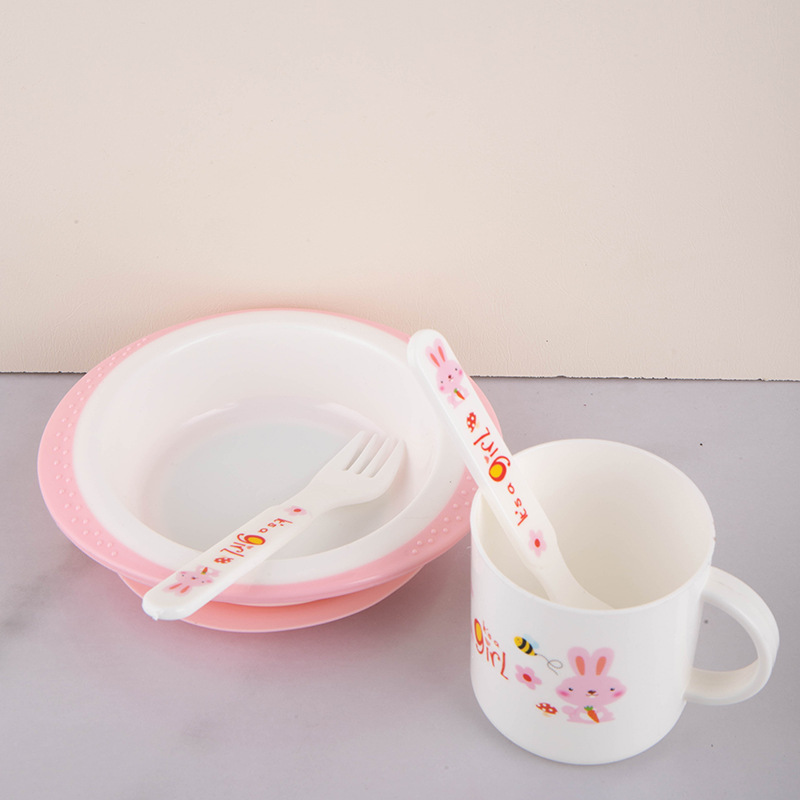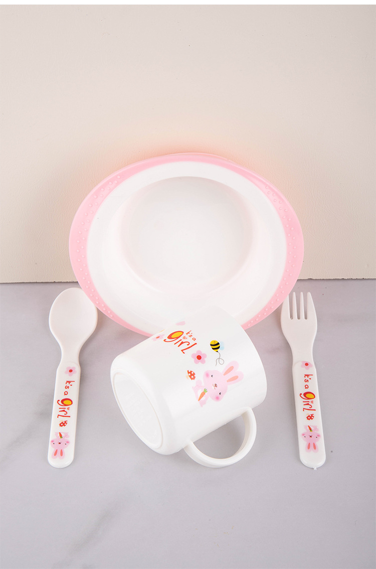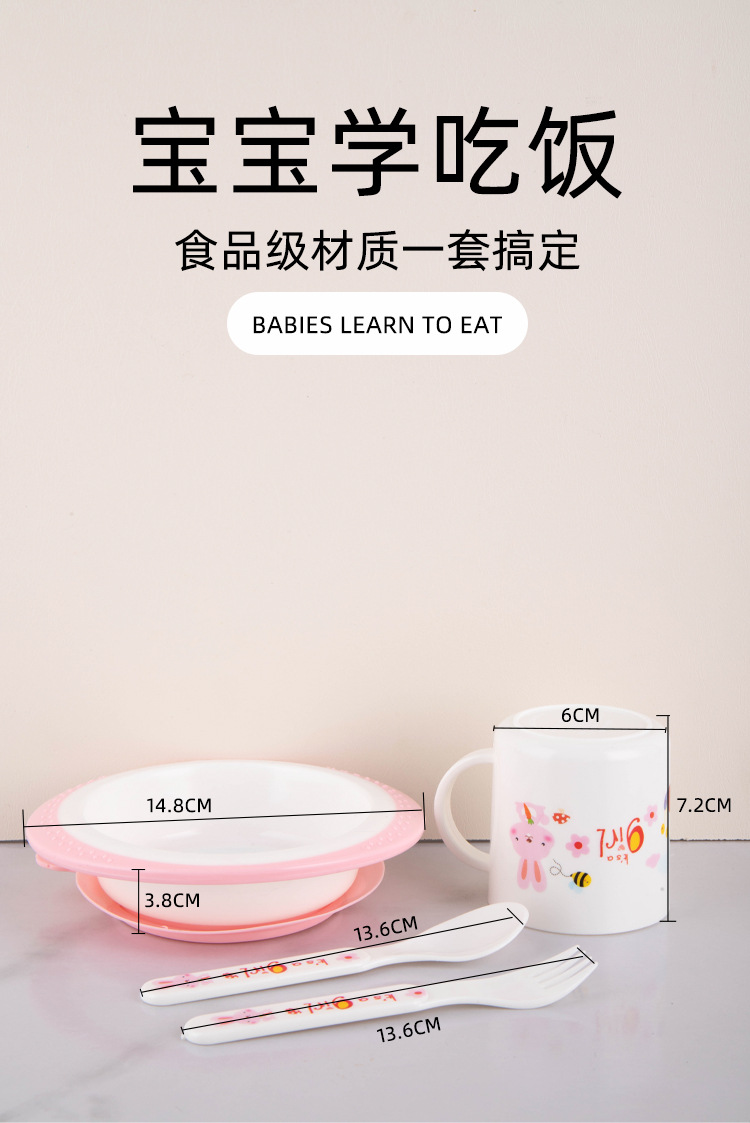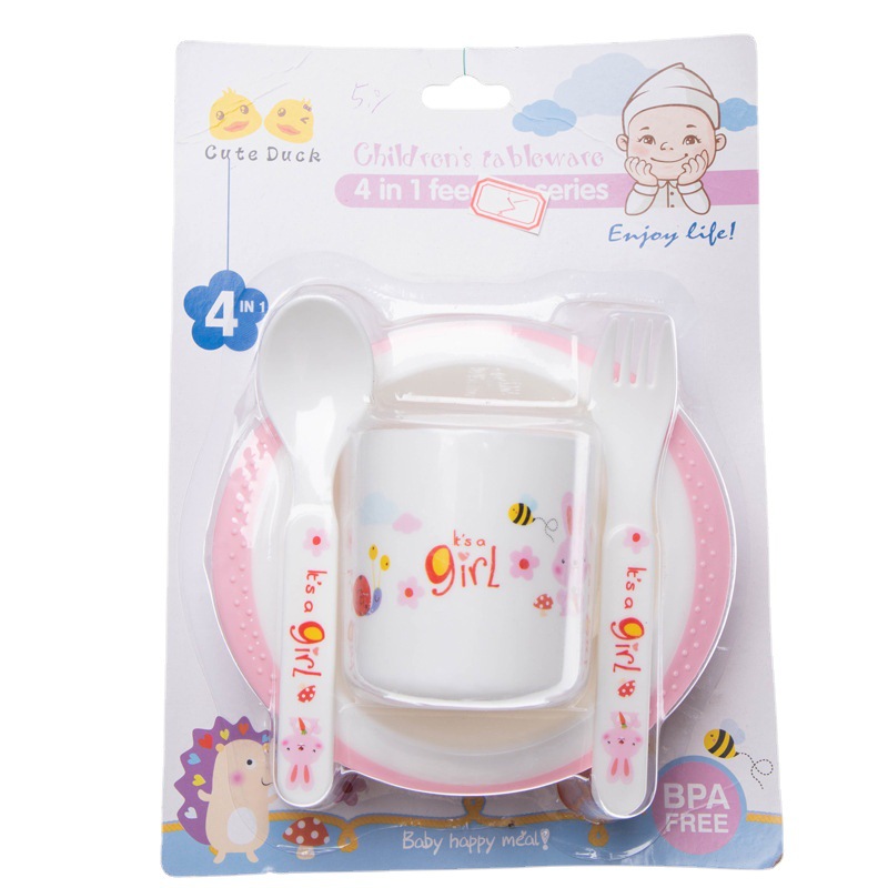 跨境批发卡通可爱PP儿童餐具套装4件套 宝宝餐盘碗叉子杯子母婴用