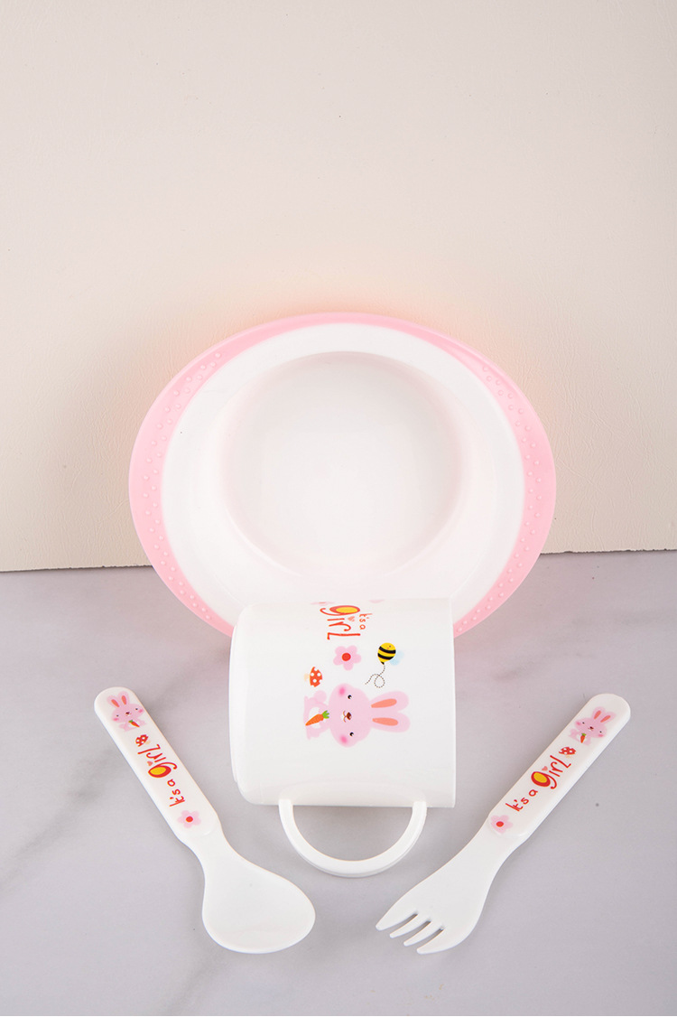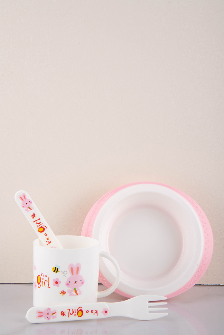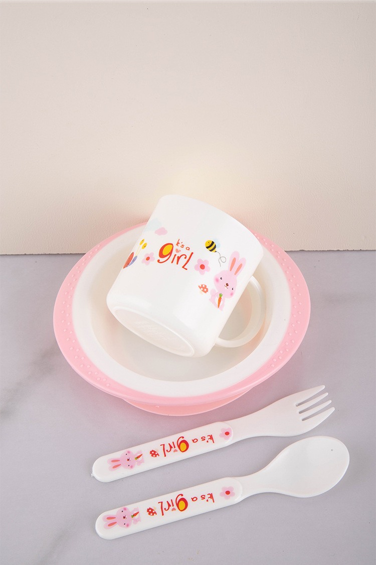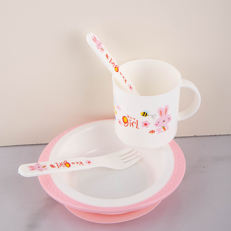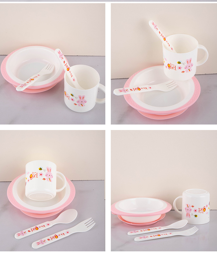 跨境批发卡通可爱PP儿童餐具套装4件套 宝宝餐盘碗叉子杯子母婴用