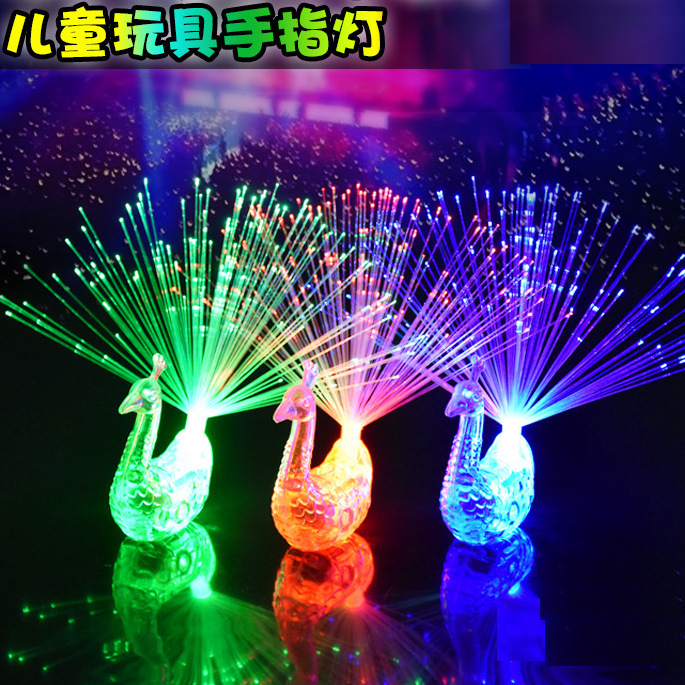 孔雀手指灯发光变色孔雀开屏光纤灯儿童地摊夜市货源发光玩具批发