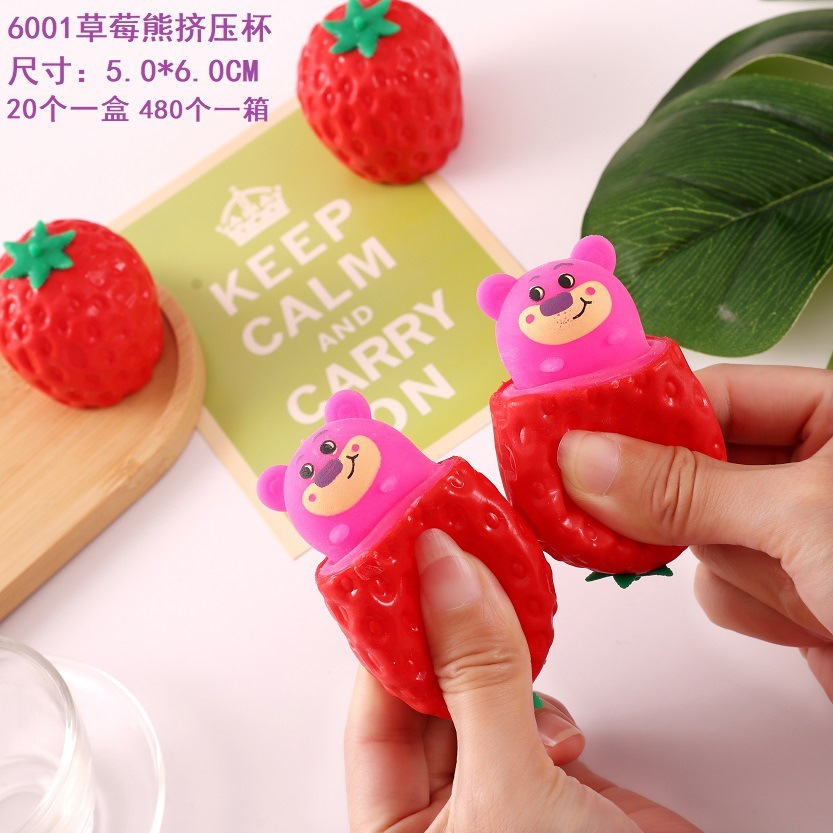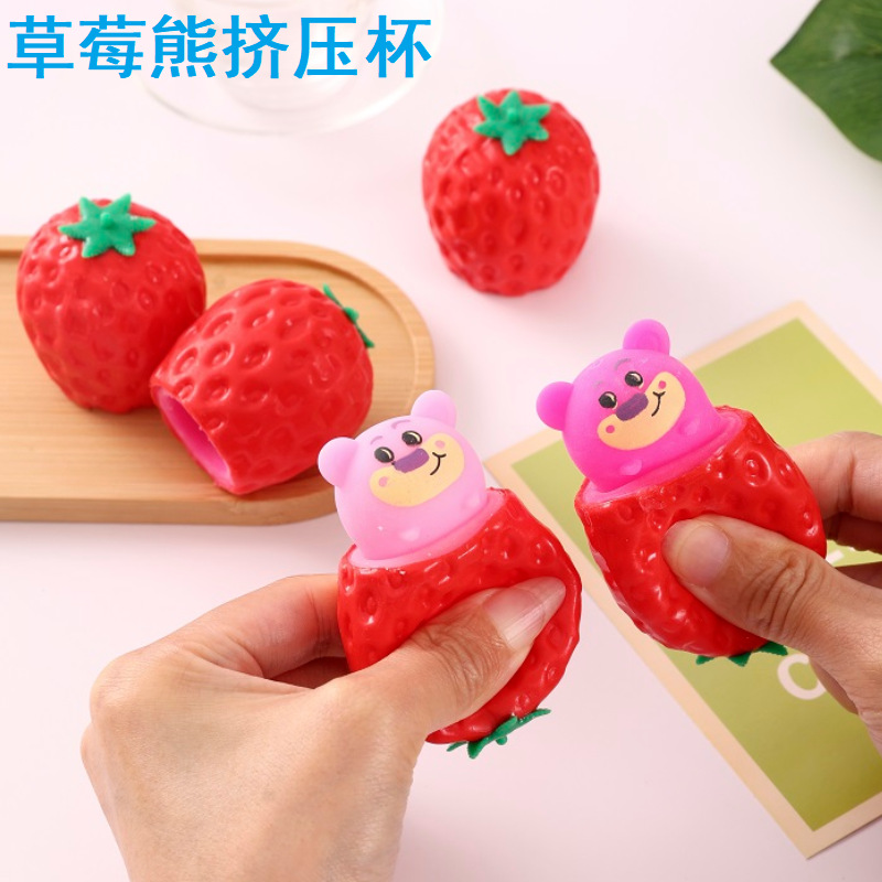 小号草莓熊挤压杯创意解压奶酪老鼠杯挤压发泄萝卜杯减压玩具批发