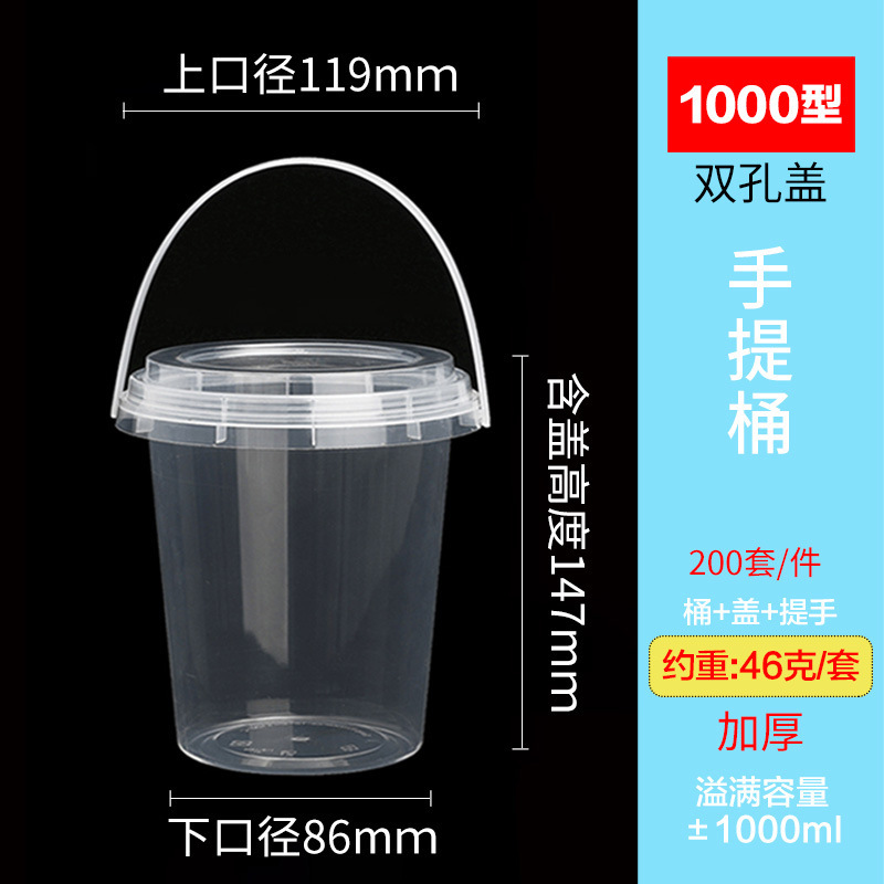 一次性水果茶手提桶冰粉芋泥烧仙草奶茶打包桶网红水果捞吨吨桶杯