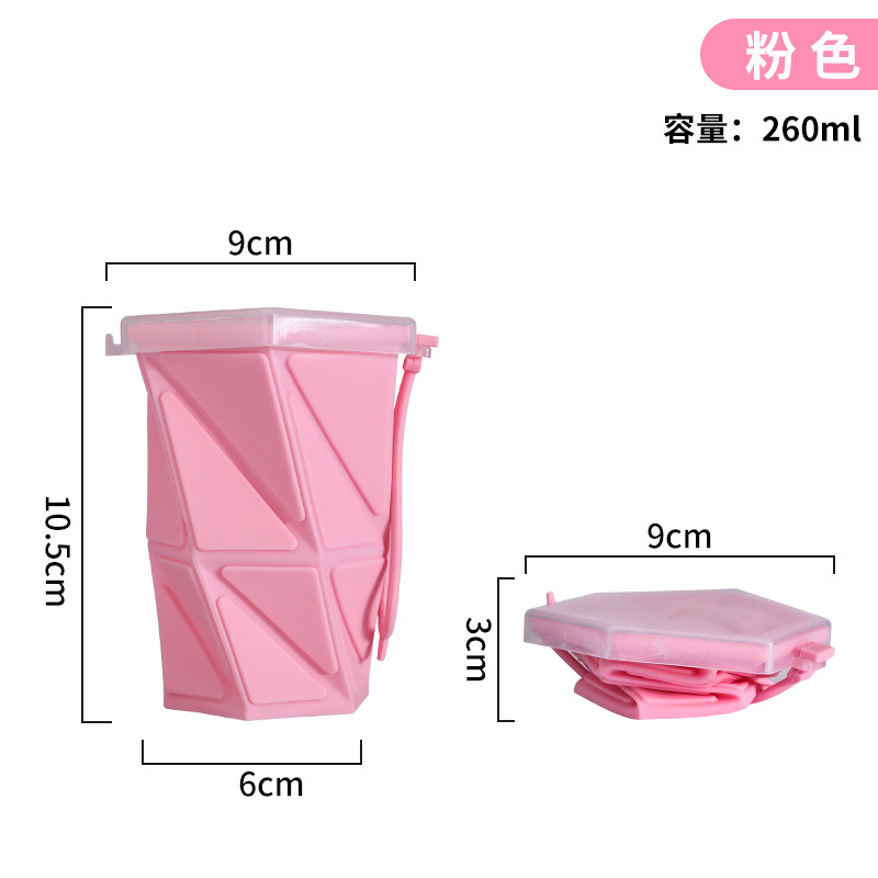 新款跨境硅胶折叠水杯可伸缩礼品杯260ml户外运动旅行便携漱口杯