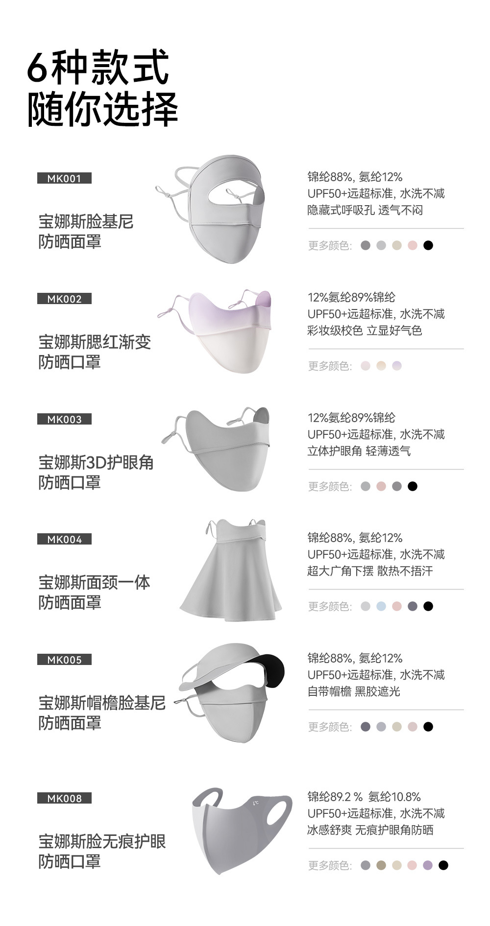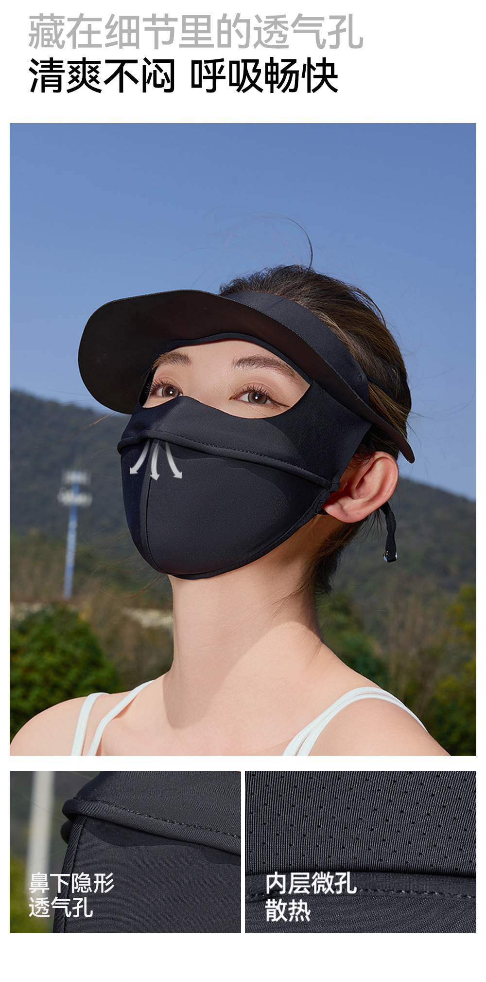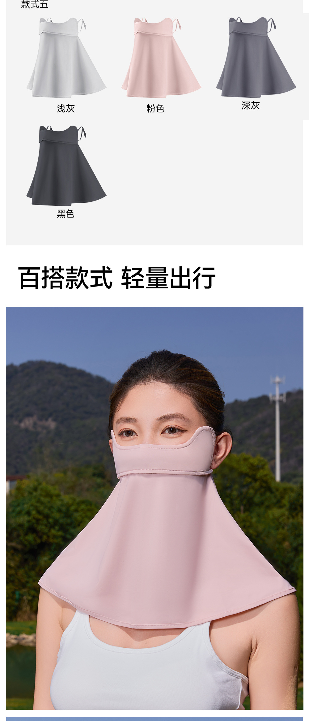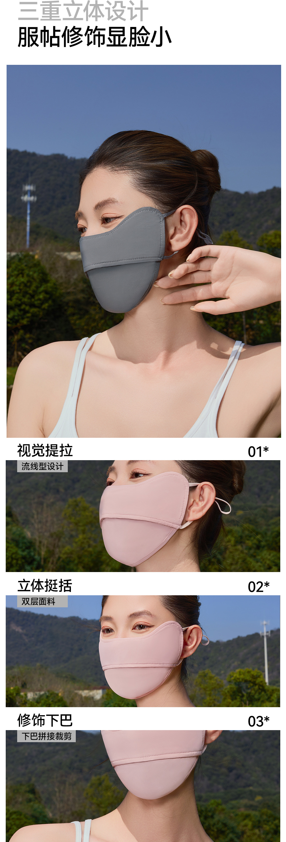 宝娜斯防晒口罩防紫外线护眼角立体冰丝凉感脸基尼全脸防晒面罩