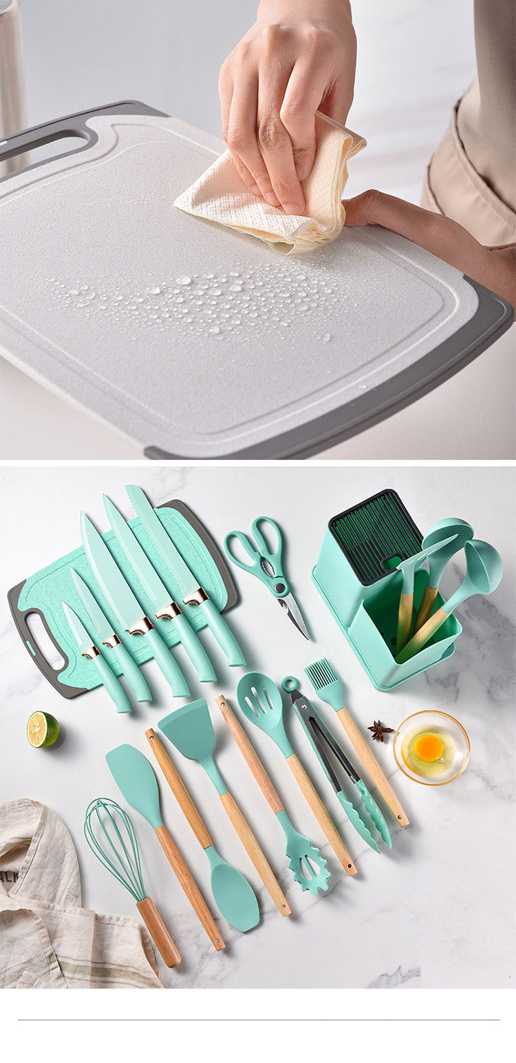 多功能19件套硅胶厨房套装家用不锈钢不粘刀具硅胶厨具组合耐高温