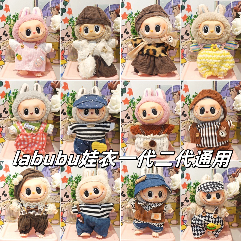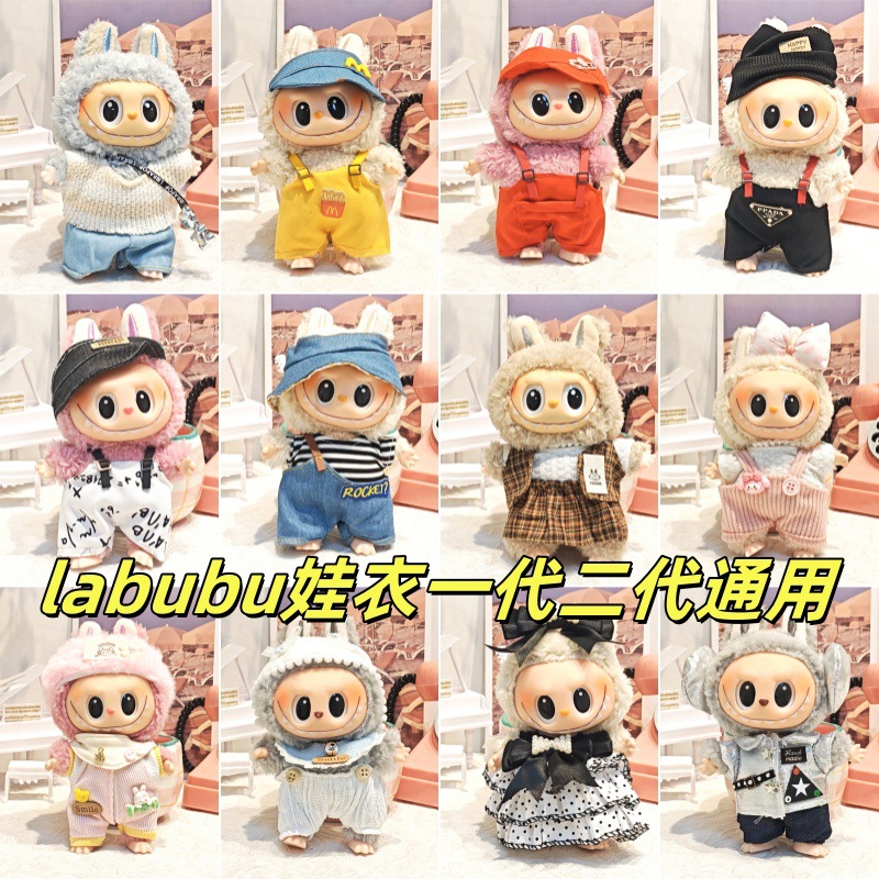 批发labubu拉布布娃衣服17cm盲盒挂件一二代搪胶公仔着替娃衣套装