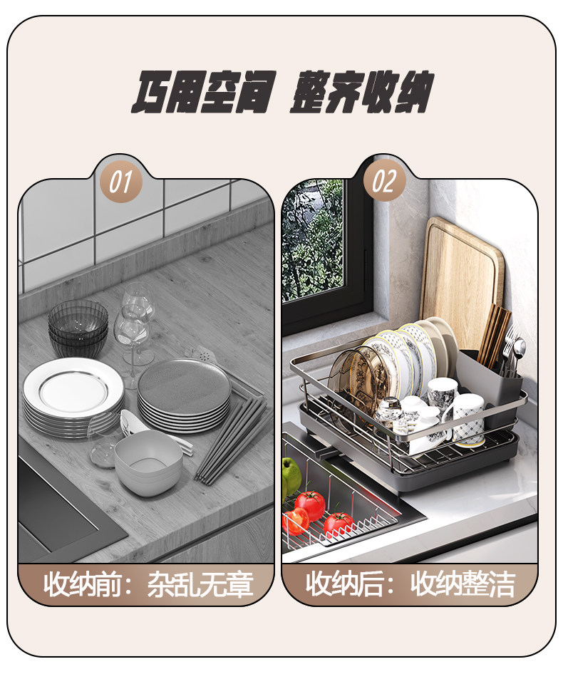 厨房置物架自排水碗架碗筷碟架篮家用台面碗碟沥水架收纳架沥水盘