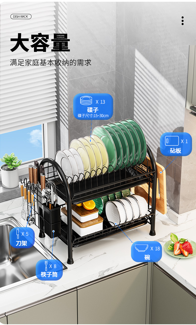 亚马逊厨房置物架碗碟收纳架台面滤水晾碗篮碗筷盘子收纳沥水碗架