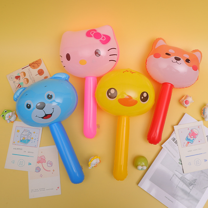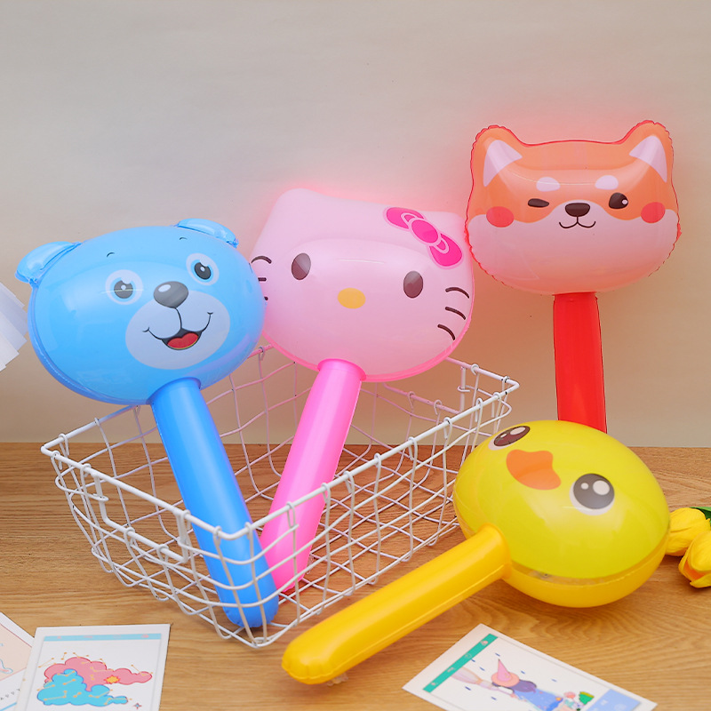 卡通动物头充气锤子长棒带铃铛儿童充气玩具幼儿园小礼品微商地摊