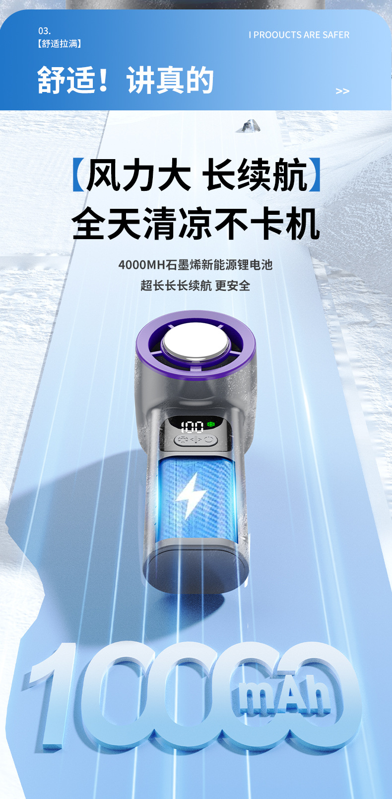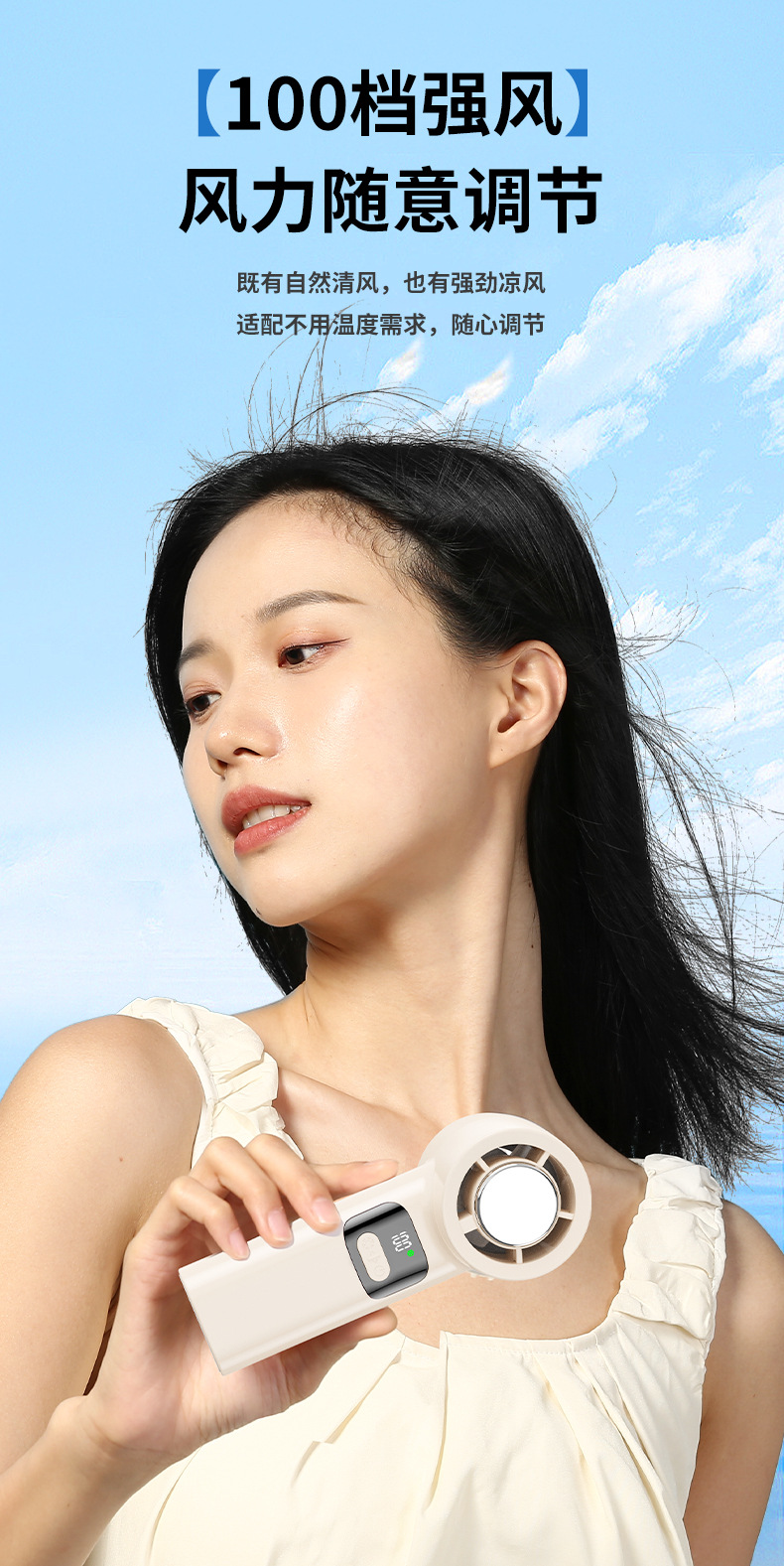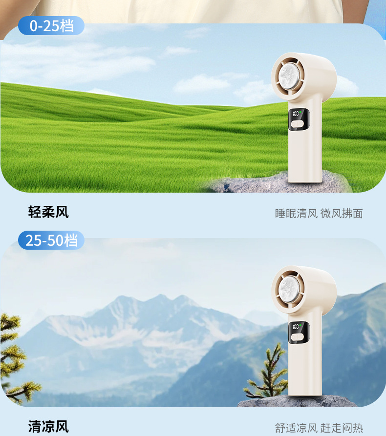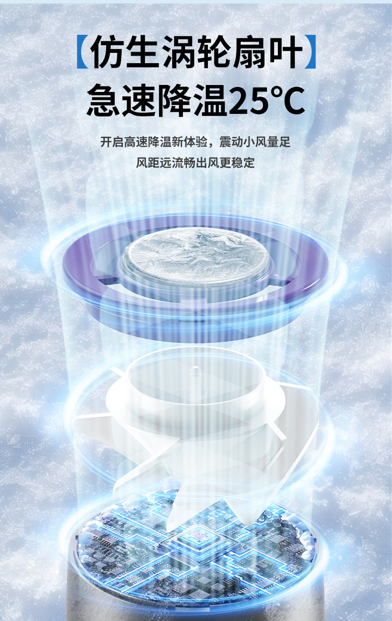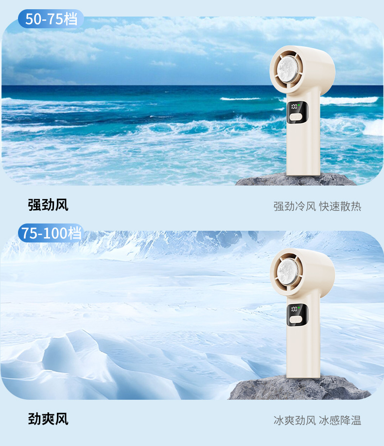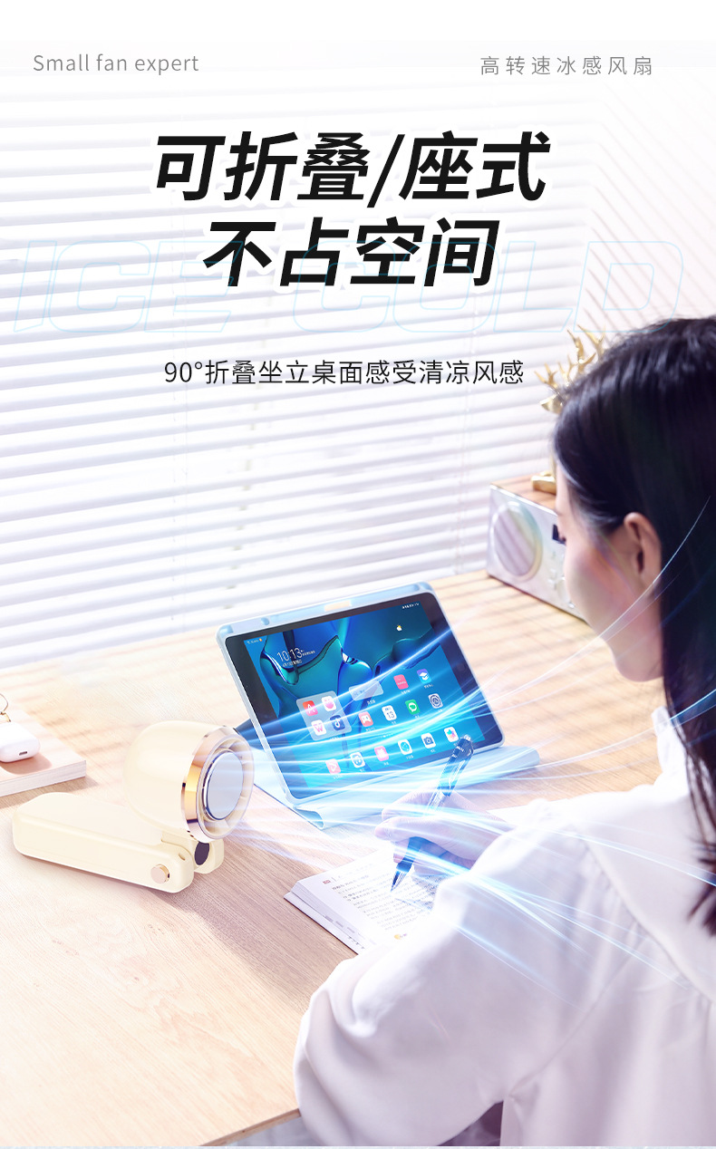 新款超高速半导体手持制冷风扇100档调节无叶便携式折叠风扇