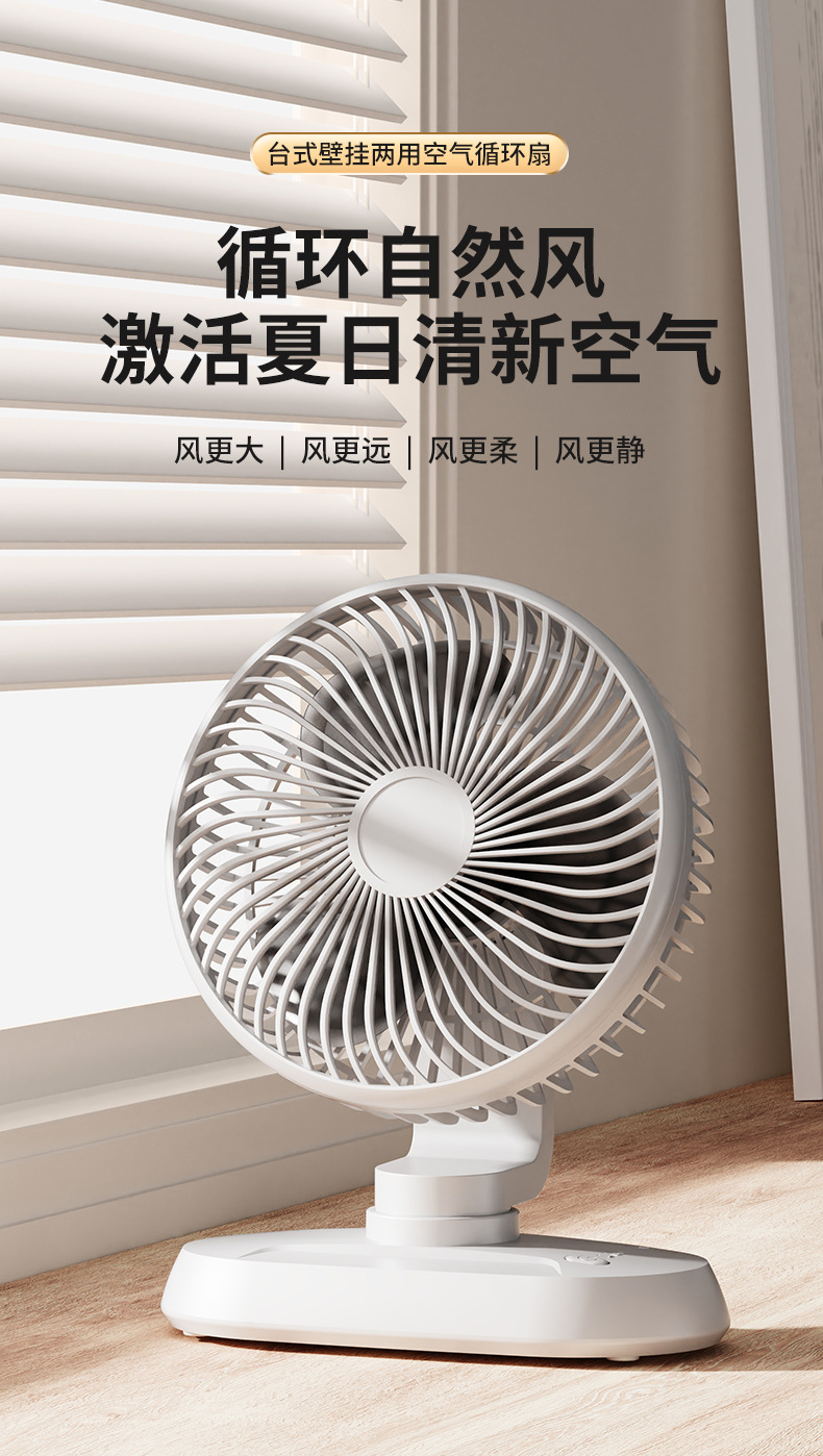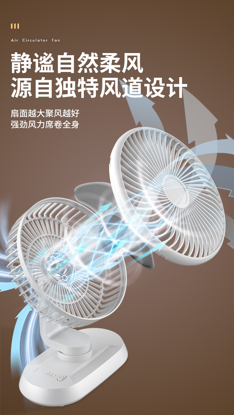 电风扇家用三合一桌面摇头循环扇usb充电台式挂式办公静音落地扇