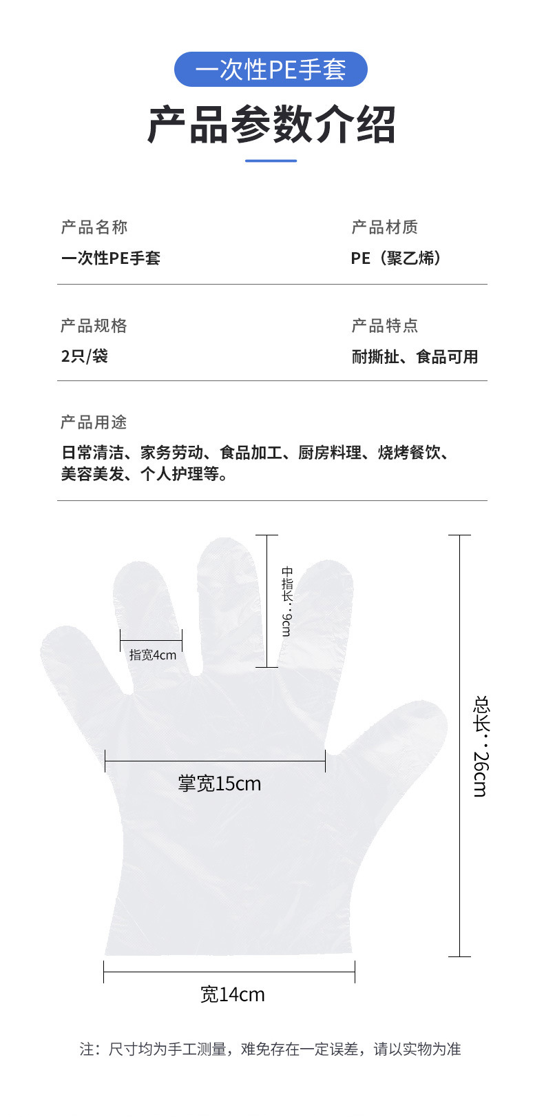 一次性透明手套pe手套外卖餐饮小龙虾小包装手套食品级塑料手套