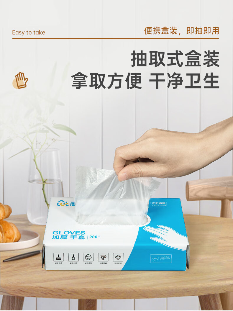 批发屋田一次性手套特厚盒装加厚厨房套家用透明商用外卖餐具便携