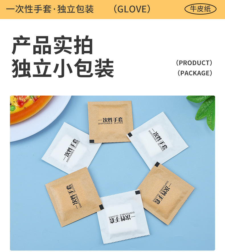 一次性手套食品级pe加厚牛皮纸独立小包装两只装商用餐饮炸鸡外卖