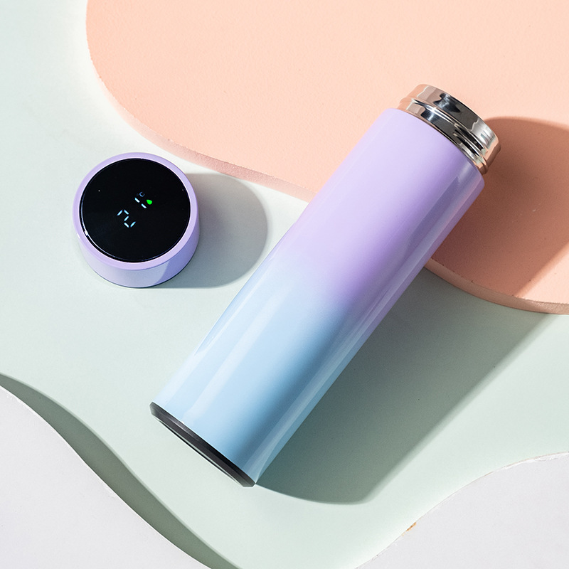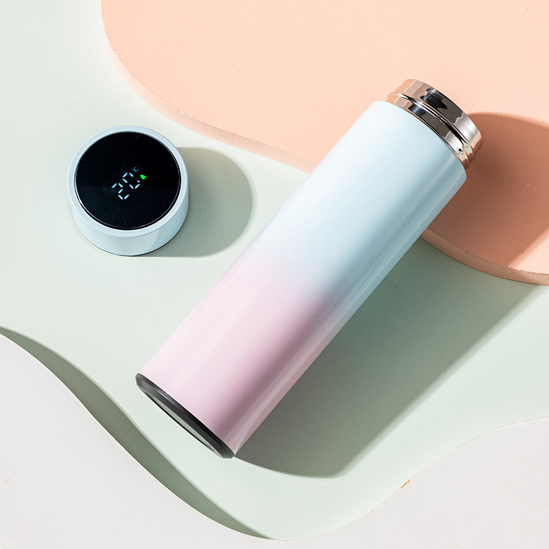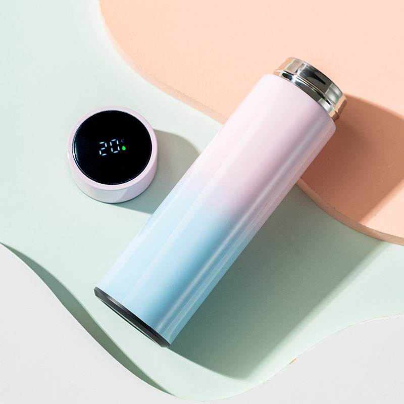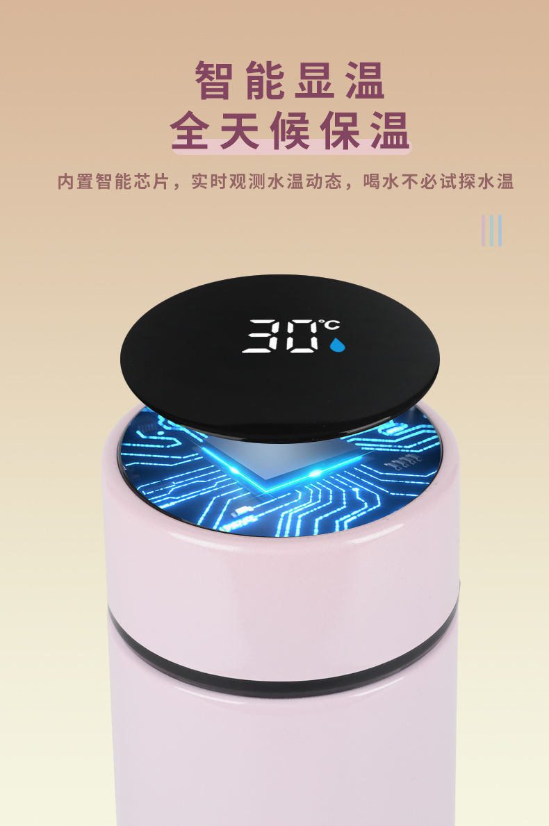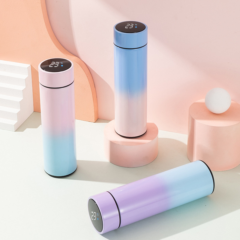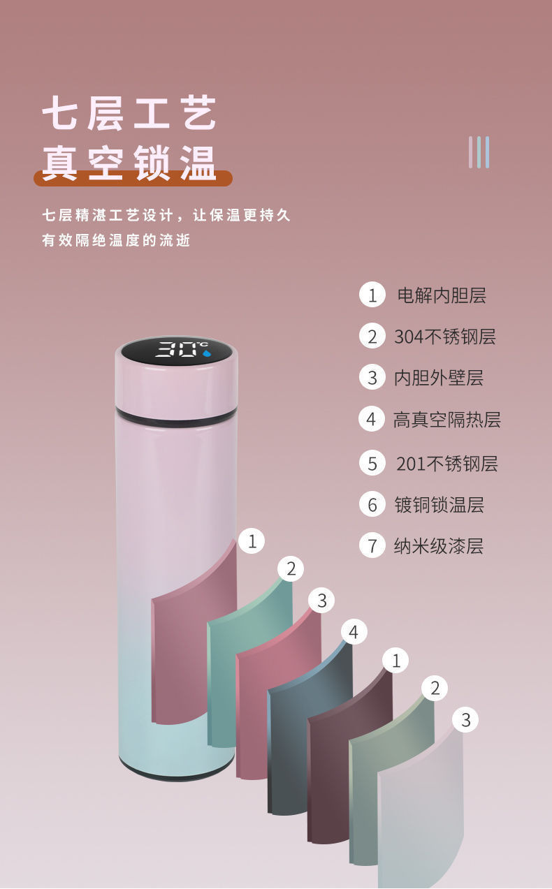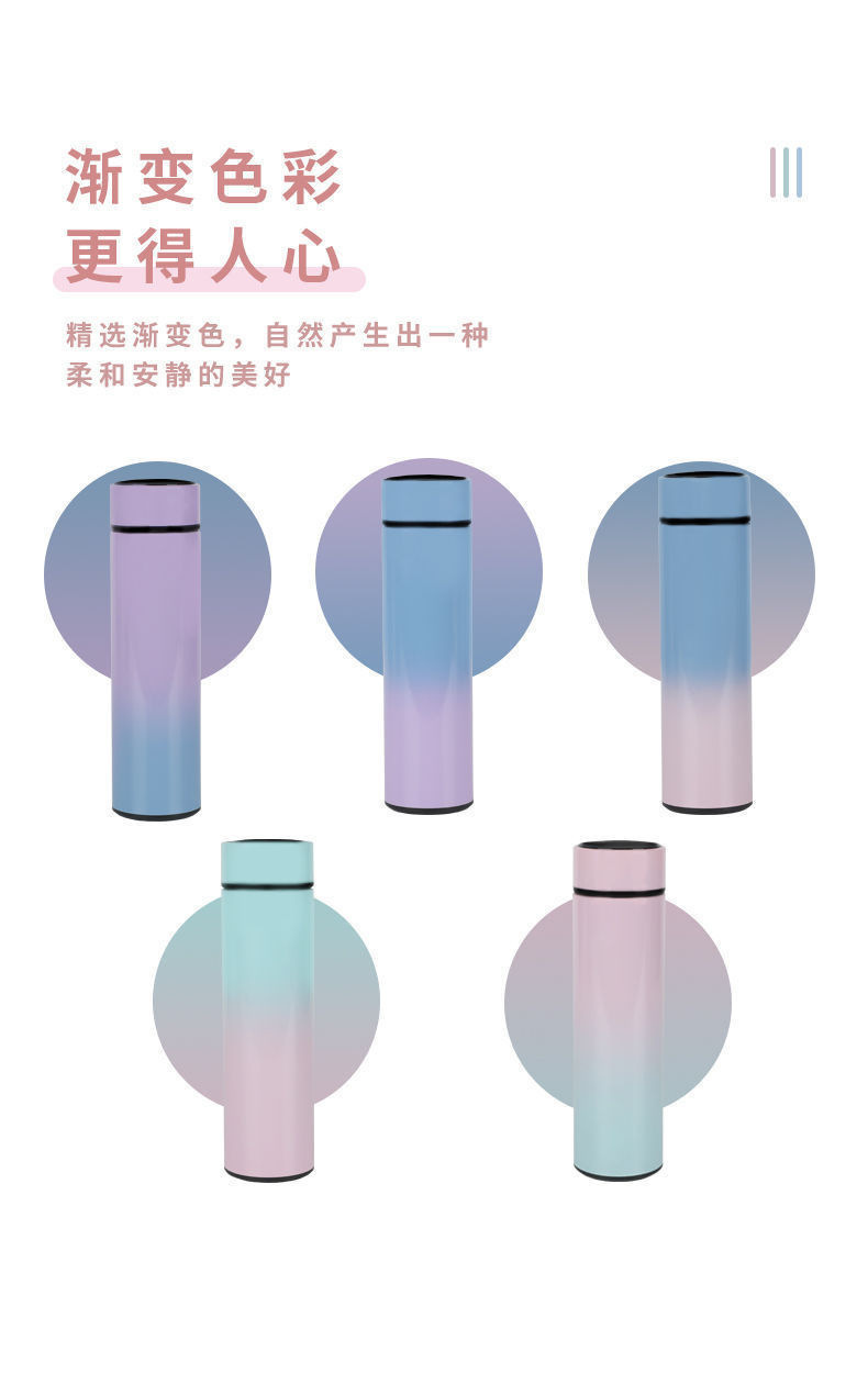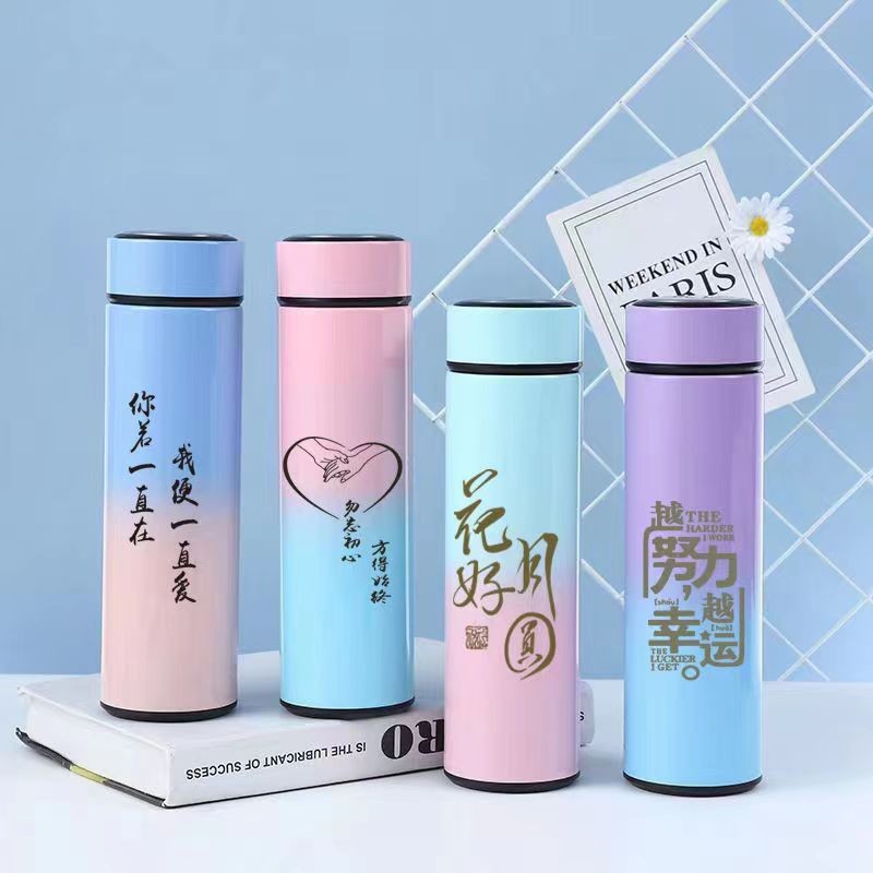 保温杯温度杯304不锈钢渐变色测温杯商务礼品杯可印LOGO便携杯