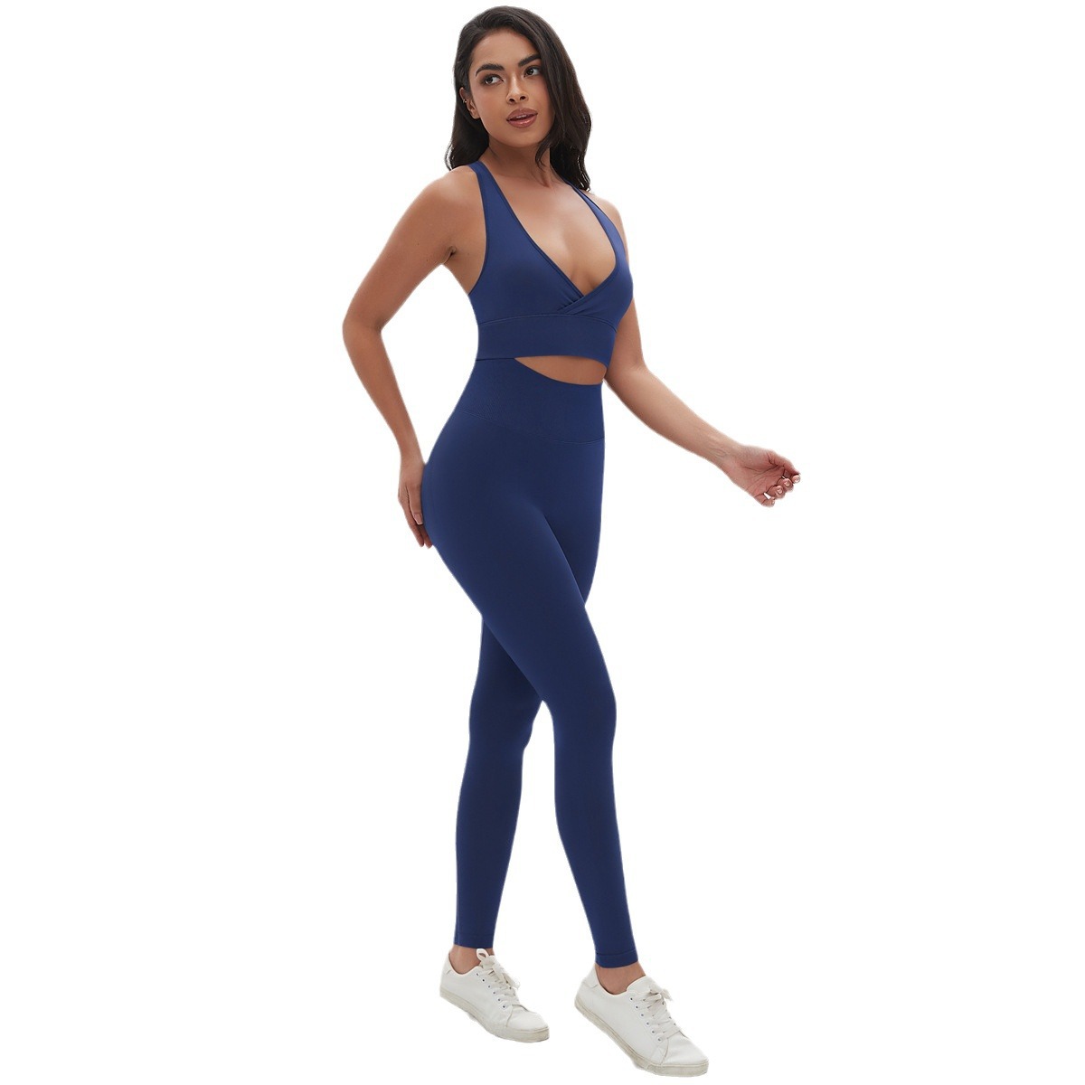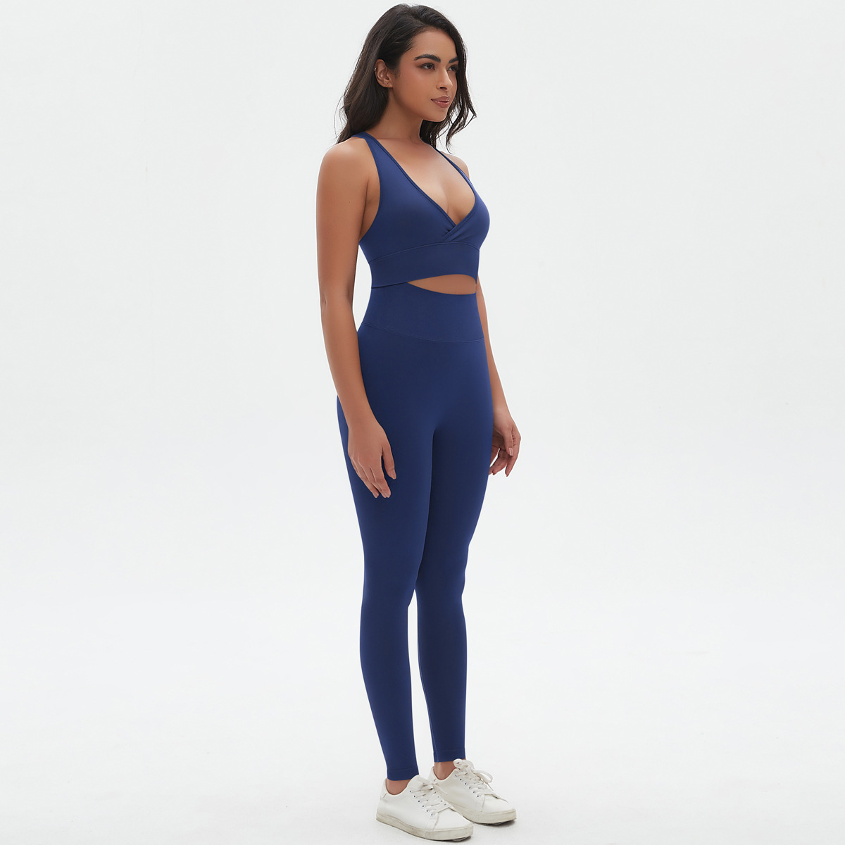 新款跨境无缝纯色紧身性感交叉工字美背瑜伽服套装跑步健身两件套