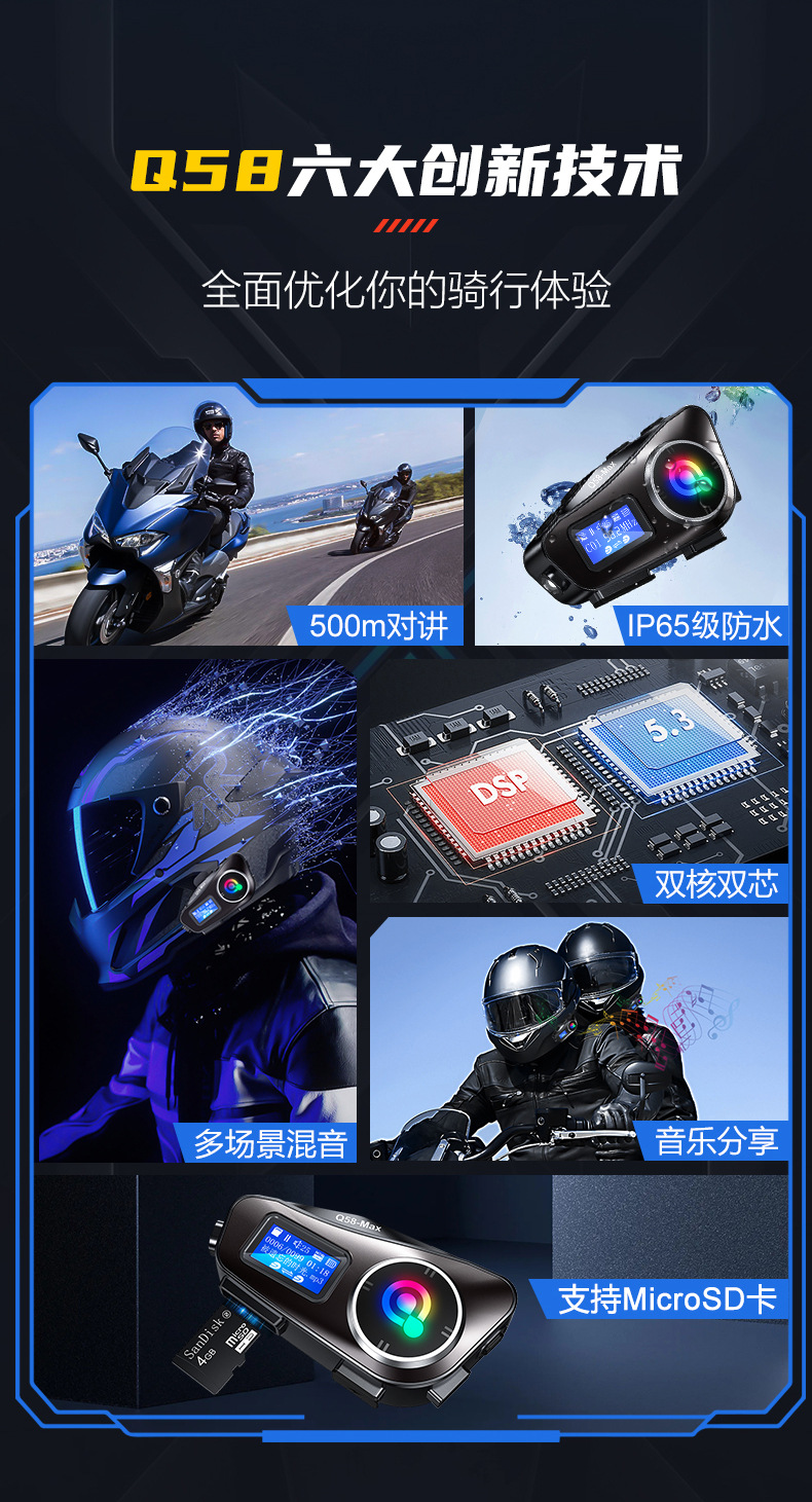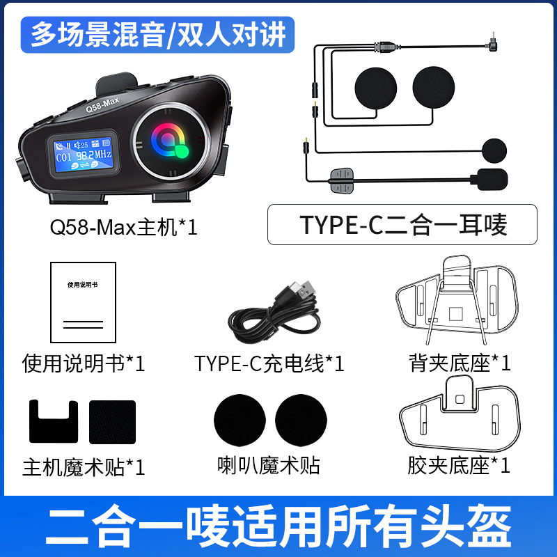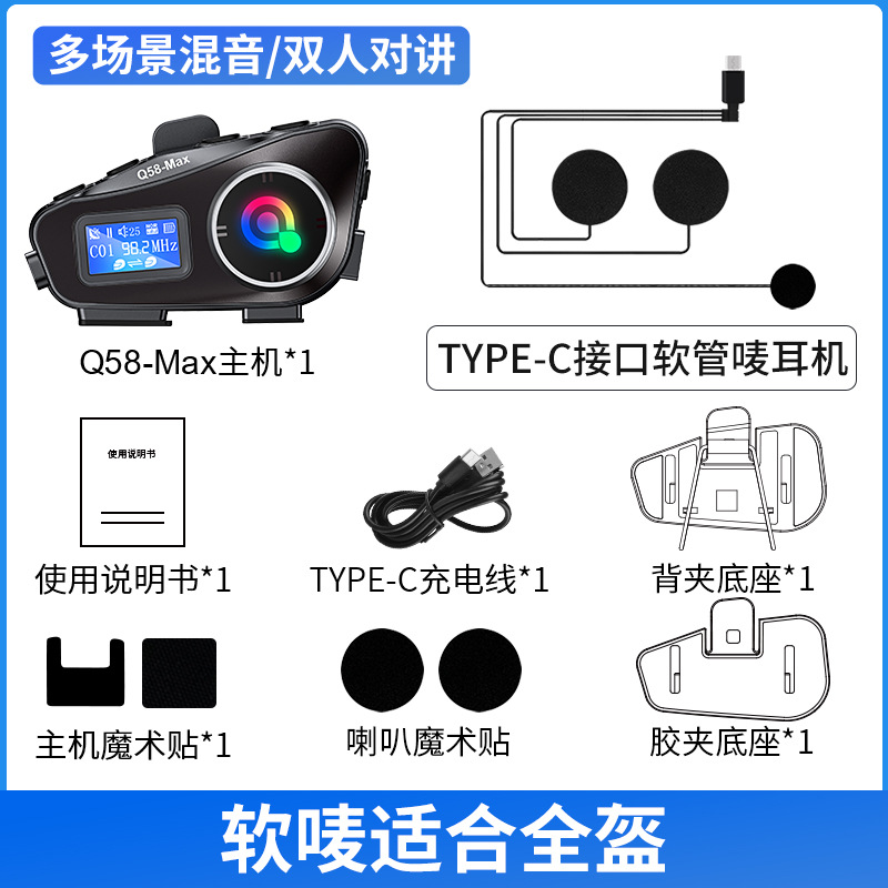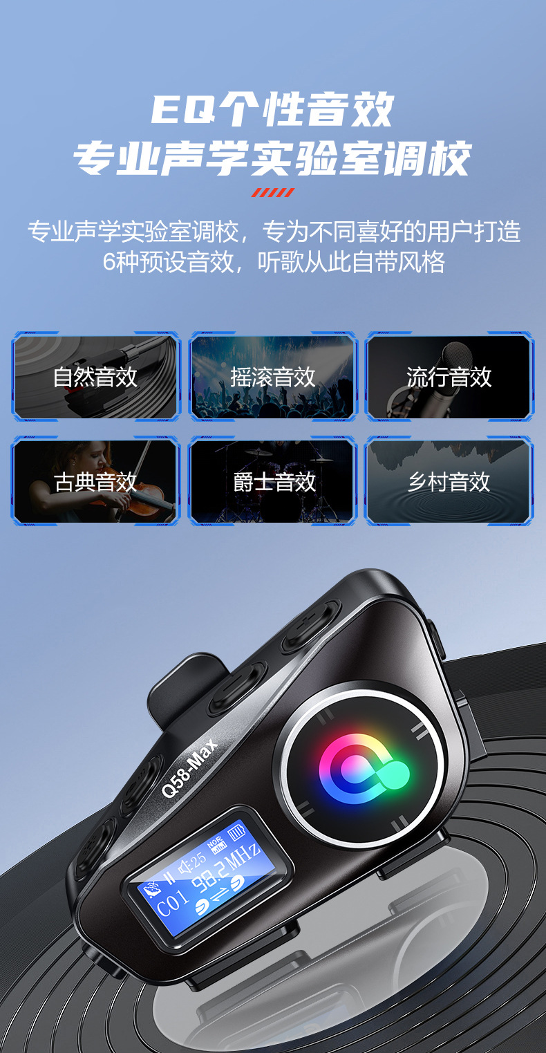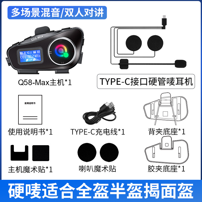 Q58MAX混音对讲头盔蓝牙耳机带fm tf卡 300米对讲 头盔耳机