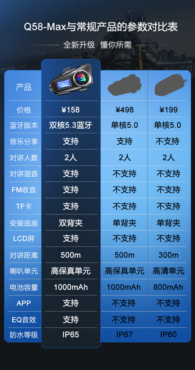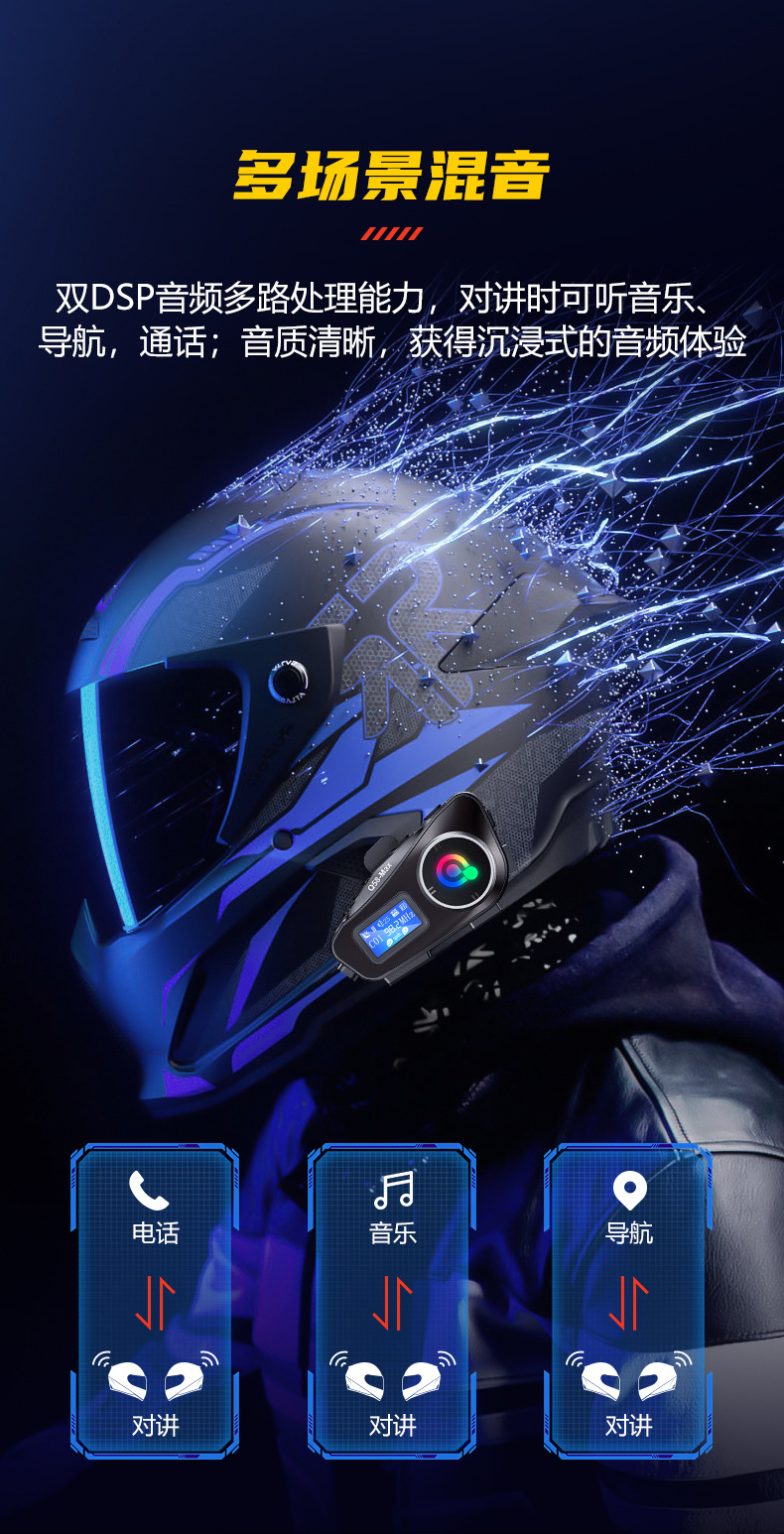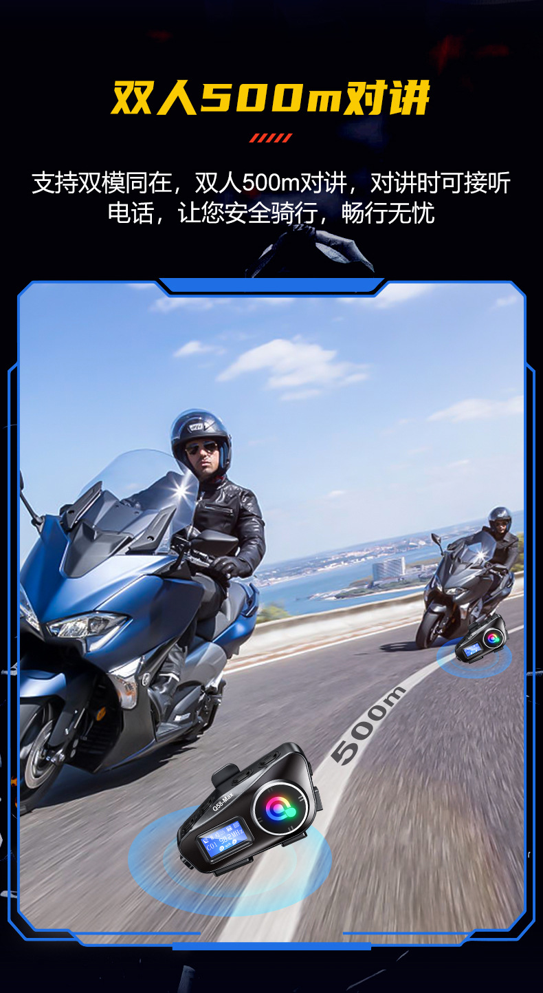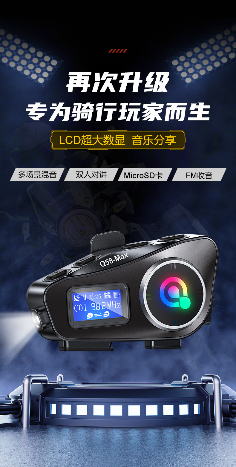 Q58MAX混音对讲头盔蓝牙耳机带fm tf卡 300米对讲 头盔耳机