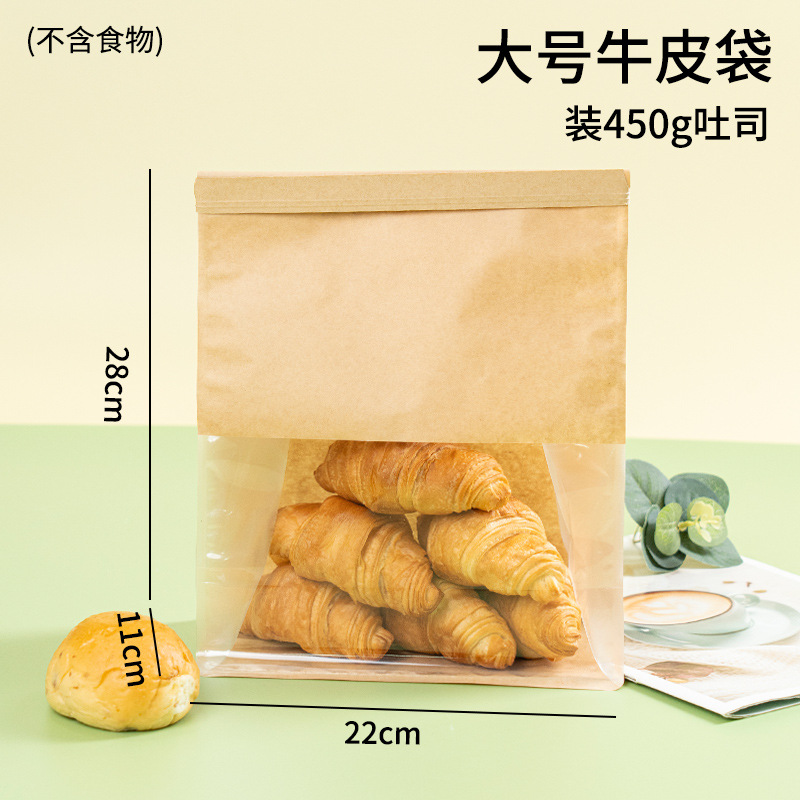 透明白色八边封吐司袋封口袋牛皮纸袋食品级面包袋卷边吐司包装袋