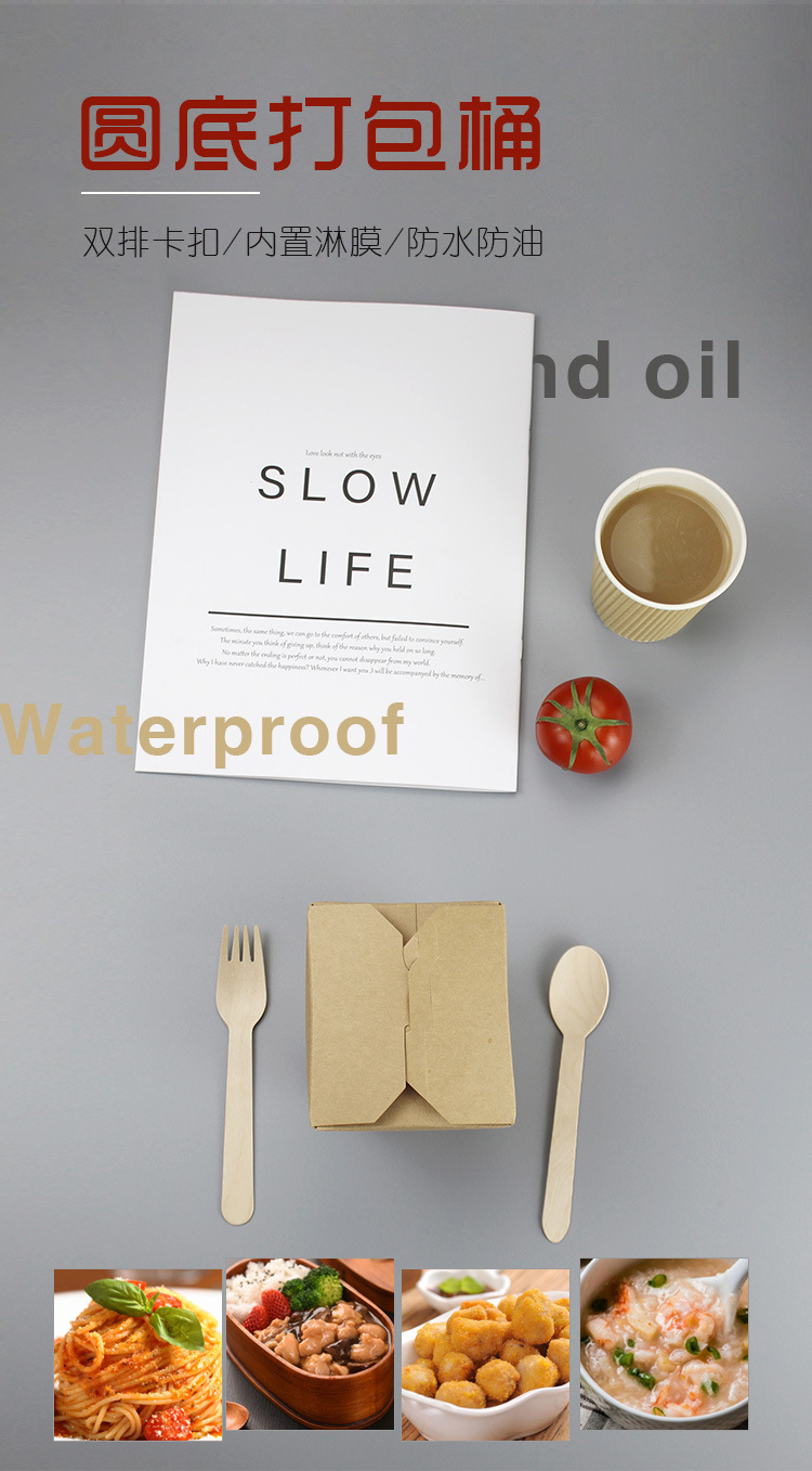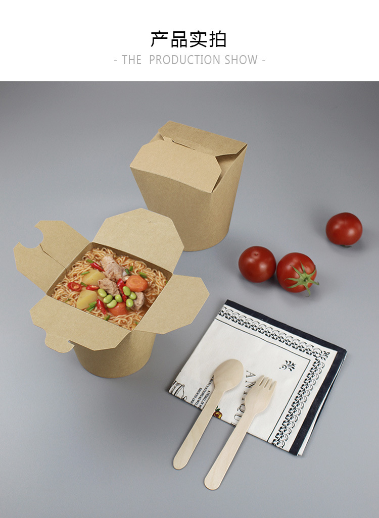 一次性圆底方形折叠可加热加厚纸质打包盒意面纸桶纸饭盒定制logo