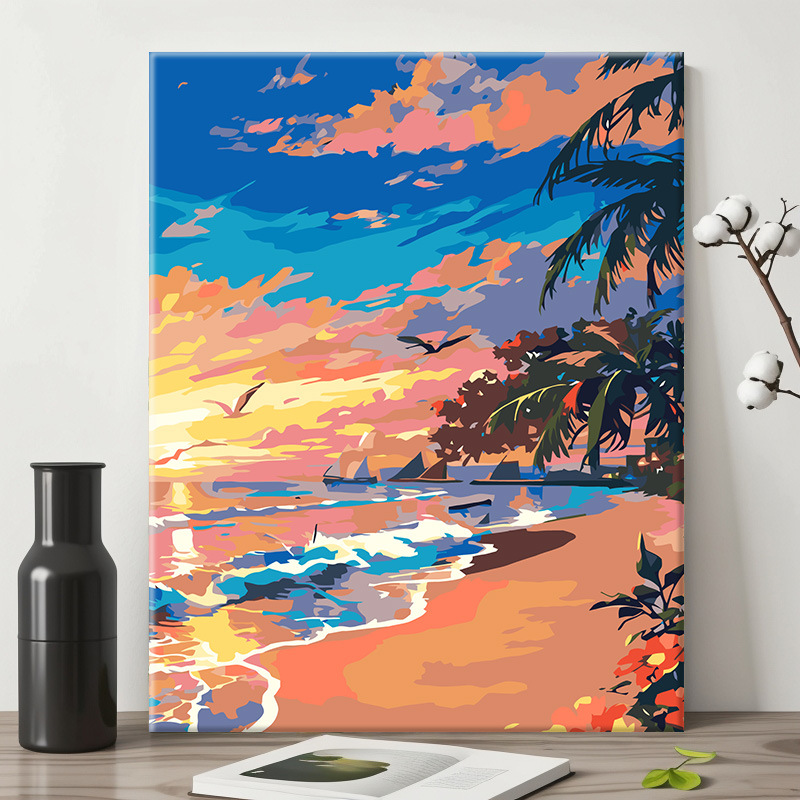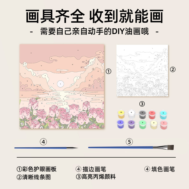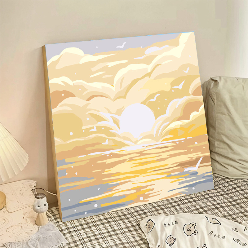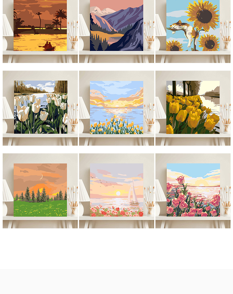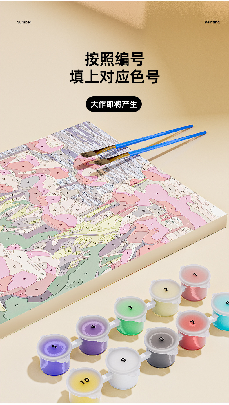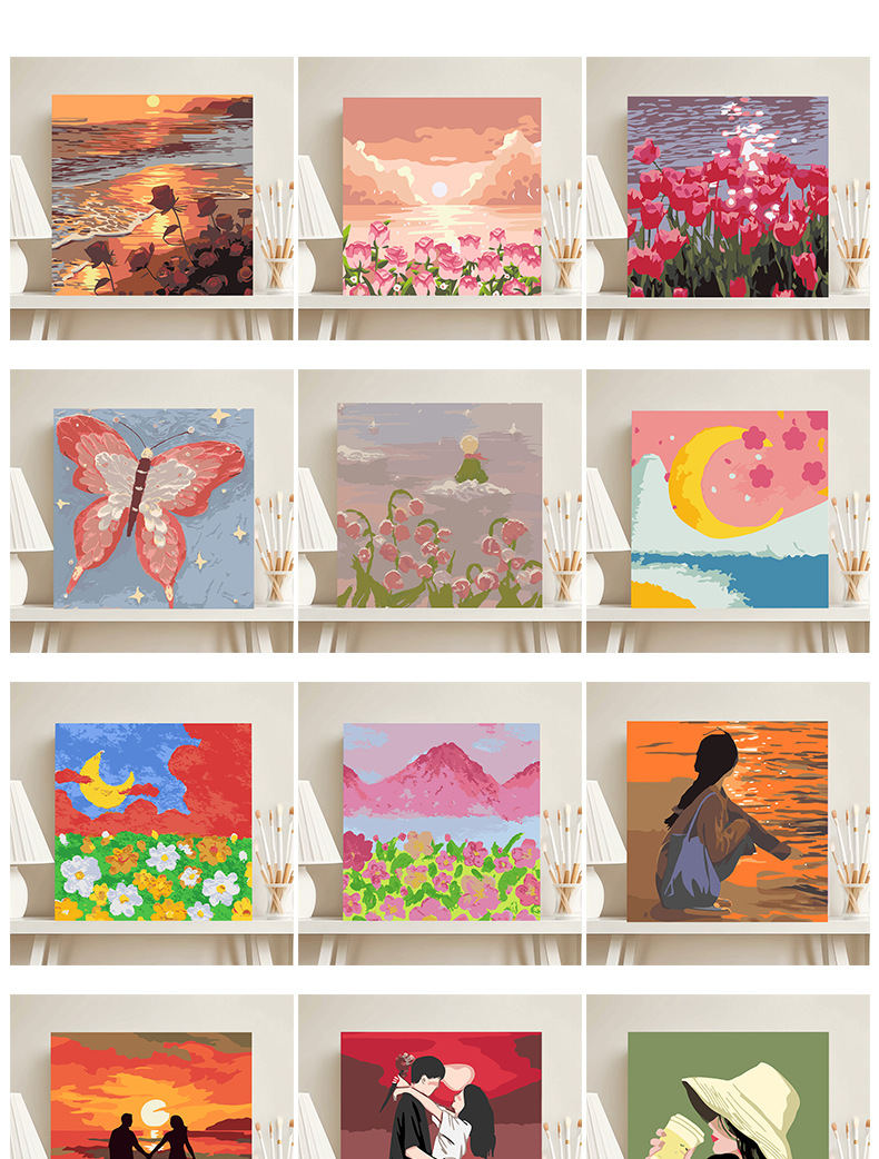 跨境风景diy数字油画 高品质实木框丙烯手工涂色填色画支持定制