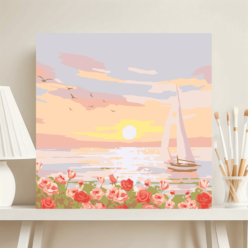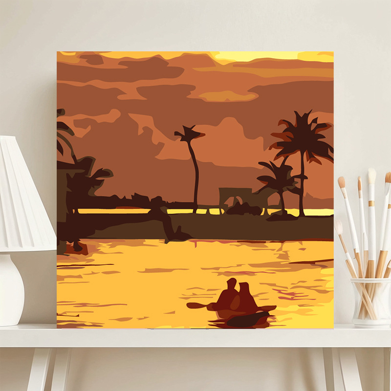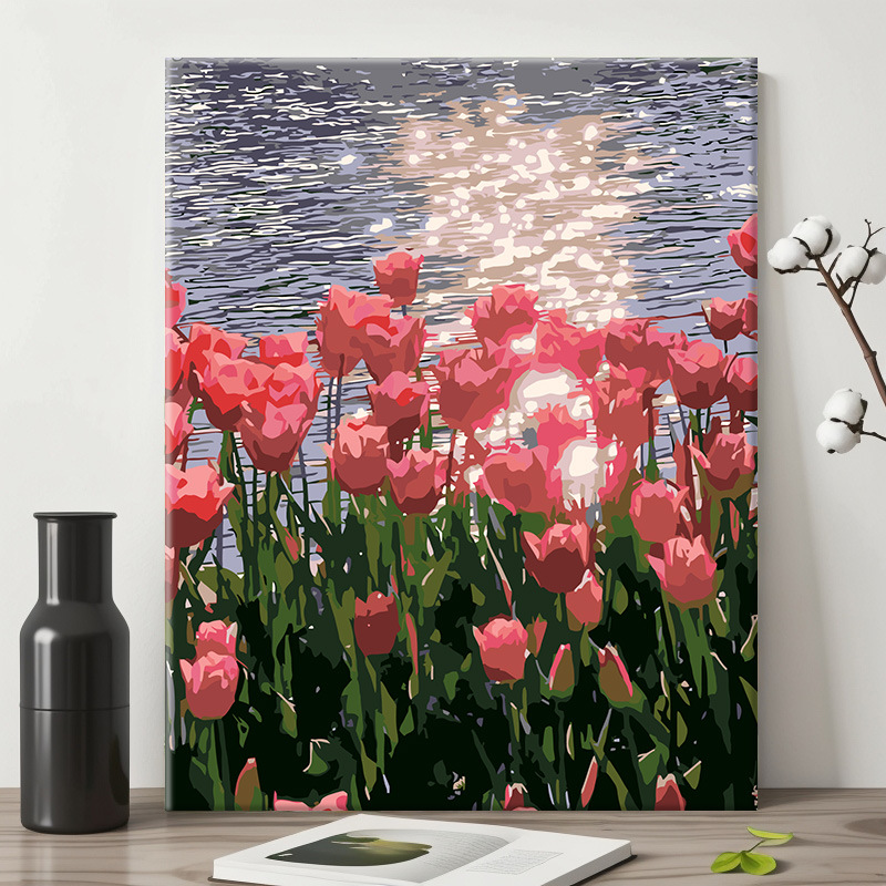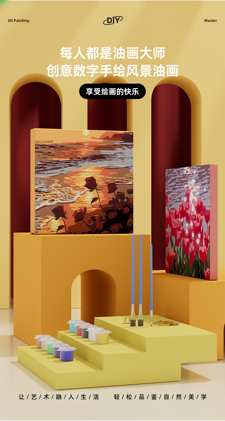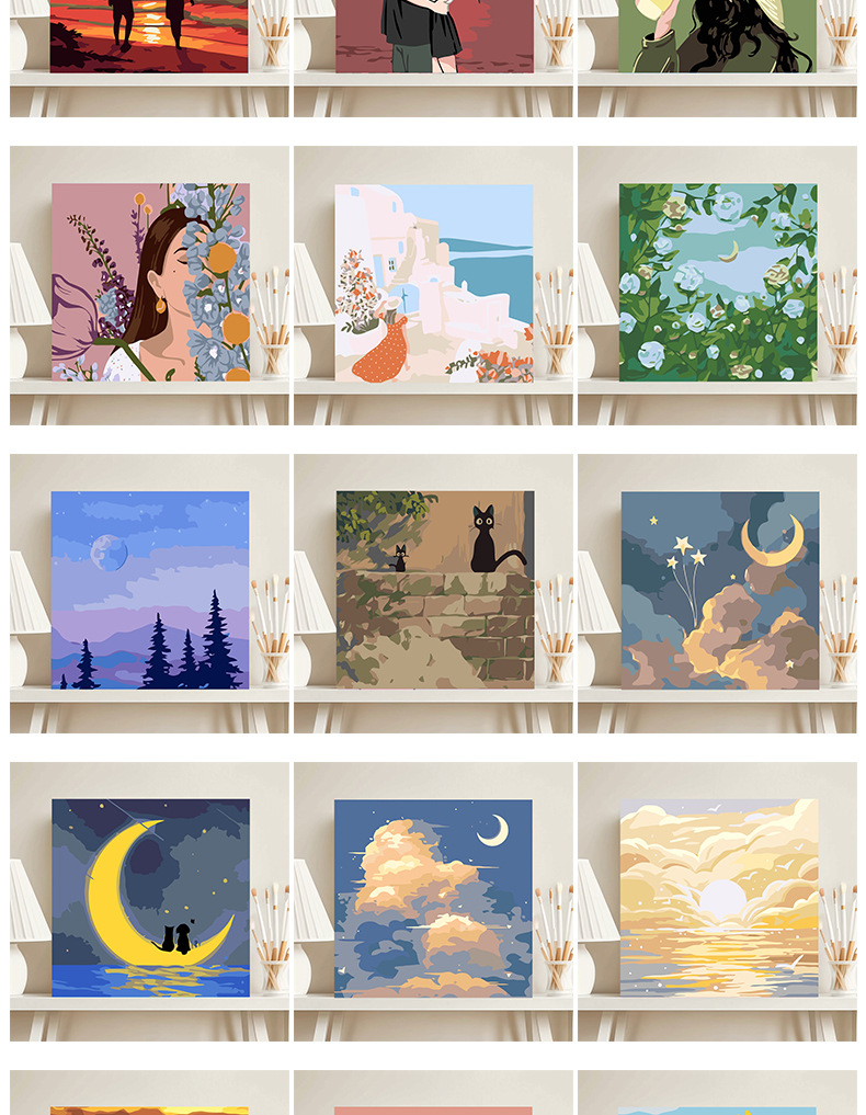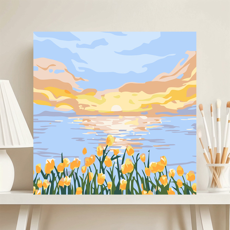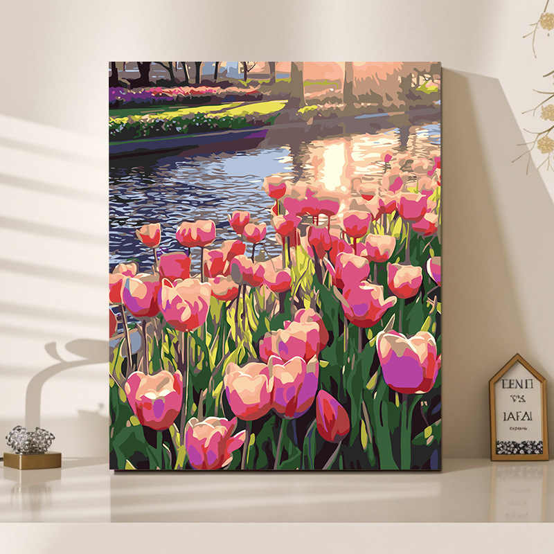 跨境风景diy数字油画 高品质实木框丙烯手工涂色填色画支持定制