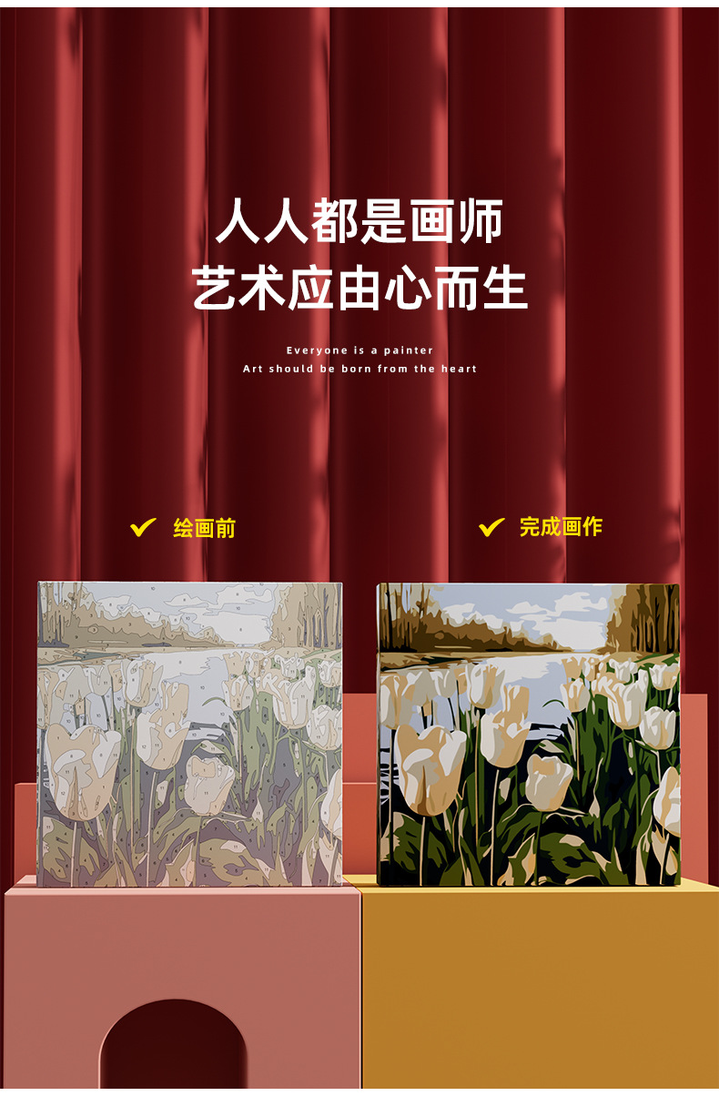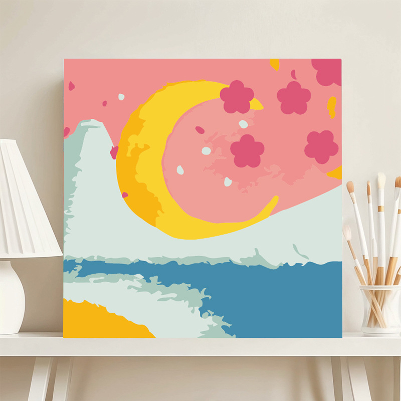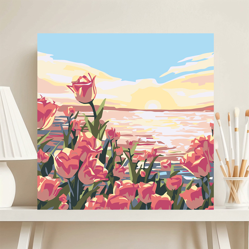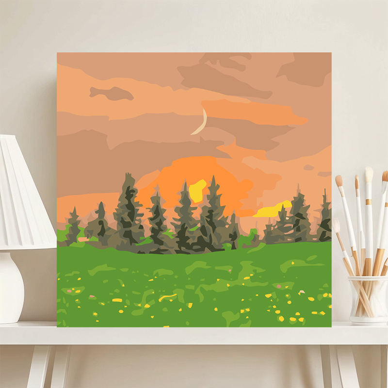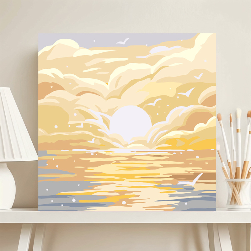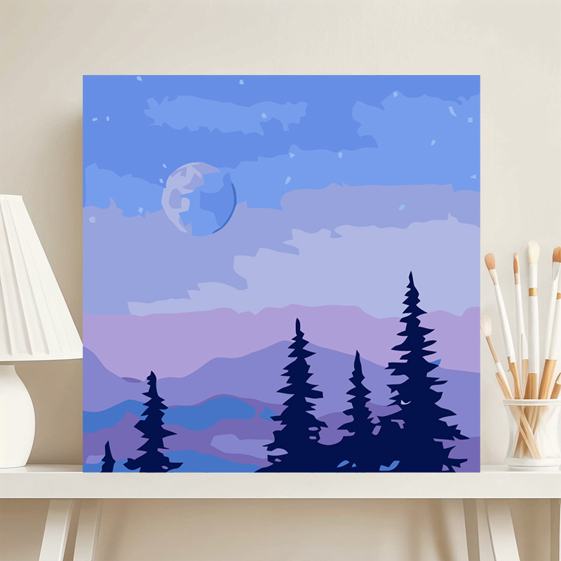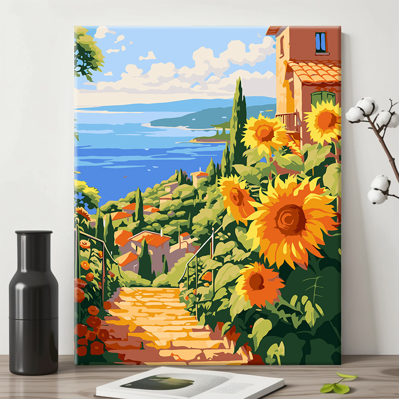 跨境风景diy数字油画 高品质实木框丙烯手工涂色填色画支持定制
