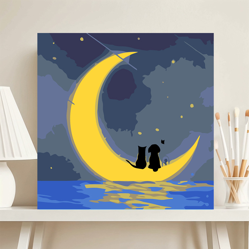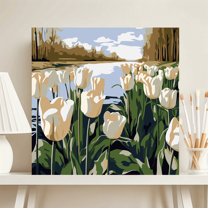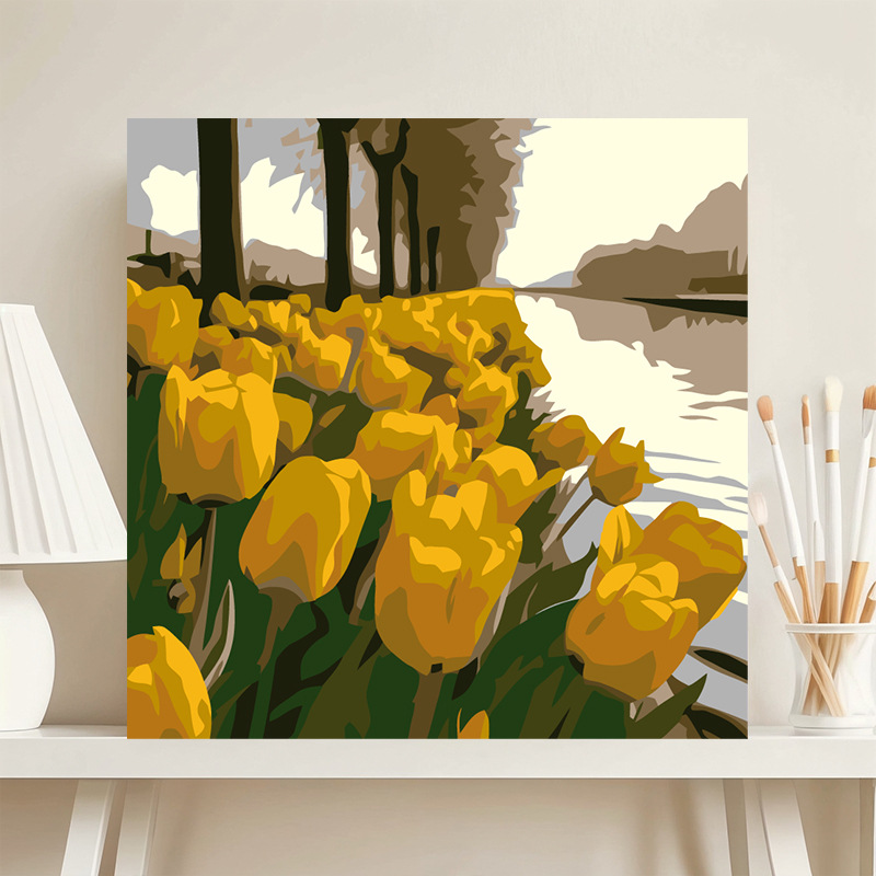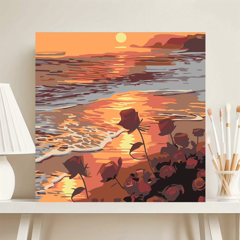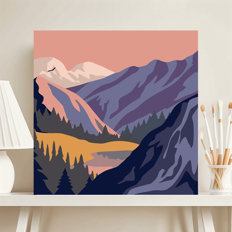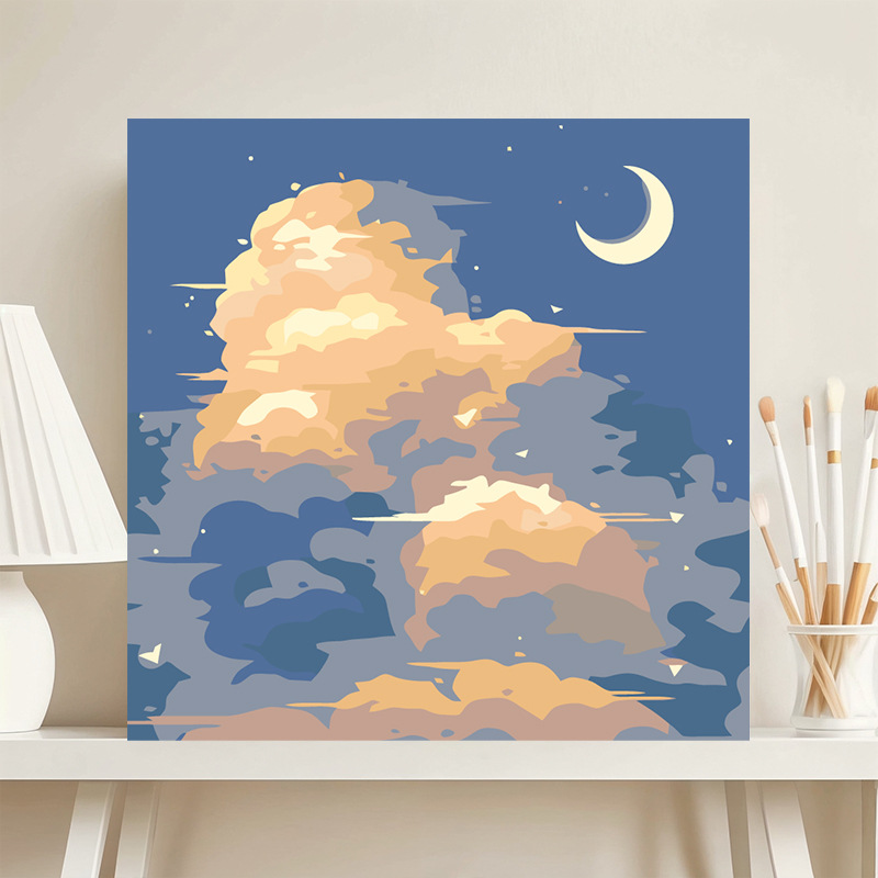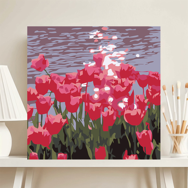跨境风景diy数字油画 高品质实木框丙烯手工涂色填色画支持定制