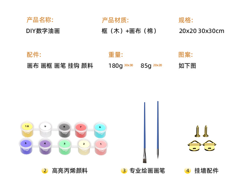 | plastic packaging (including inner frame + paint + brush)(塑封包装(含内框+颜料+画笔)) | USD $1.06 | 1686 amplitude available |