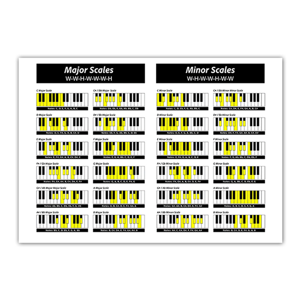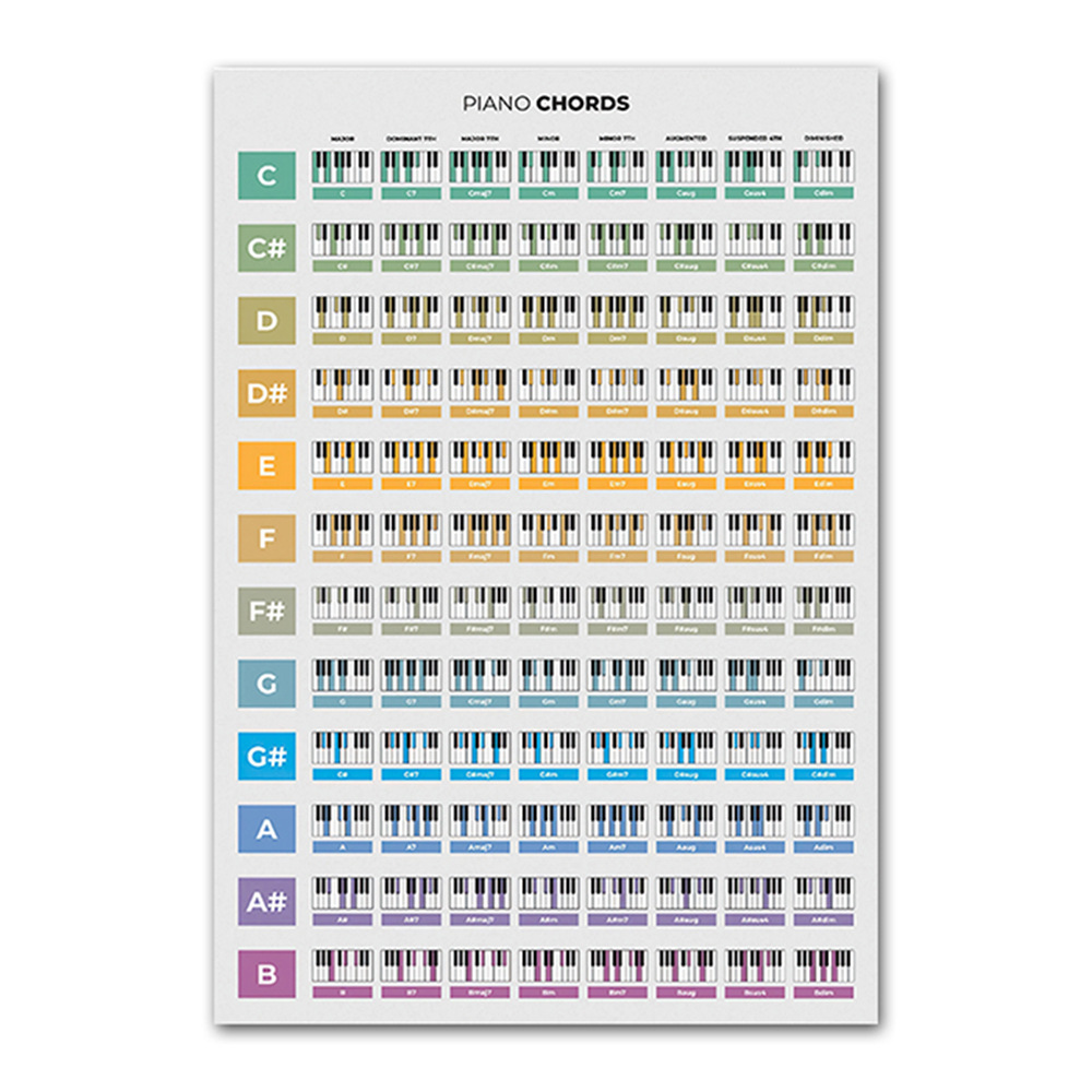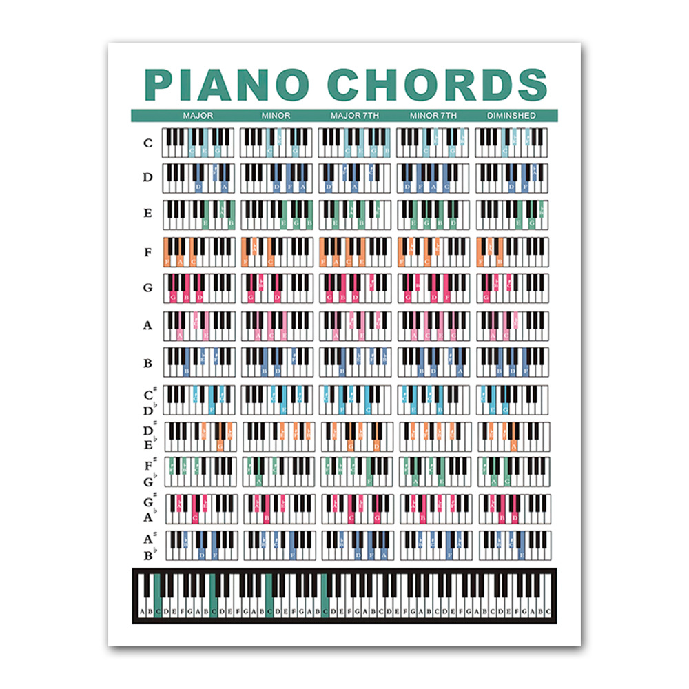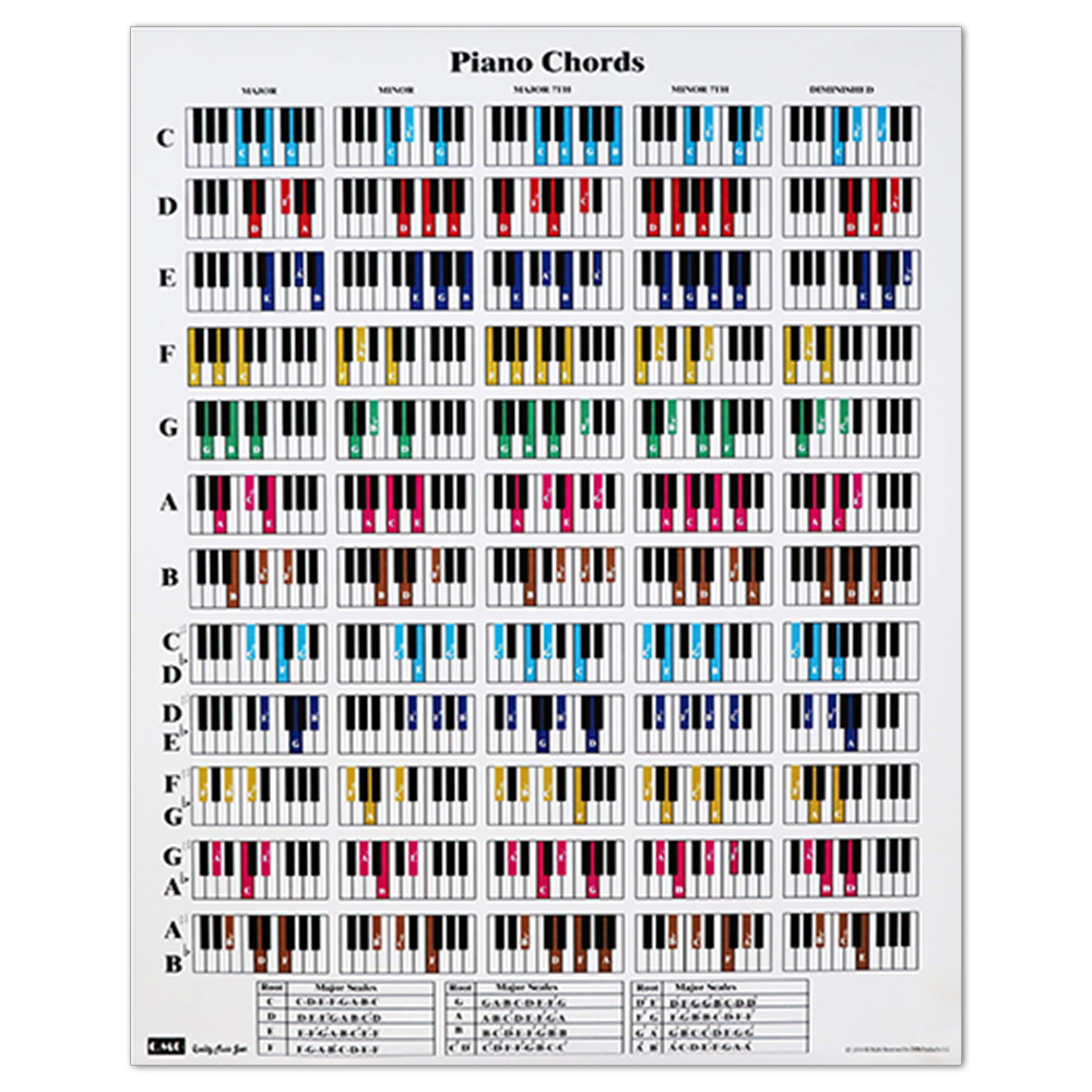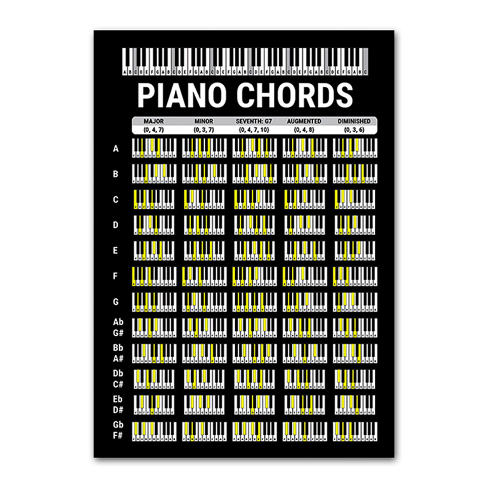 亚马逊钢琴和弦和音阶海报图表 吉他和弦英文教育海报教室挂画