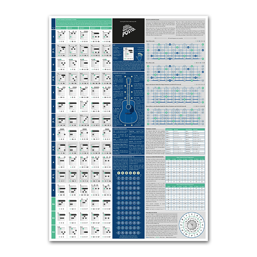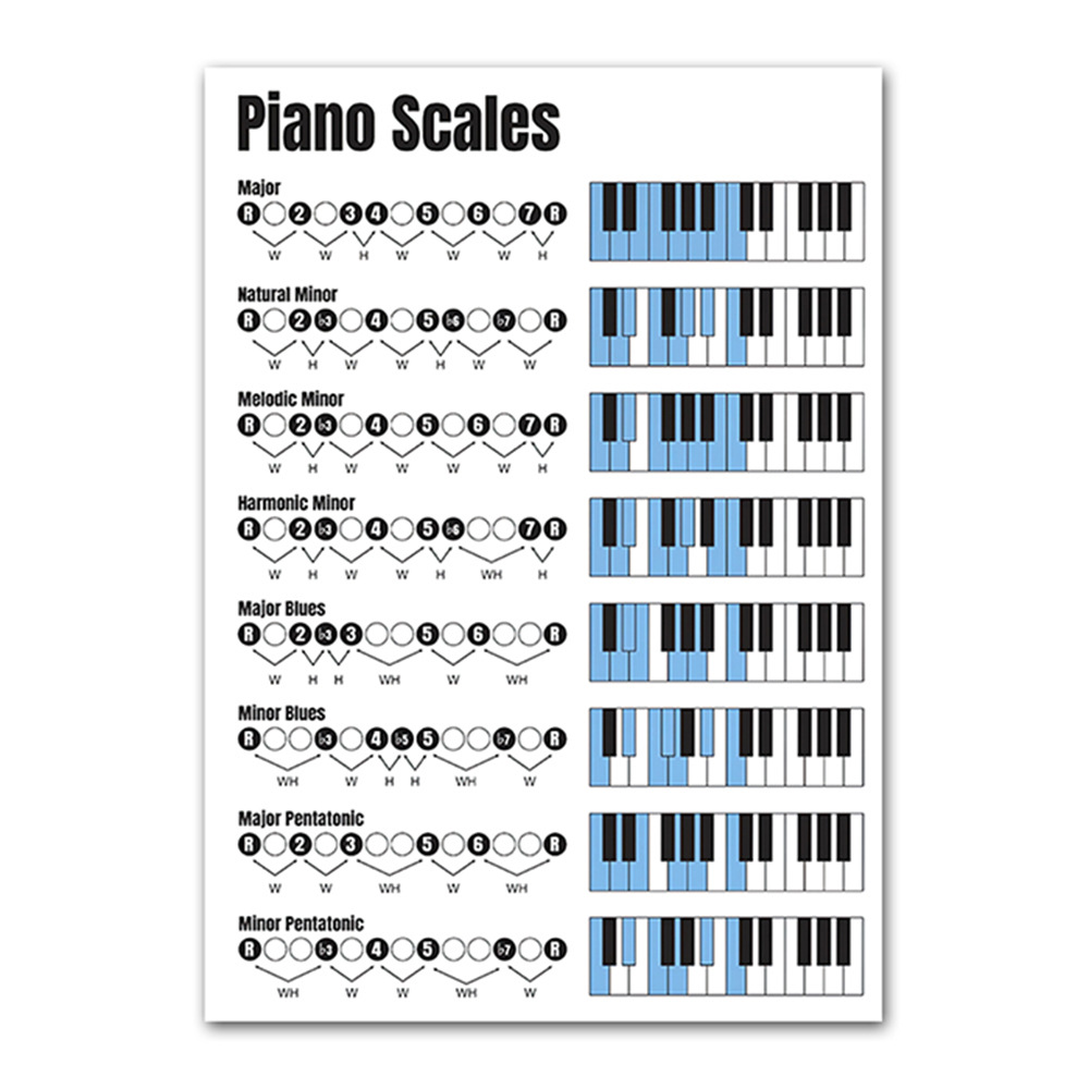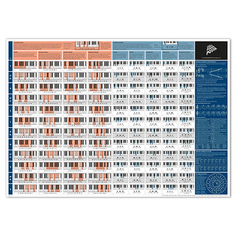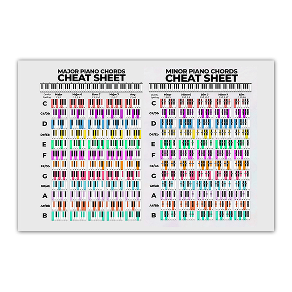 亚马逊钢琴和弦和音阶海报图表 吉他和弦英文教育海报教室挂画
