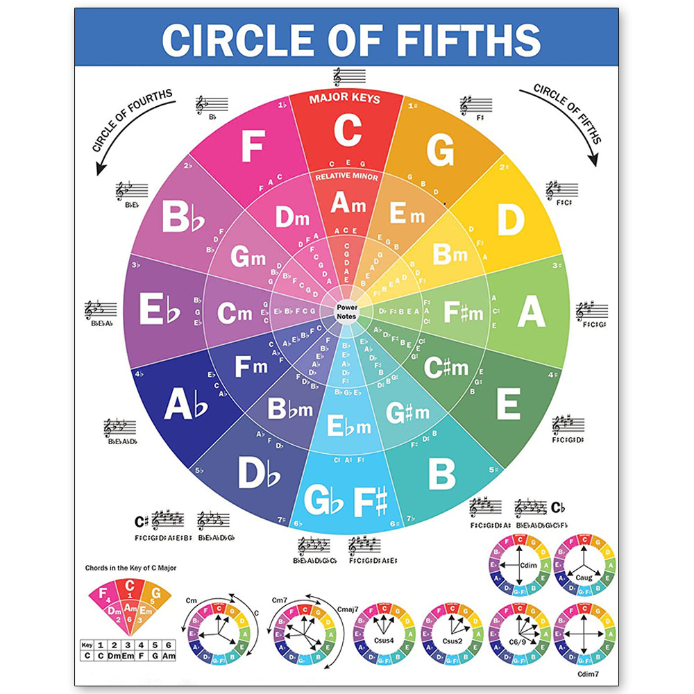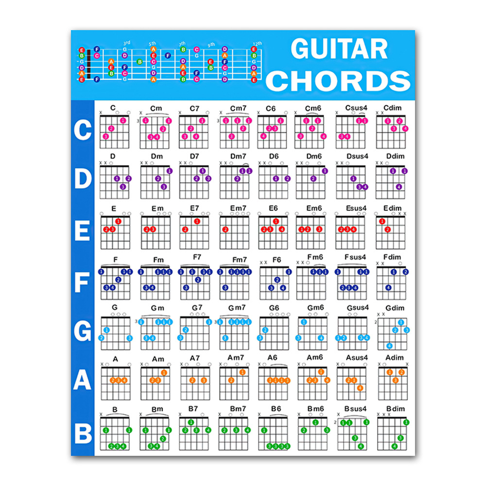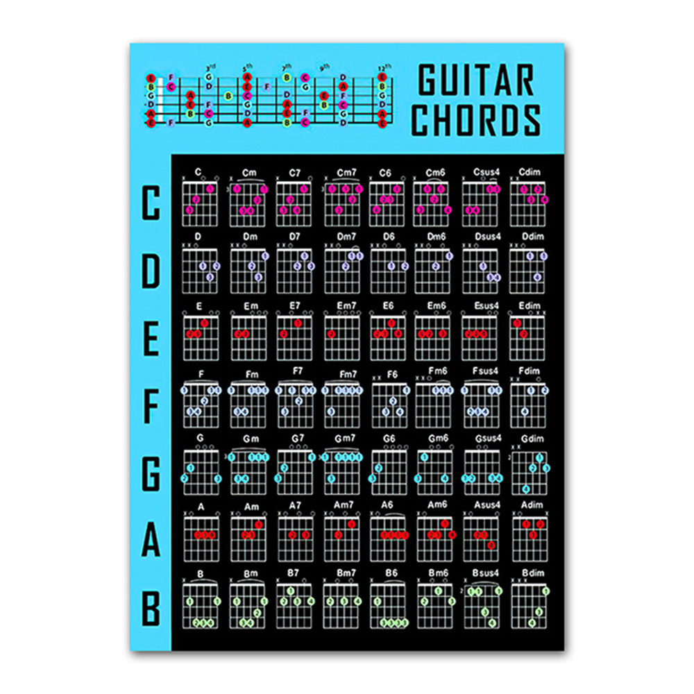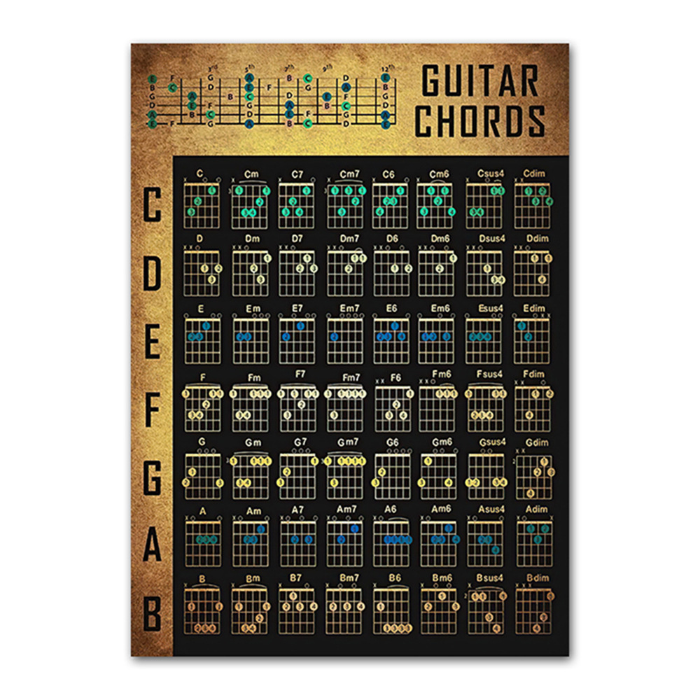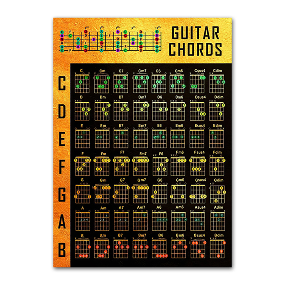 亚马逊钢琴和弦和音阶海报图表 吉他和弦英文教育海报教室挂画