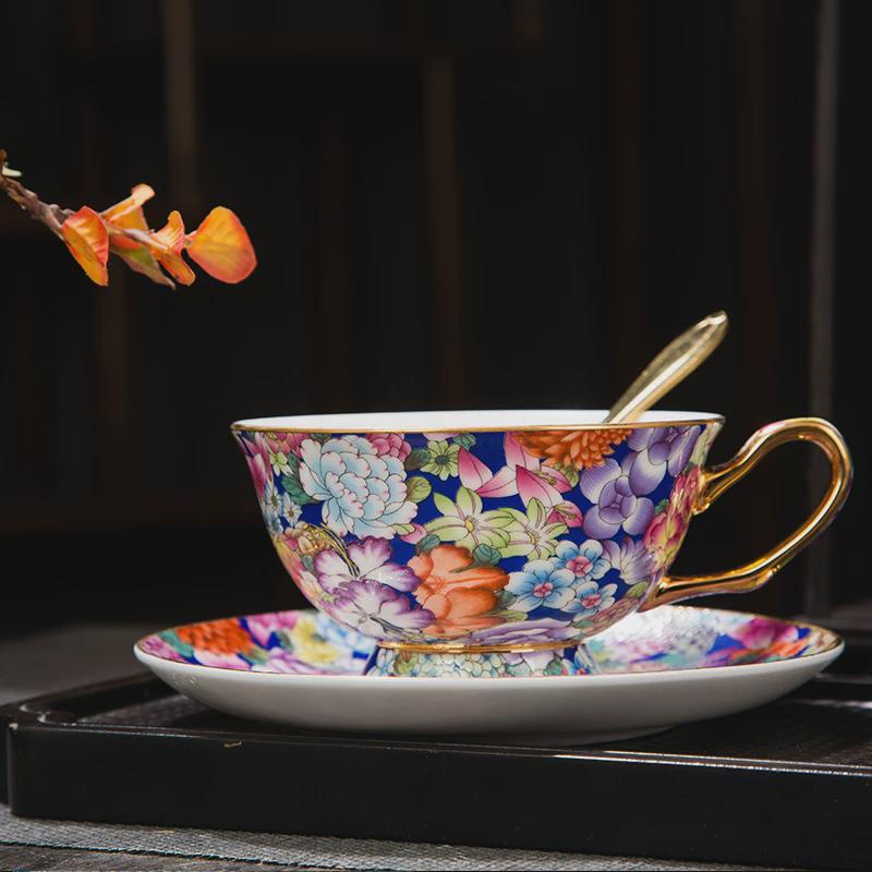 金边珐琅彩咖啡杯宫廷风牛奶午茶骨瓷中式礼品盒情侣杯景德镇陶瓷