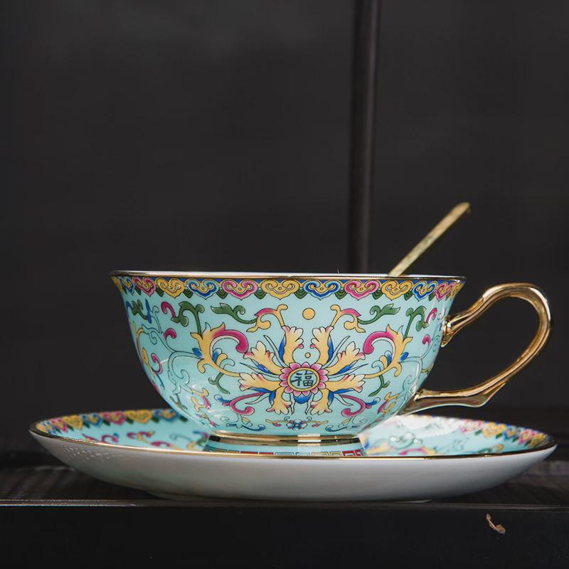 金边珐琅彩咖啡杯宫廷风牛奶午茶骨瓷中式礼品盒情侣杯景德镇陶瓷